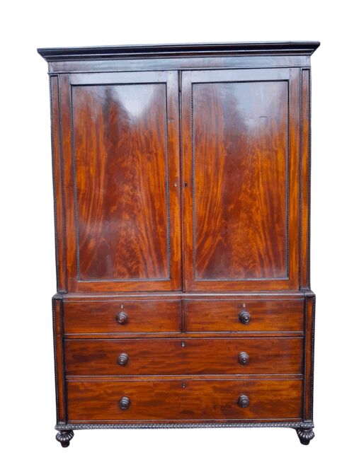 A Fine Late 19th Century George III Sheraton Period Plum Pudding Mahogany Secretaire bookcase