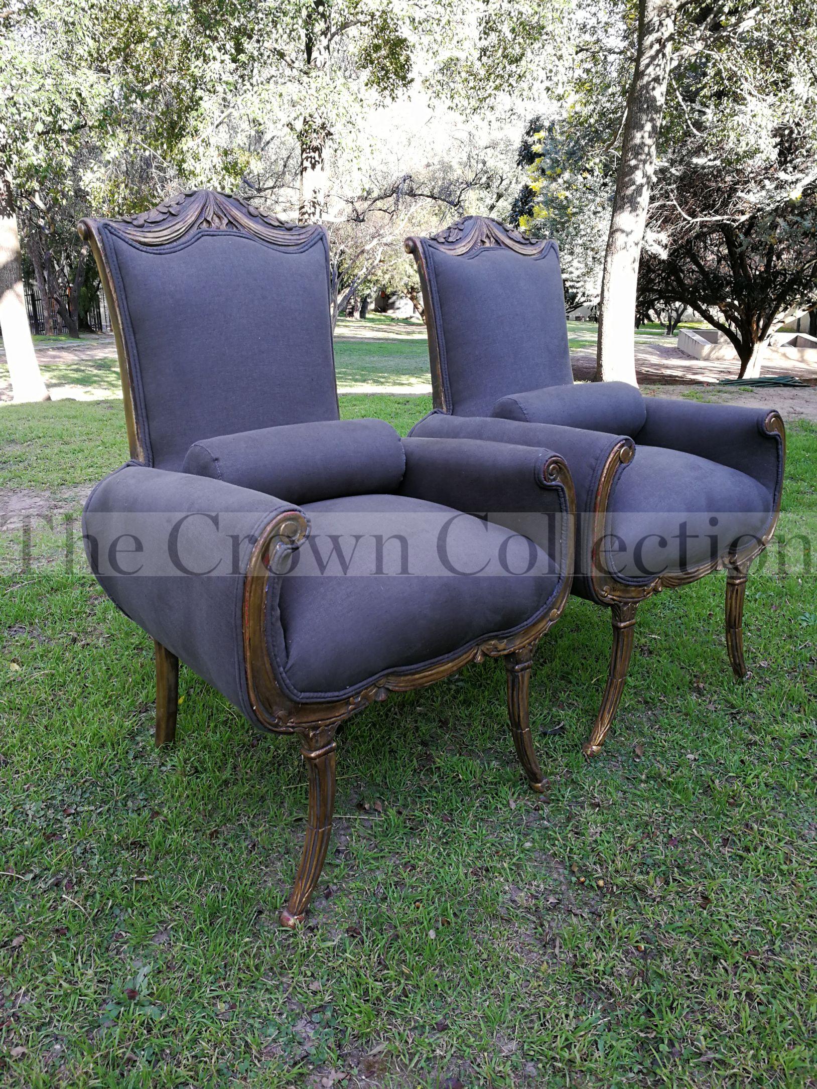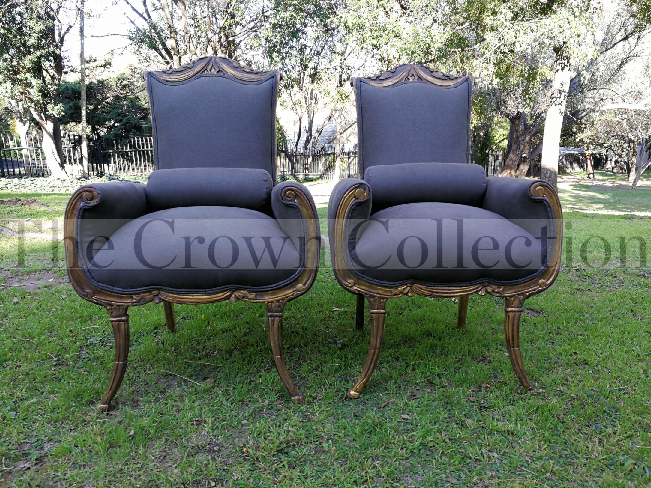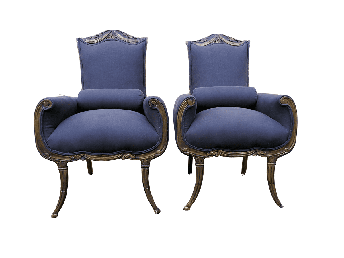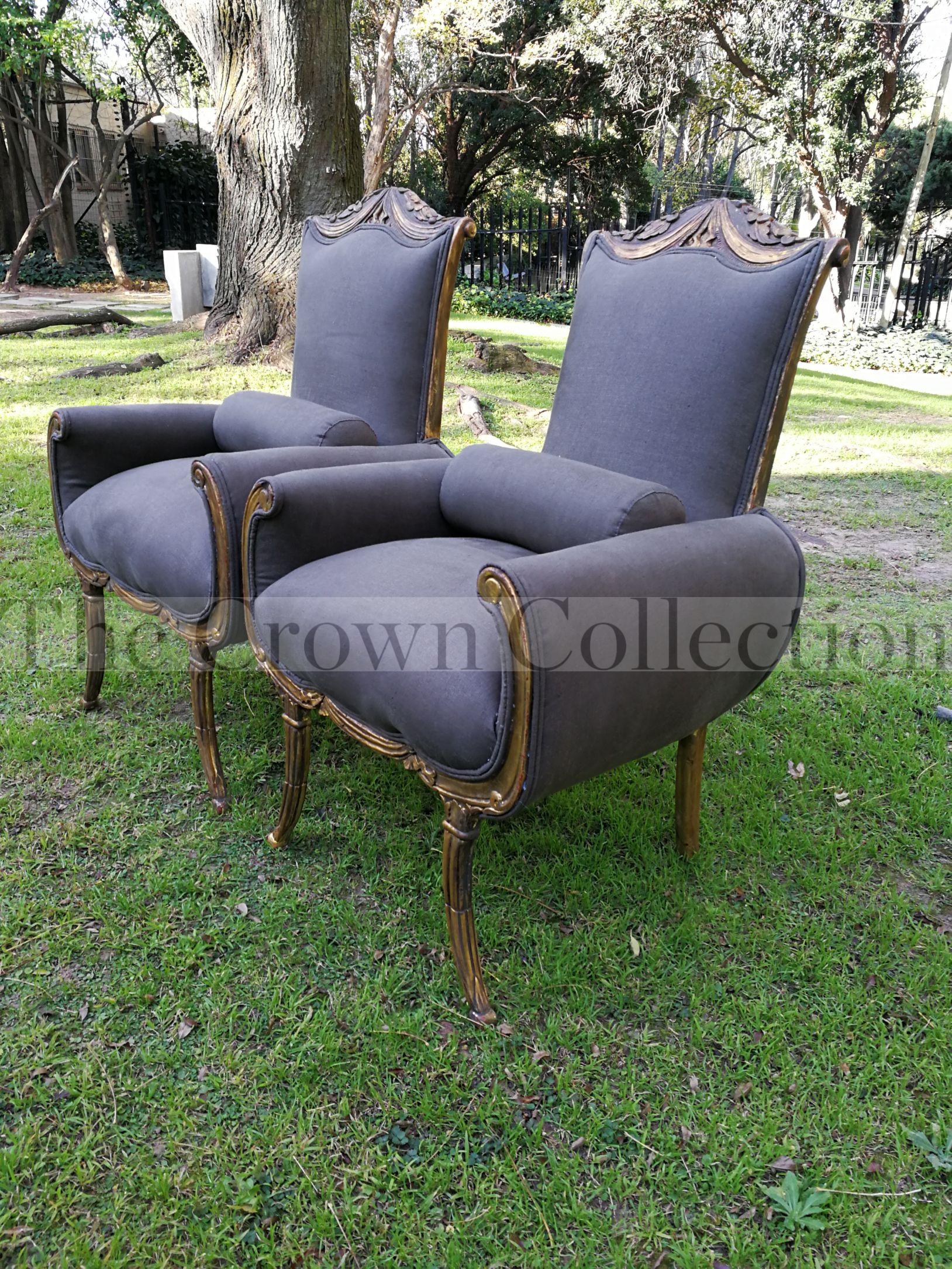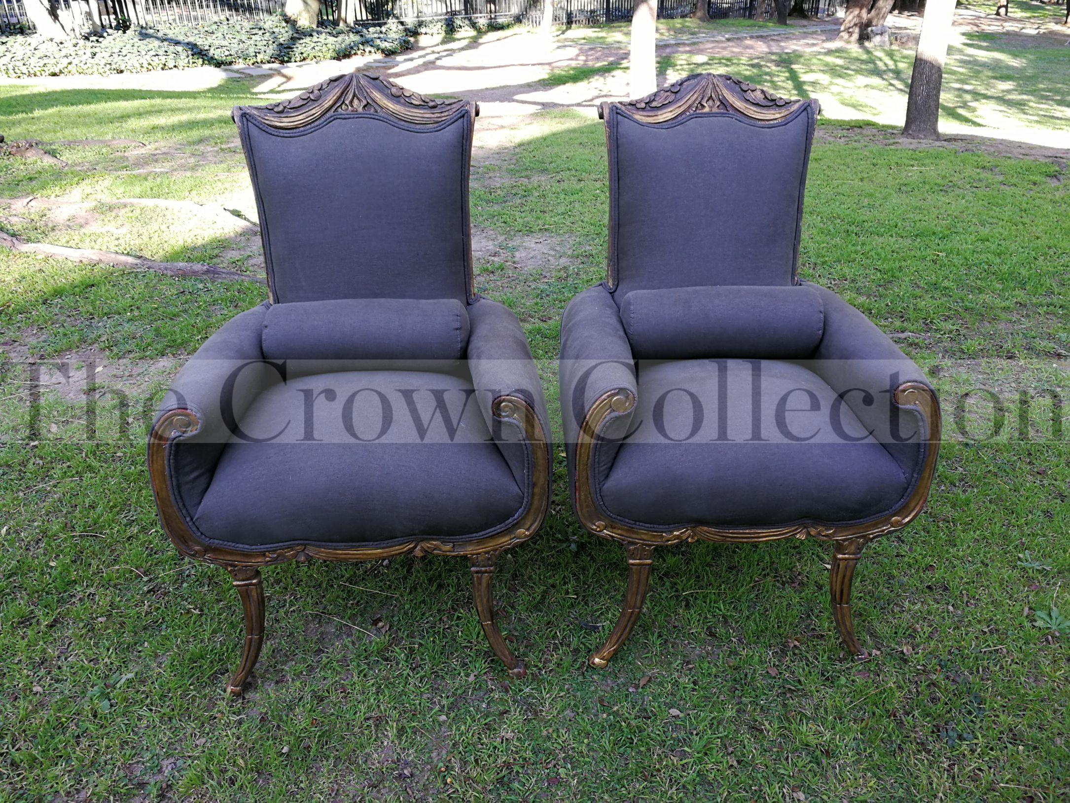 A First Half 20th Century Circa 1930 Pair of Large Size Hand-gilded Carved Mahogany Armchairs