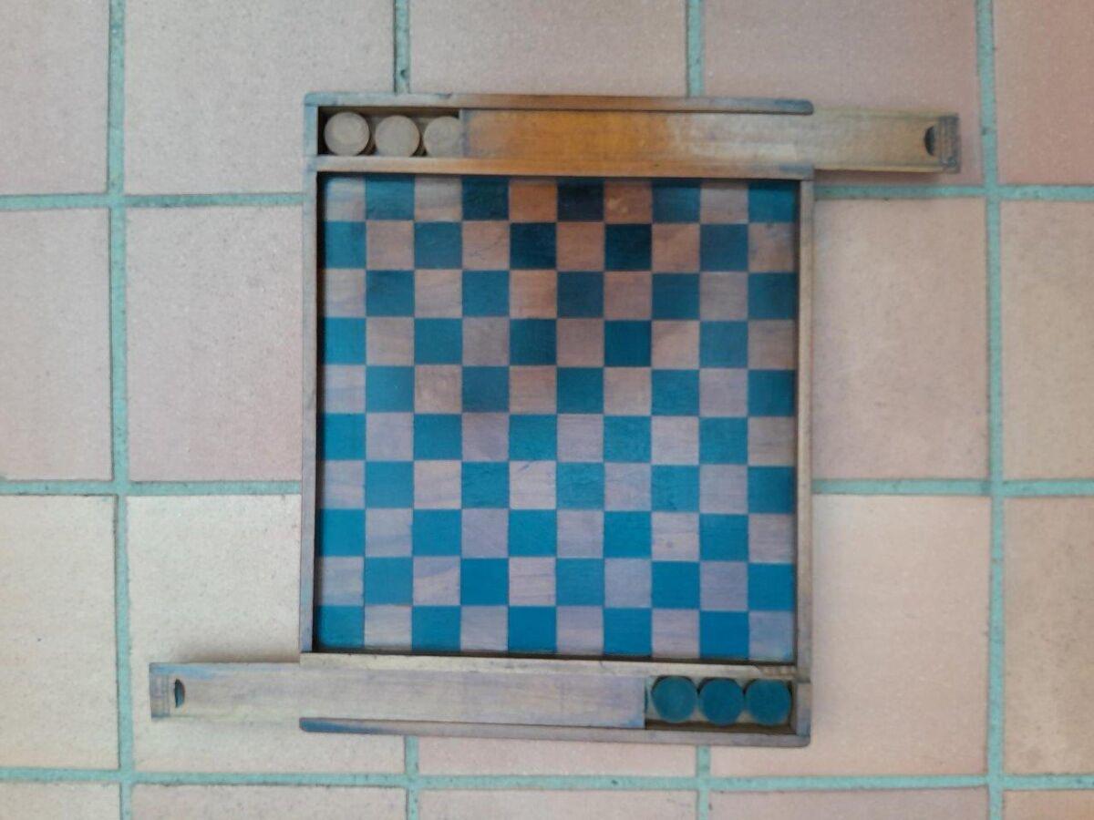 A French Circa Early 1900s Walnut And Ebony Complete Draughts Set