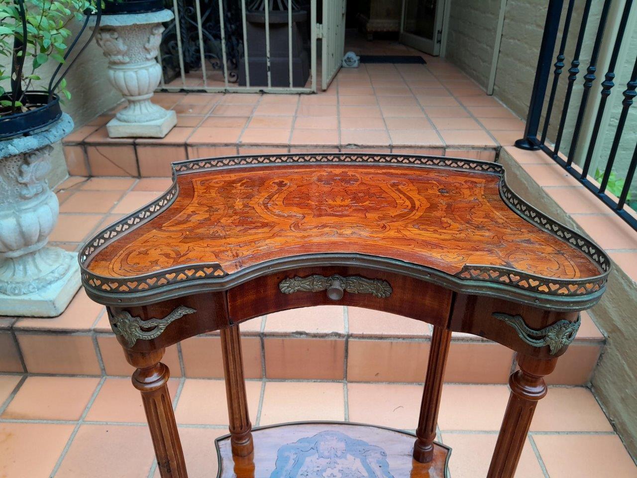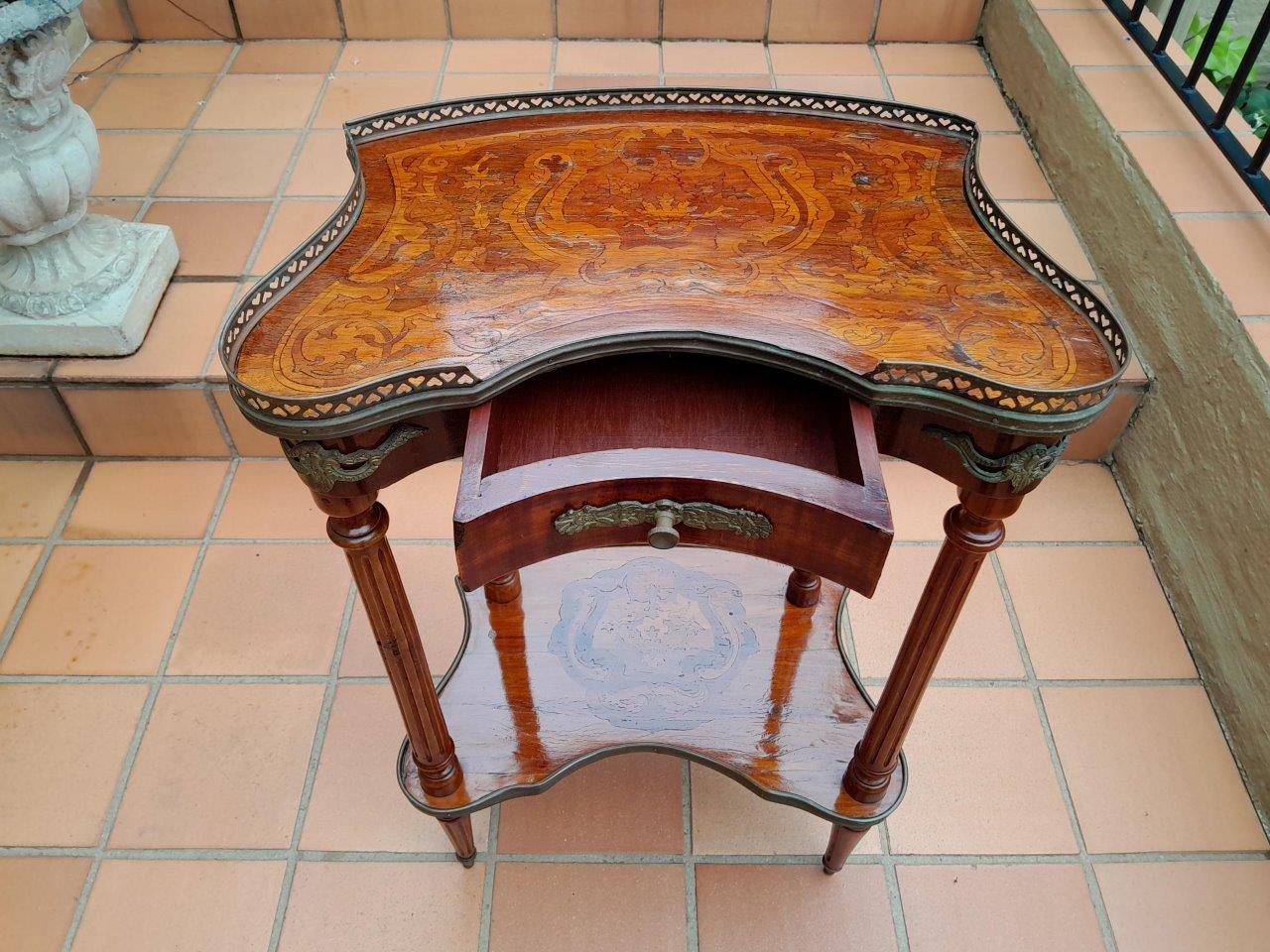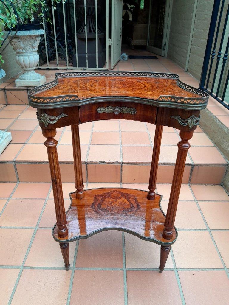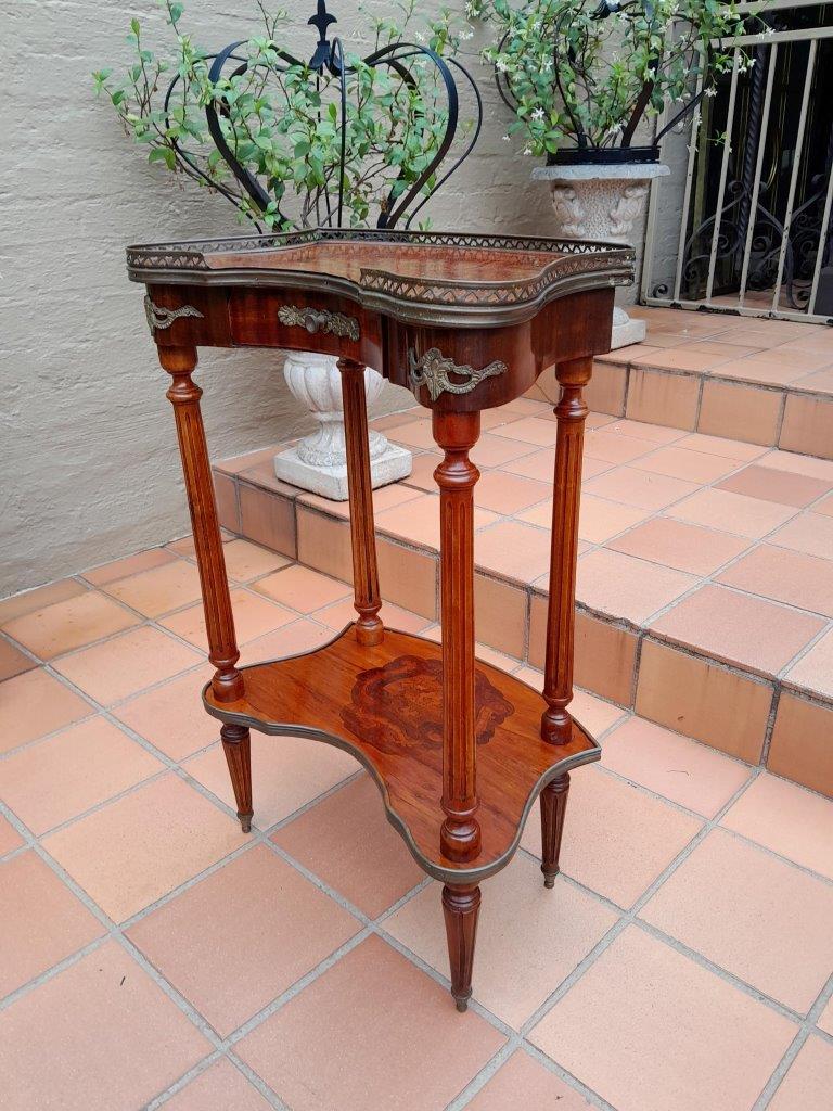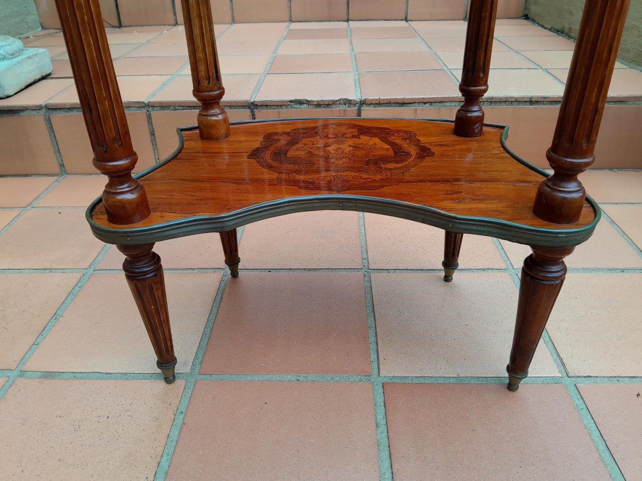 A French Louis XV Style Walnut And Inlaid Gilt Metal Etagere