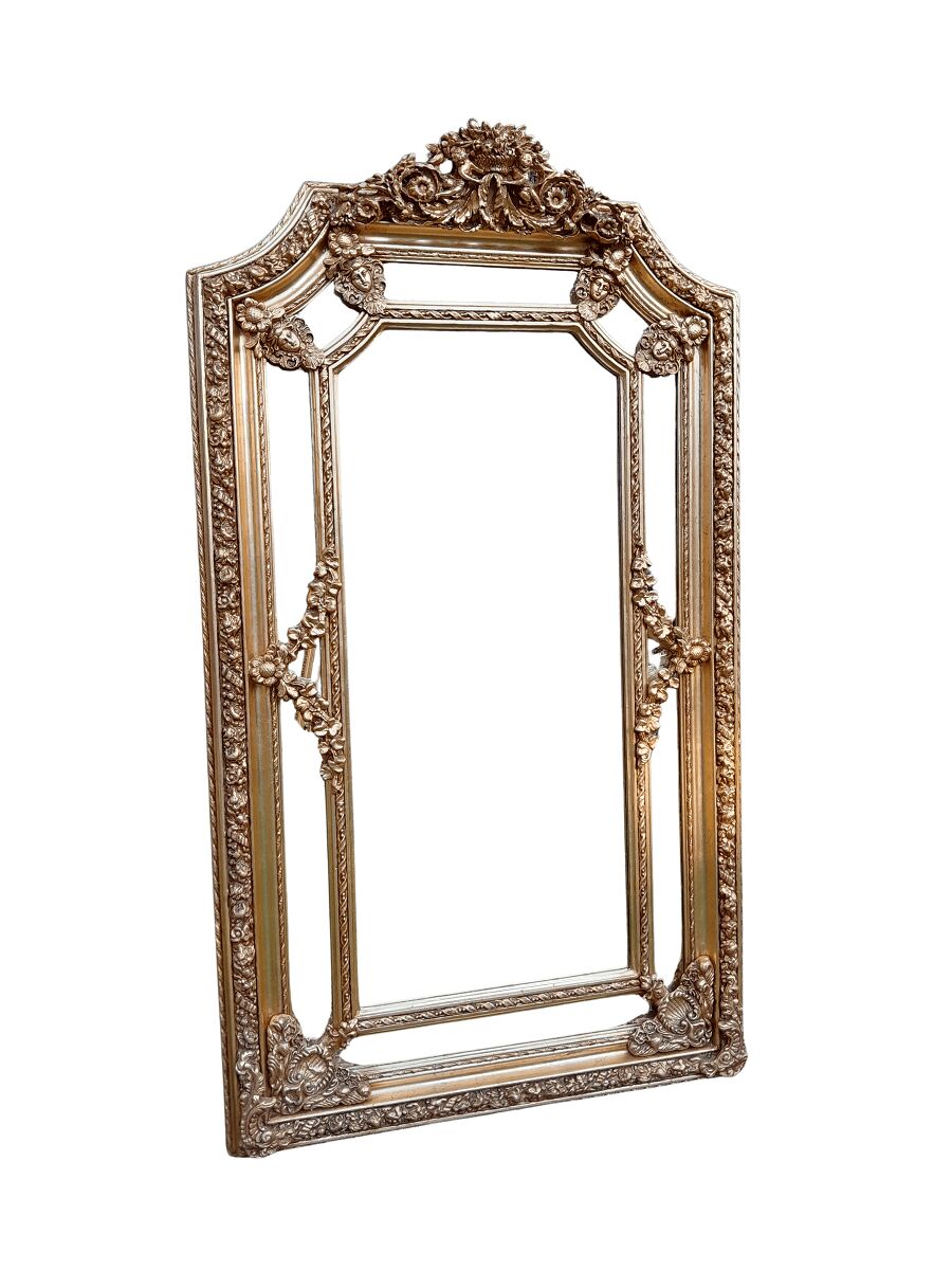 A French Rococo Style Ornately Carved & Gilded Bevelled Mirror