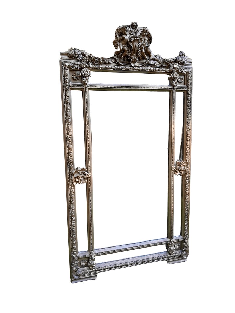 A French Rococo Style Ornately Carved & Gilded Large Bevelled Mirror