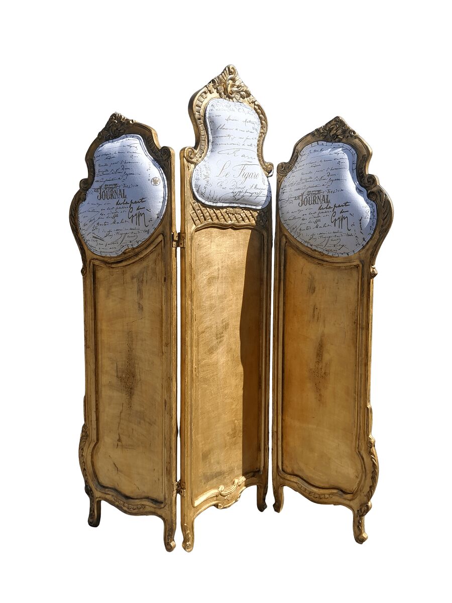A French Rococo Style Ornately Carved Gilt-Wood Screen Upholstered in a Custom Design Fabric for The Crown Collection