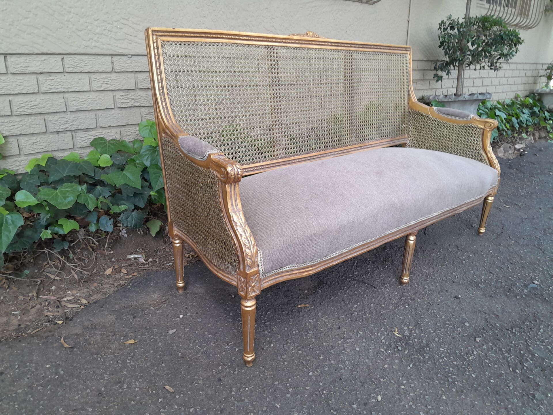A French Style Hand-Gilded Bench / Settee With Rattan Back