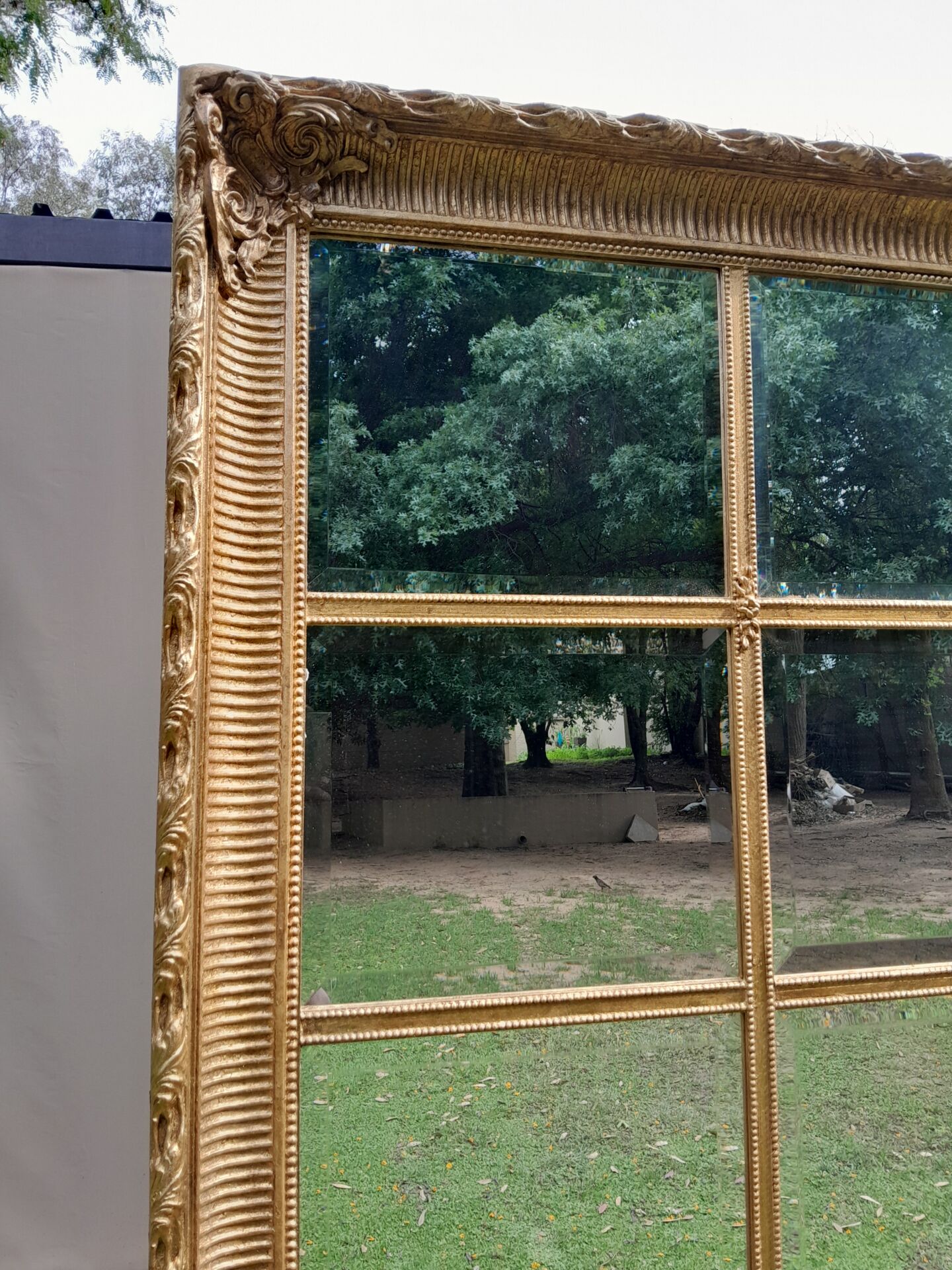 A French Style Heavily Carved and Gilded Framed Mirror with Bevelled Mirror Panes of Large Proportions
