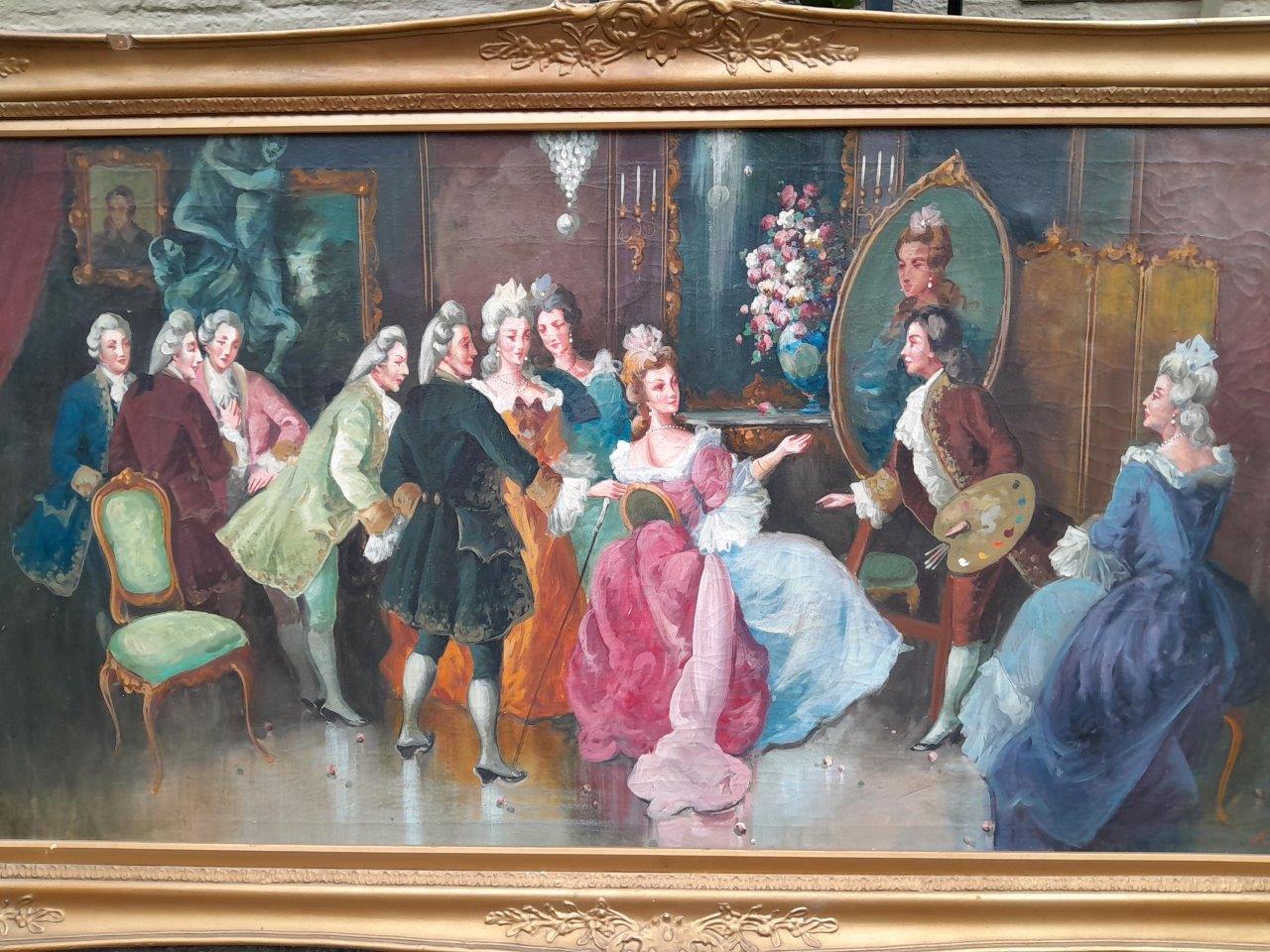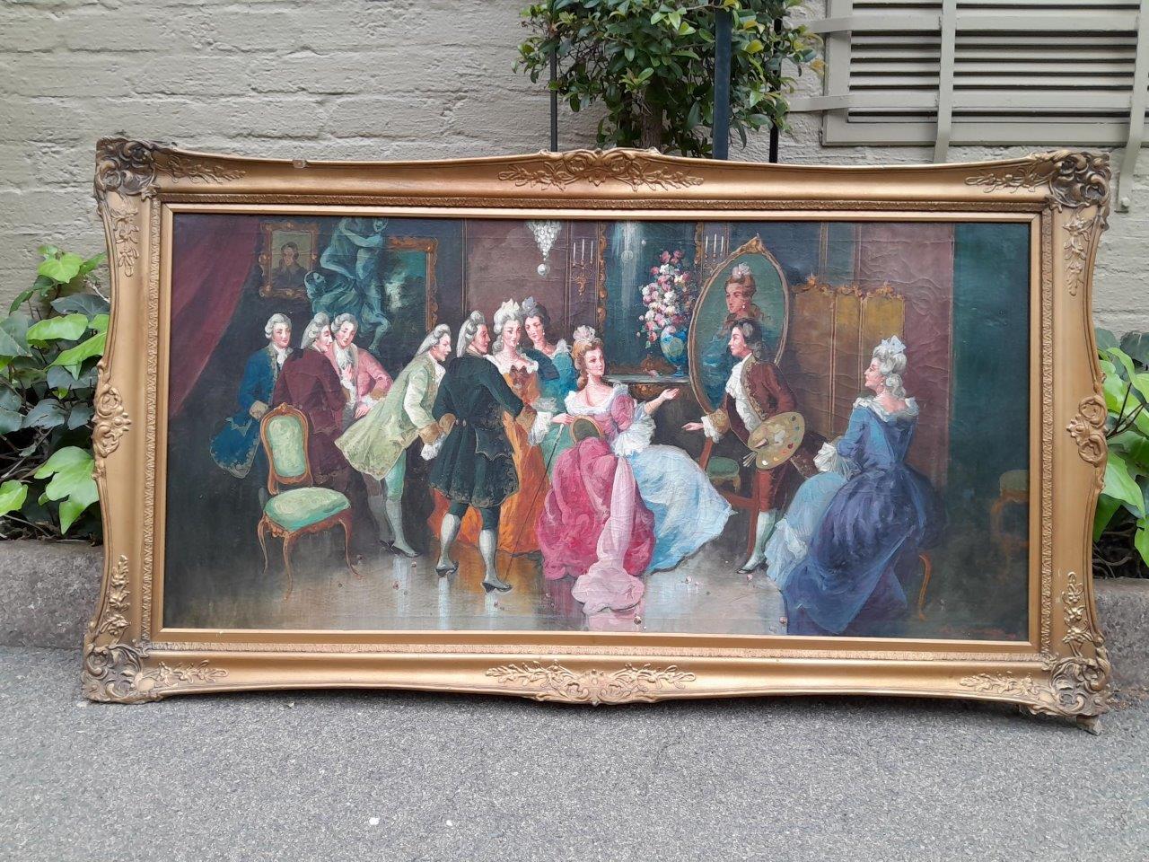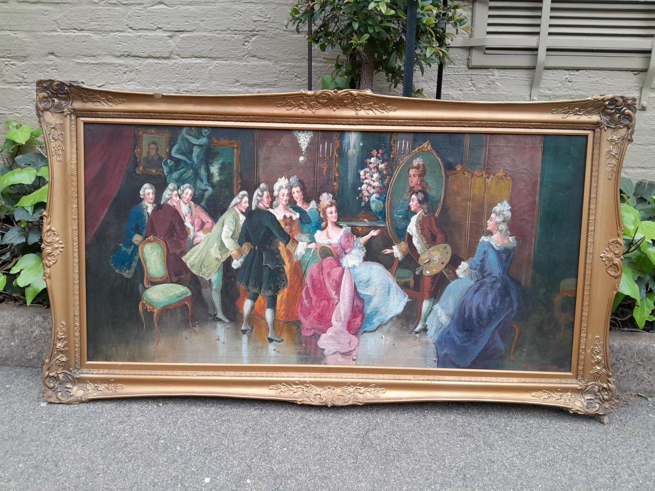 A French Style Signed Oil On Canvas Depicting A Ball Room Scene