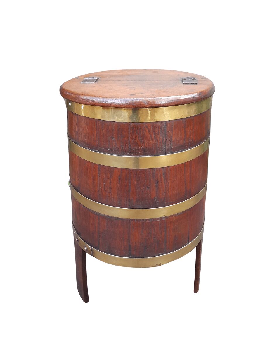 A Late 19th Century Cape Brassbound Oak Water Balie, Hinged Lid and Brass Bands on Legs