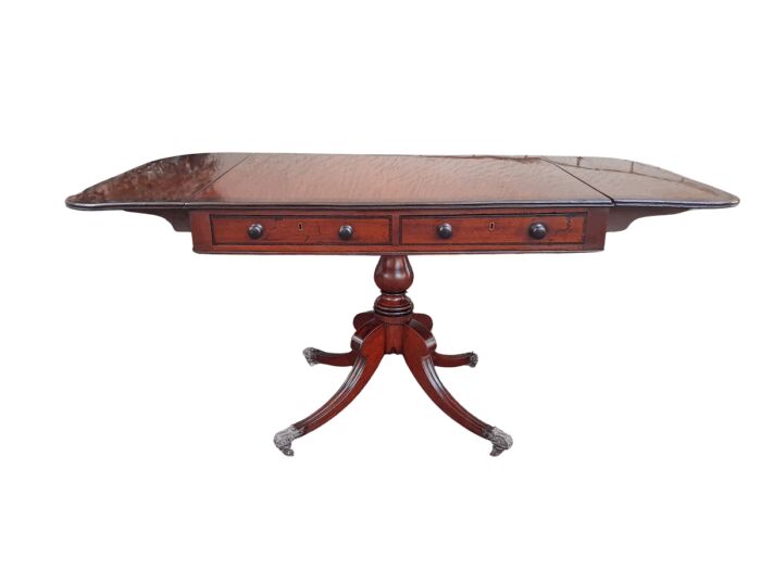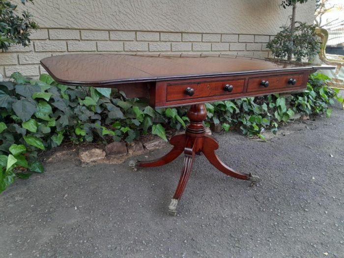 A Late 19th Century Circa 1880 Victorian Mahogany and Rosewood Pembroke Library Table with a Pair of Drawers On Castors