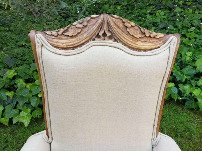 A Pair Of 1920s Bleached / Natural Carved Oak Armchairs upholstered