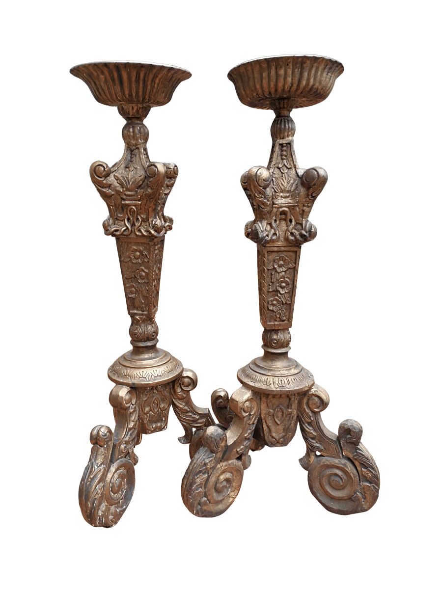 A Pair of 19th Century Circa 1890  Gilt Painted Wooden Carved Torchères