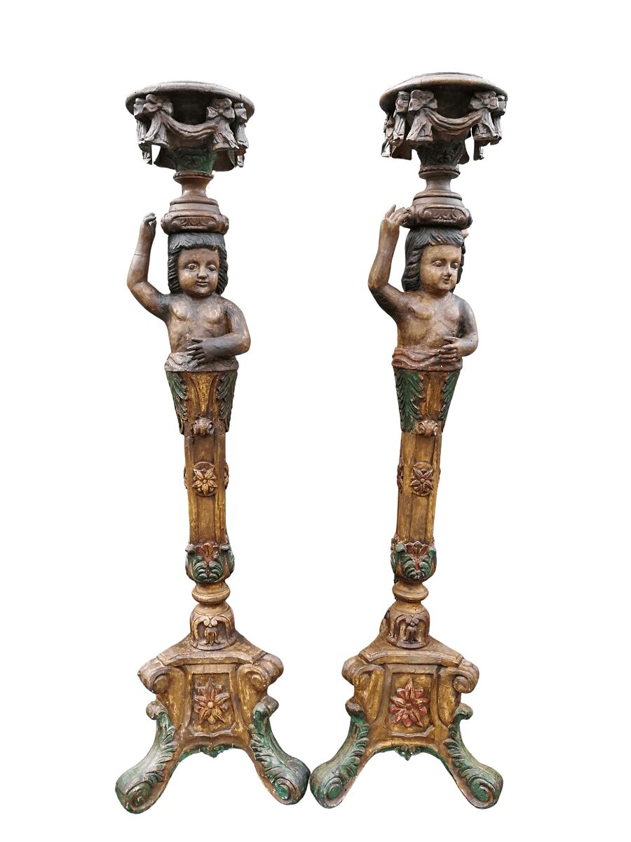 A Pair of 19th century gilt-wood and Paint Wooden Torchères