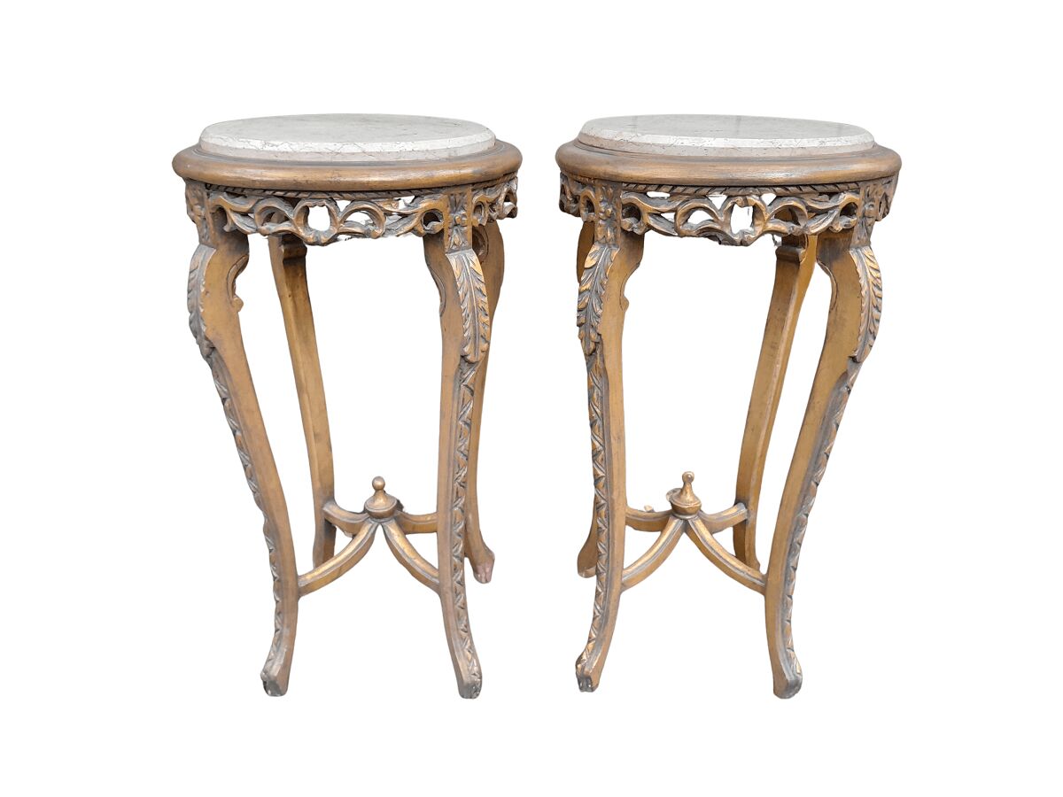 A Pair of 20th Century French Style Gilt Side Tables with Marble Tops