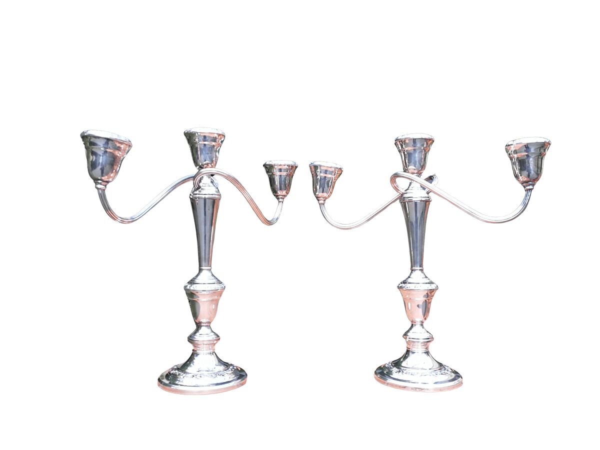 A Pair Of 20th Century Gorham Silver Plate Three Light Candelabras Candle Holders Convertible Circa 1940