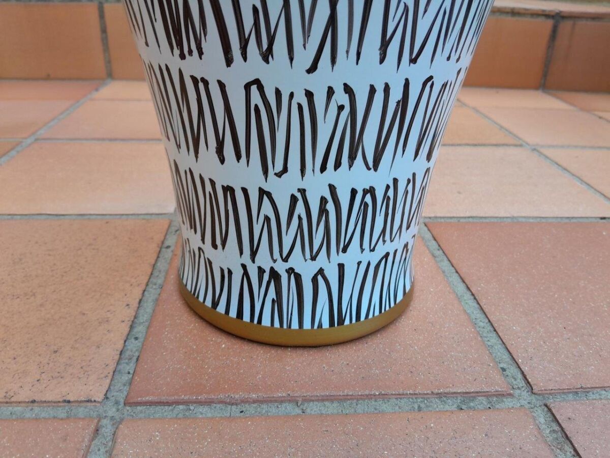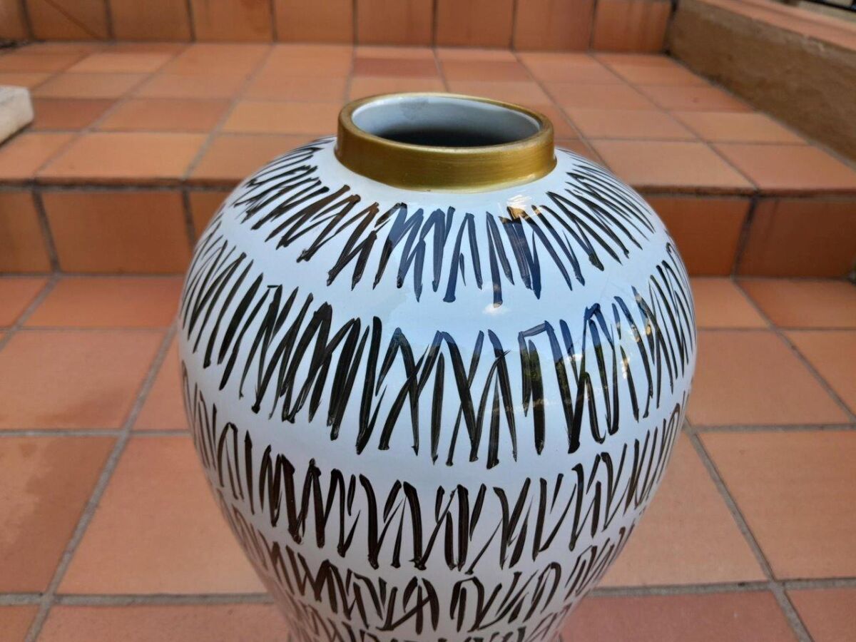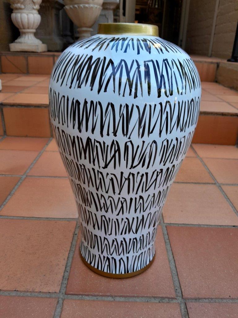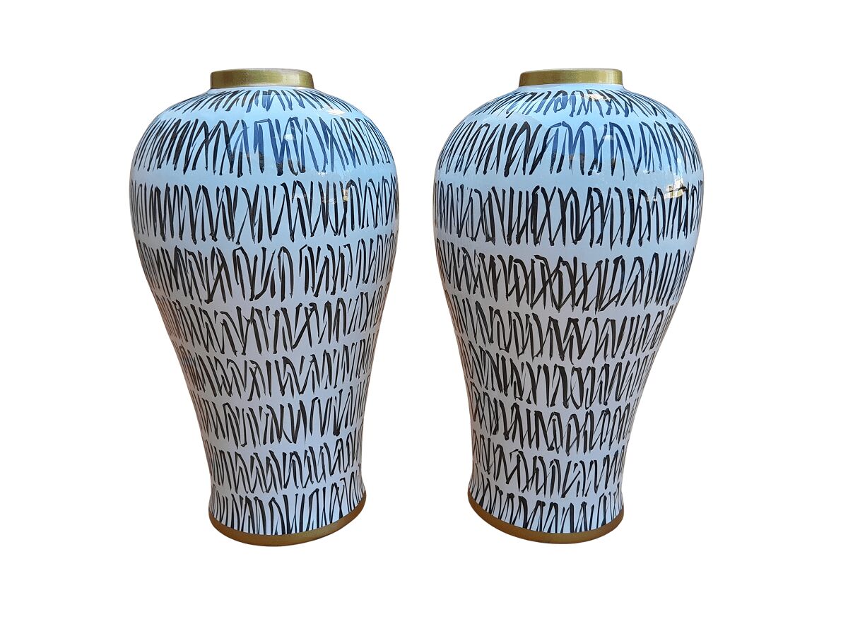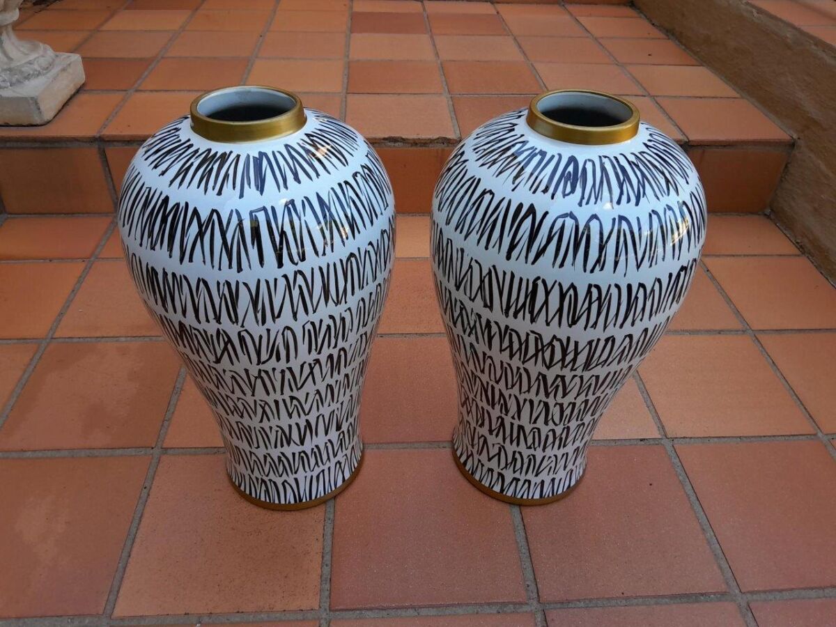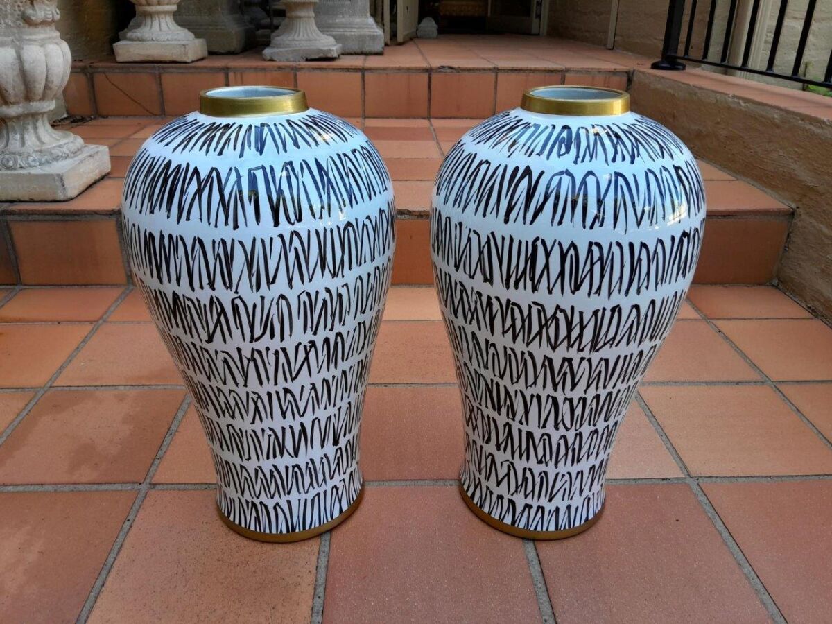 A Pair Of Black / Off White With Gold Rim Large Size Vases