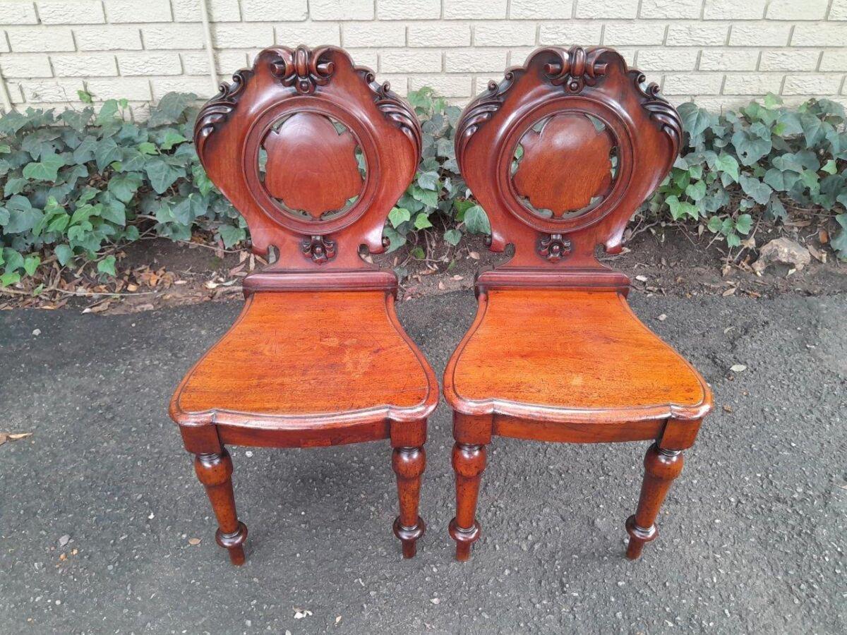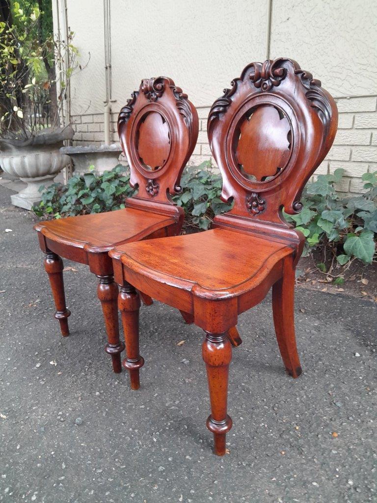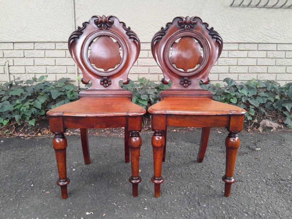 A Pair Of Carved Rosewoo Hall Chairs