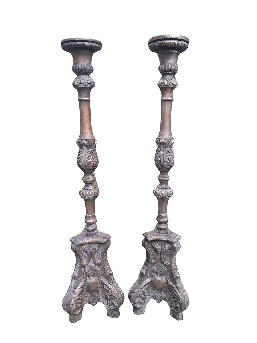 A Pair of French Style Carved and Gilded Floor or Table Candle Holders