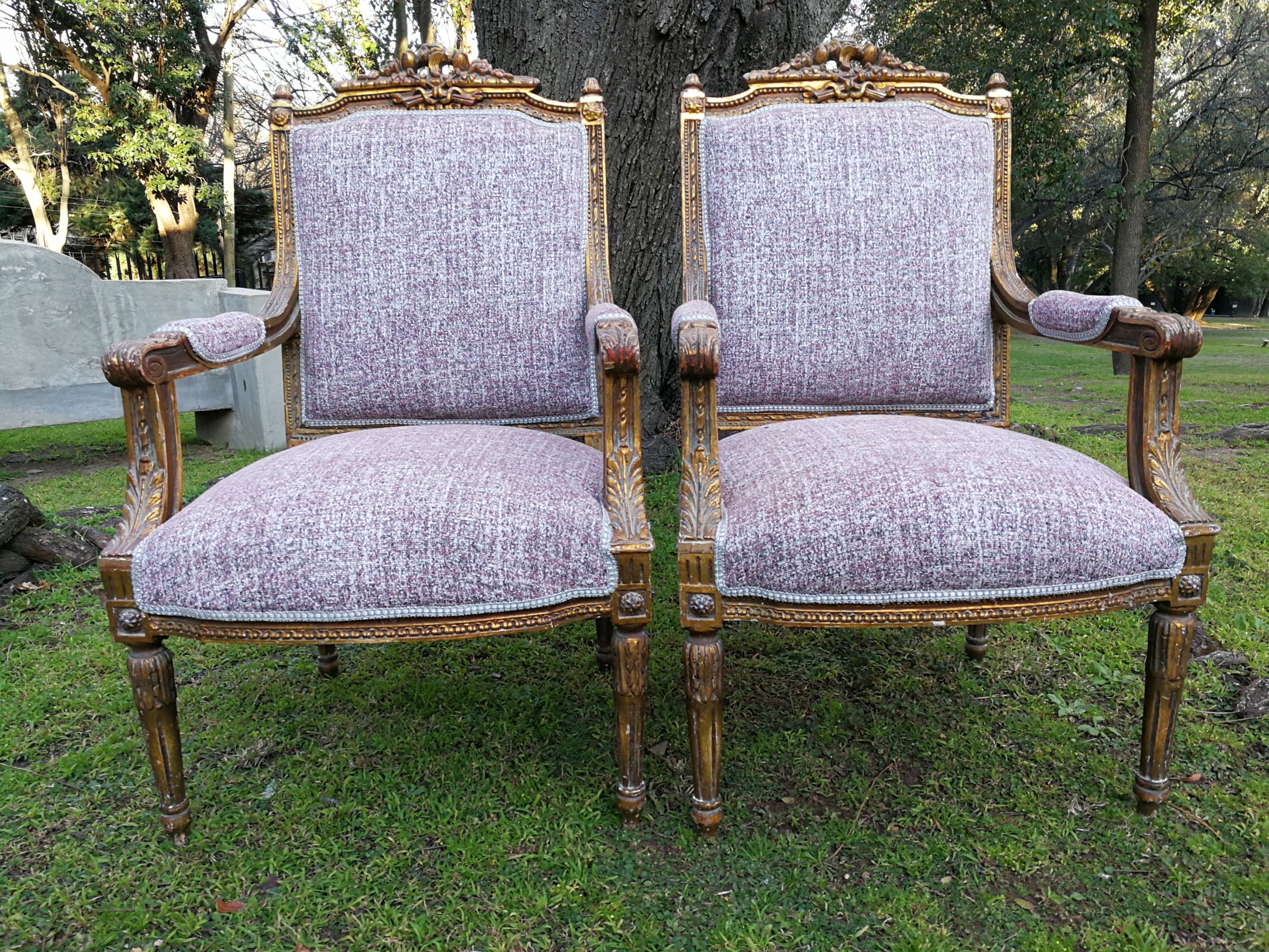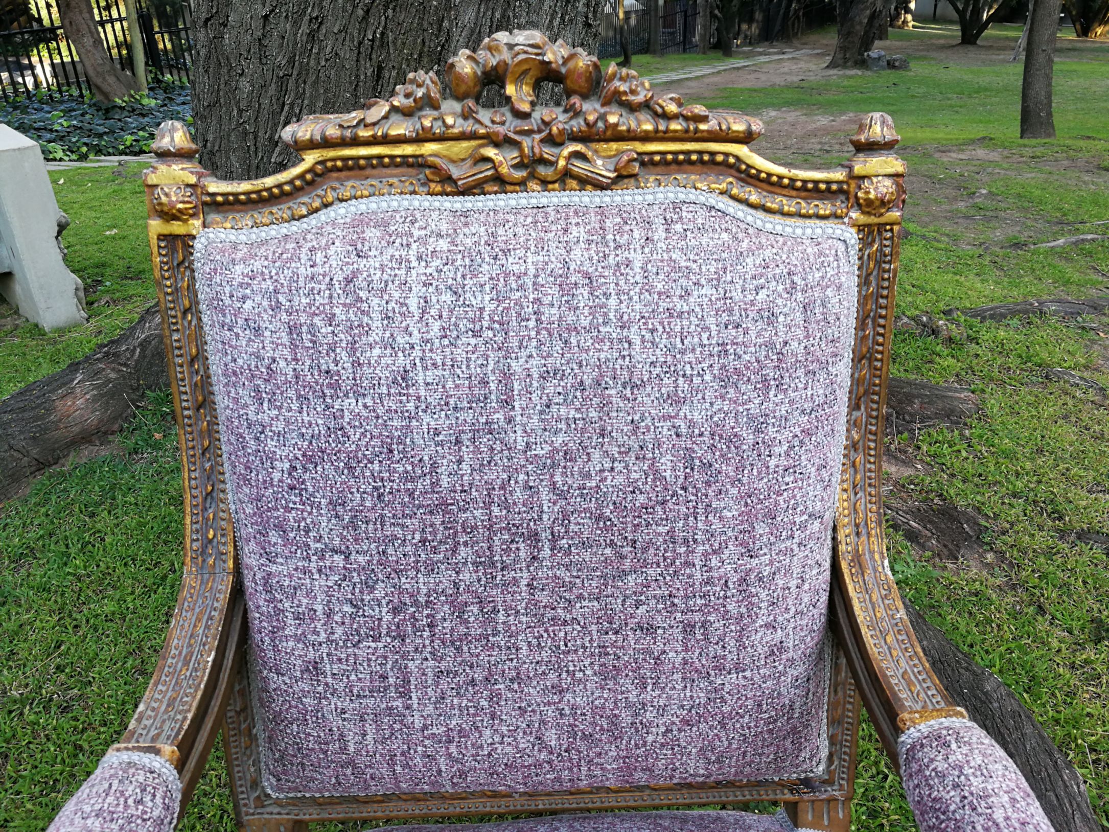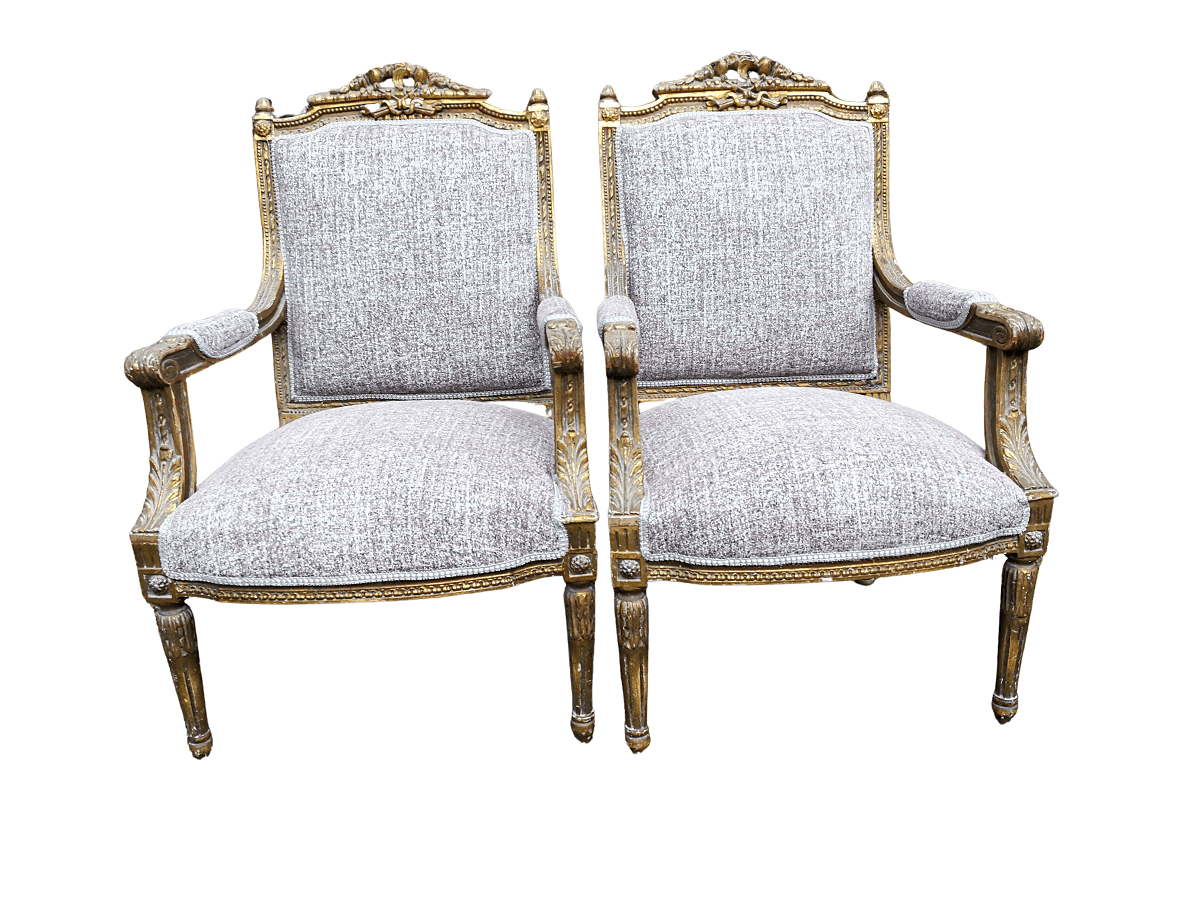 A Pair Of French Style Giltwood Ornate Arm Chairs On Fluted Legs