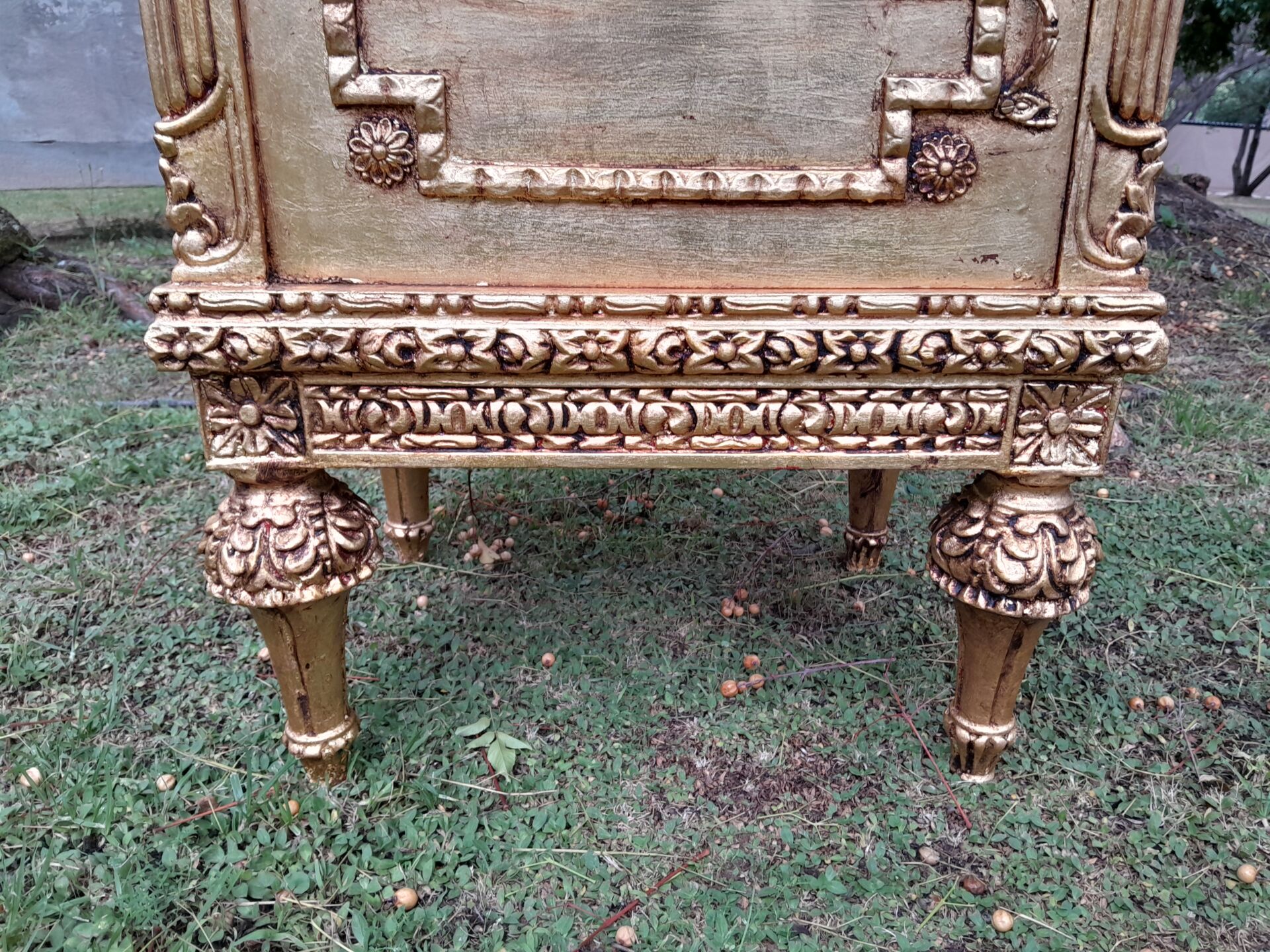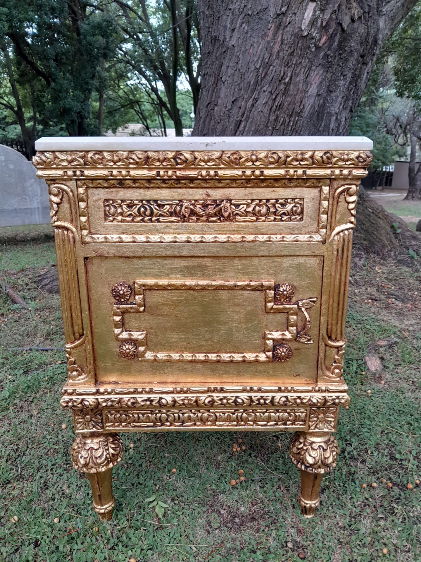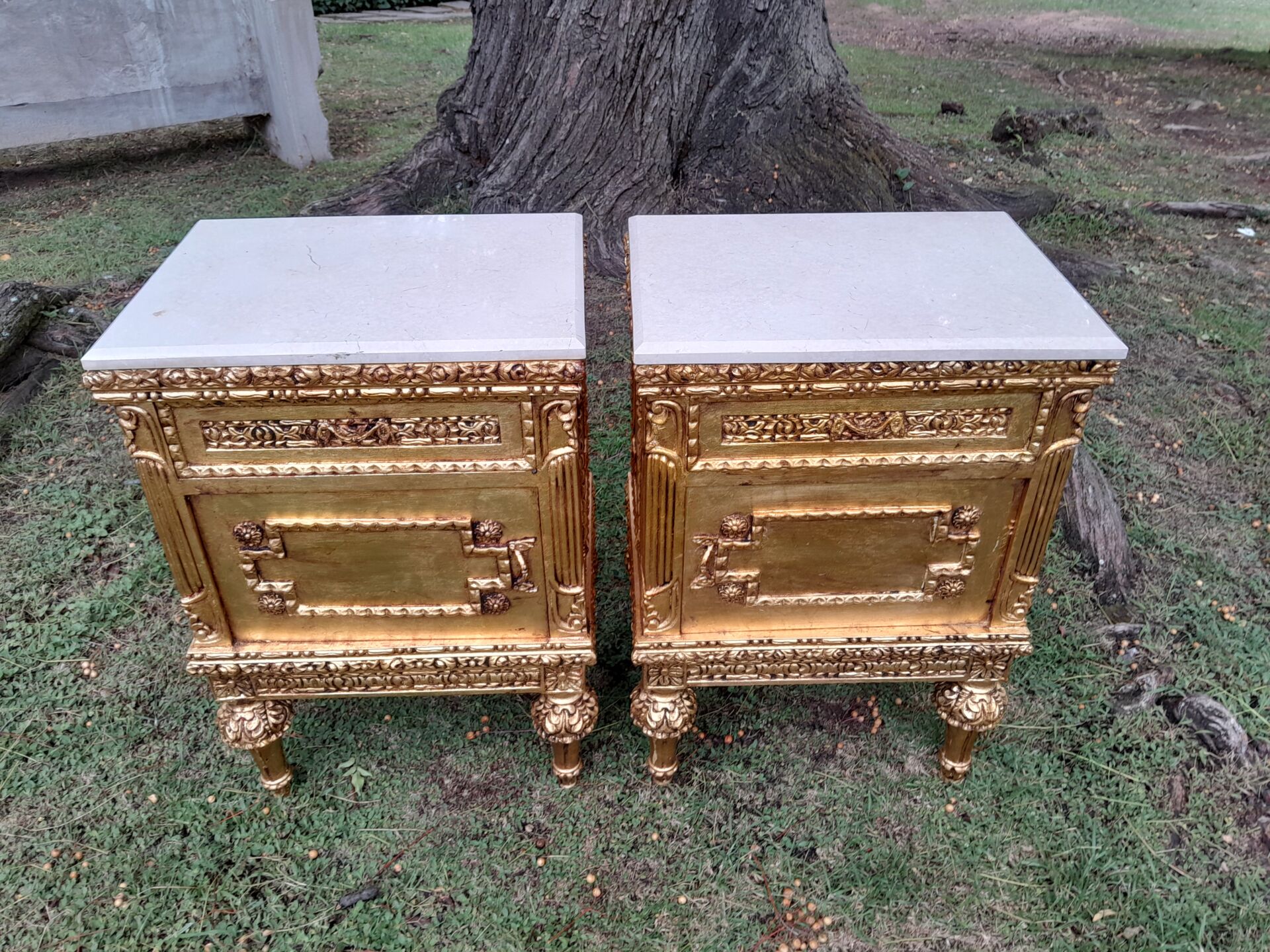A Pair of French Style Ornately Carved Giltwood Pedestals/Side Tables with Cream Marble Tops