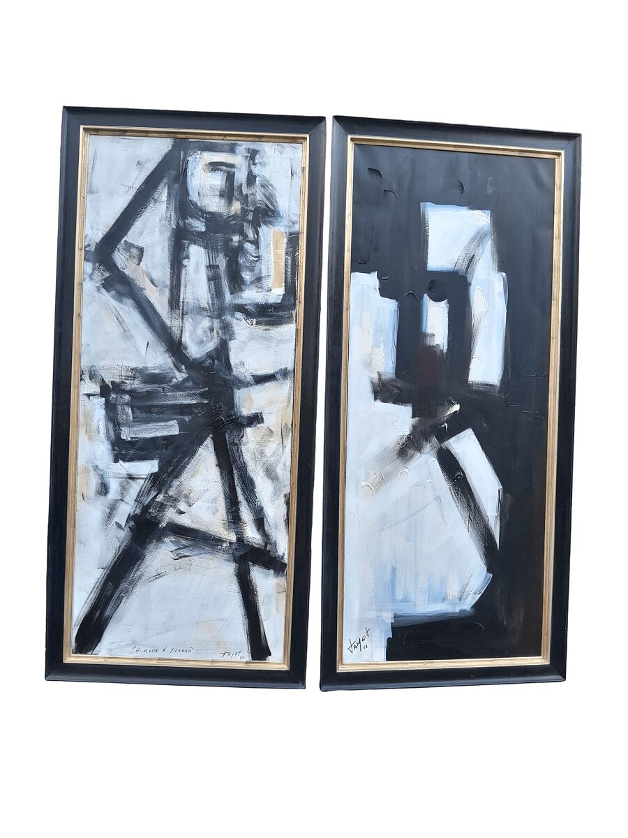 A Pair of Ornately Framed Abstracts Paintings “Homage à Picasso Framed in a Handmade Frame