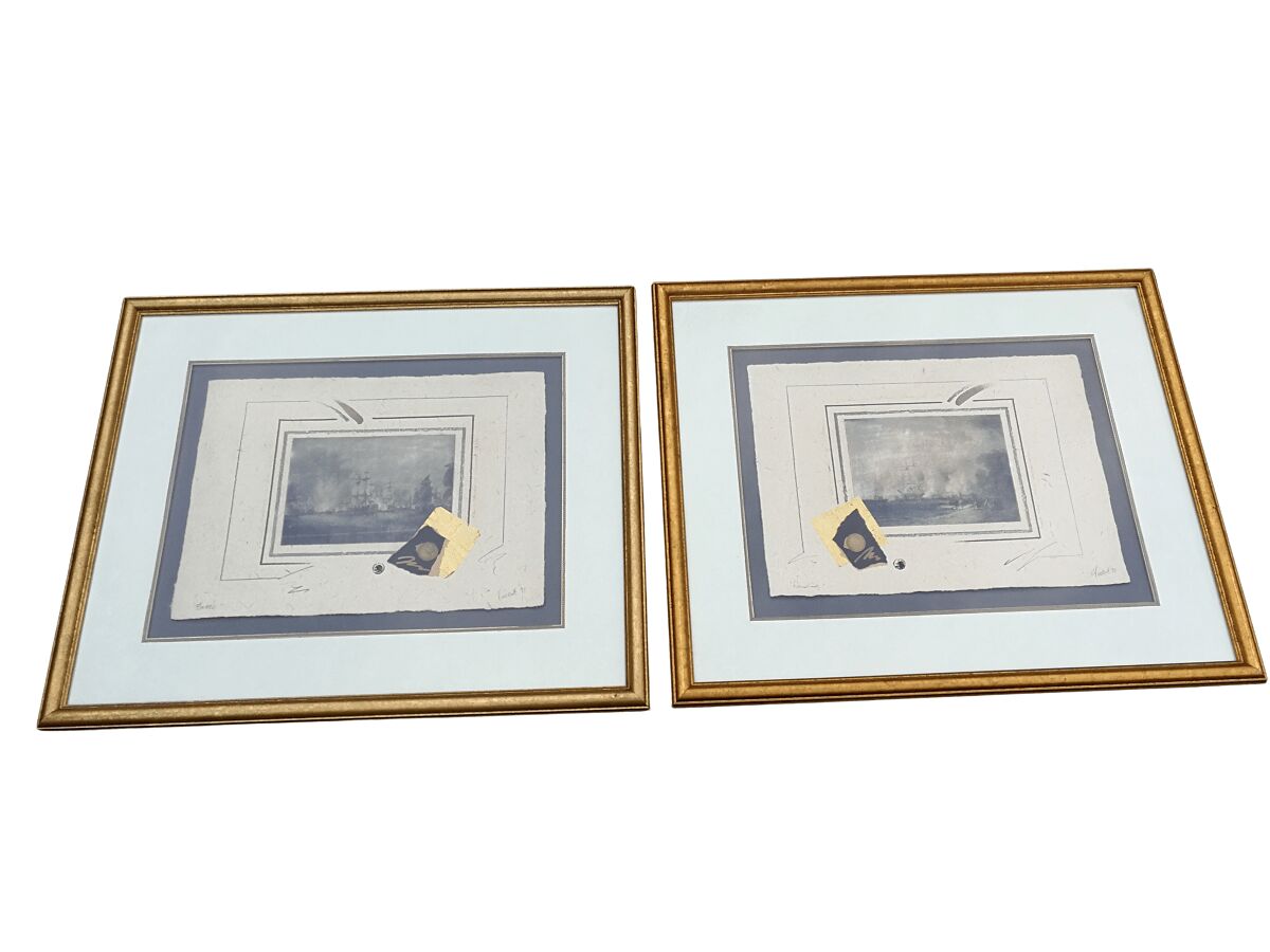 A Pair Of Signed Oil And Water Colour Prints Of Battle Ships