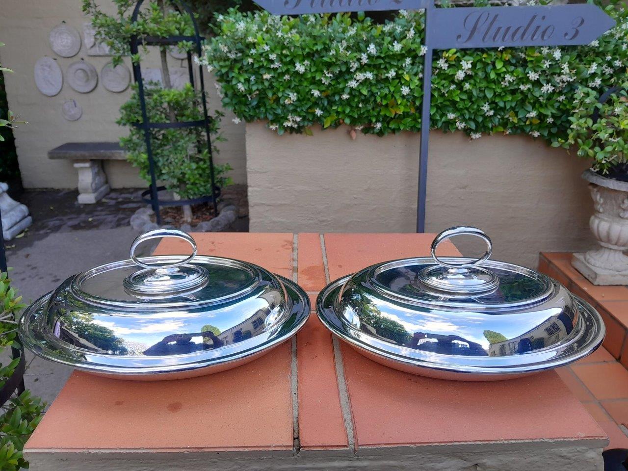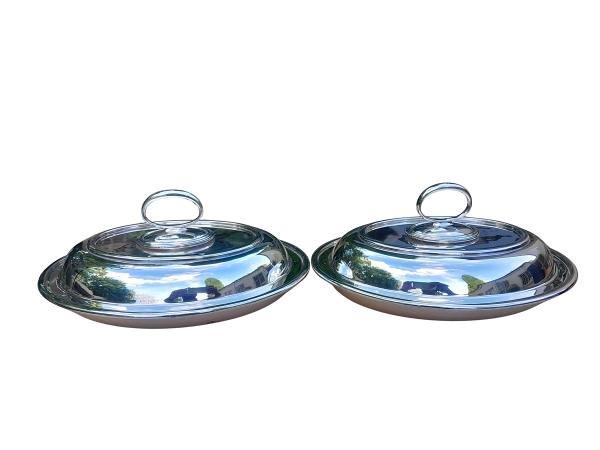 A Pair Of Silver-Plate Entrée Dishes With Lids