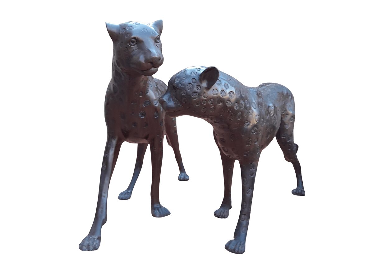 A Rare Pair Of Bronze Cheetah In Figurines Pair In A Patinated Finish ND