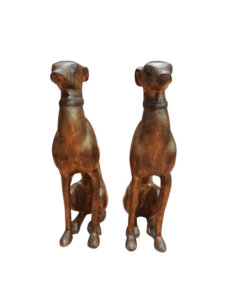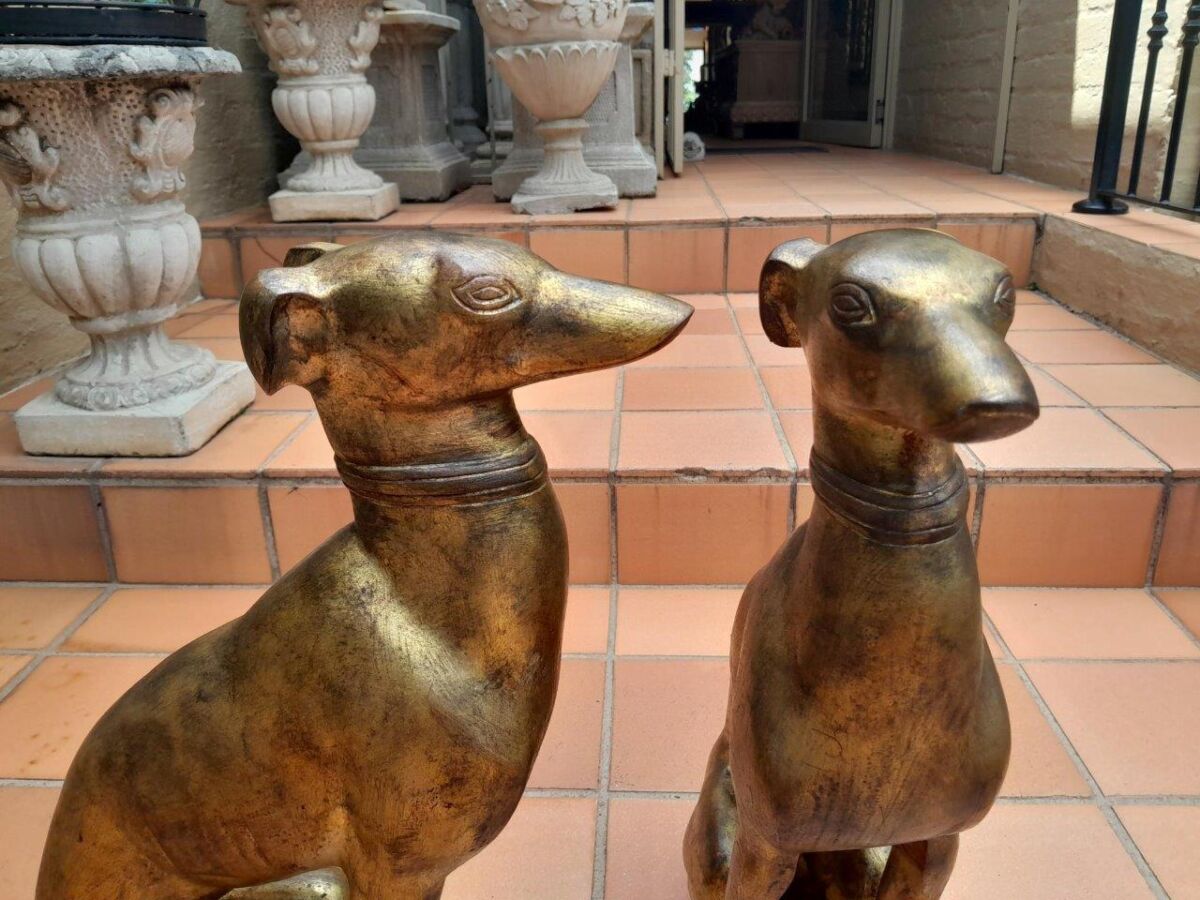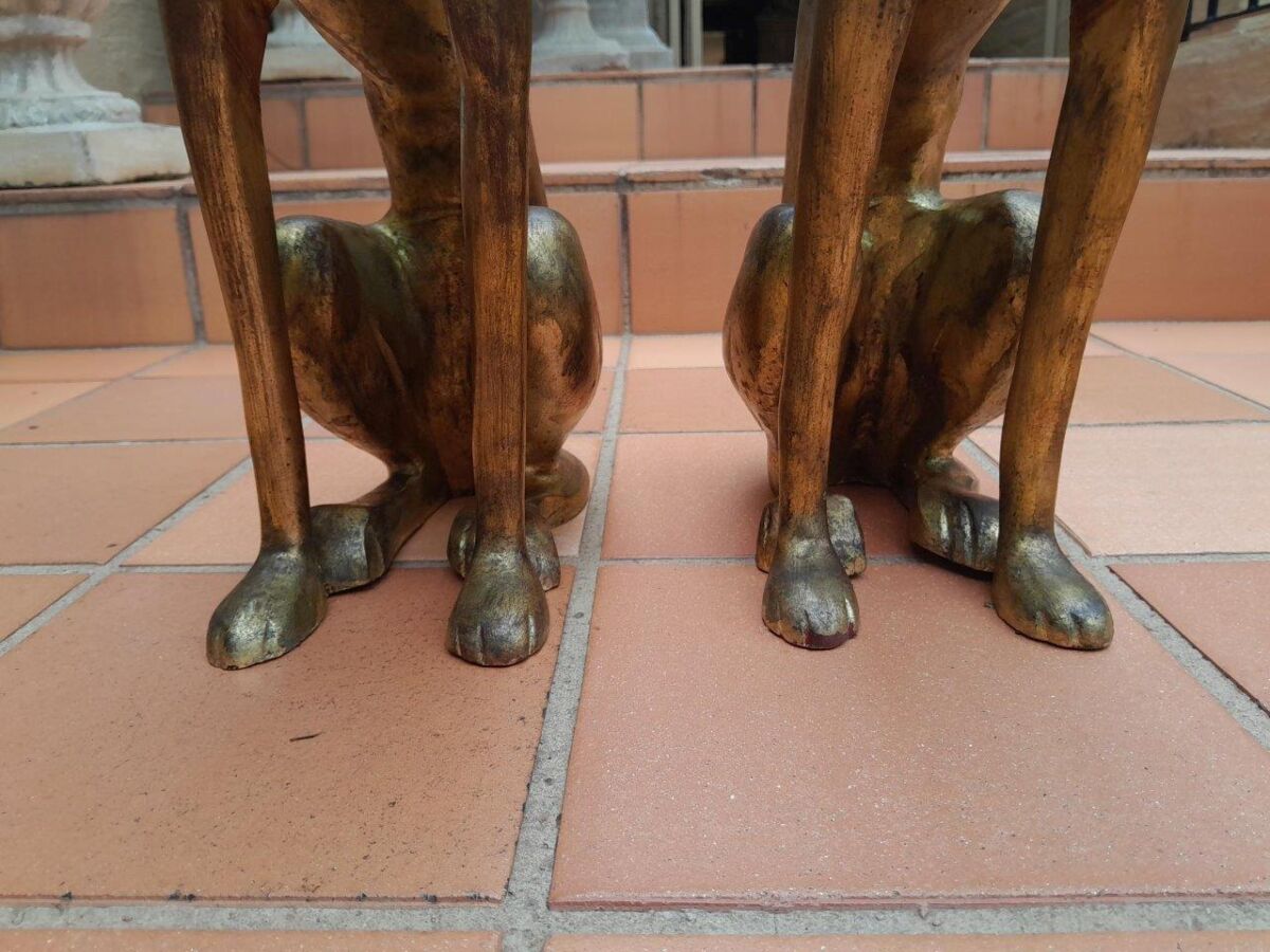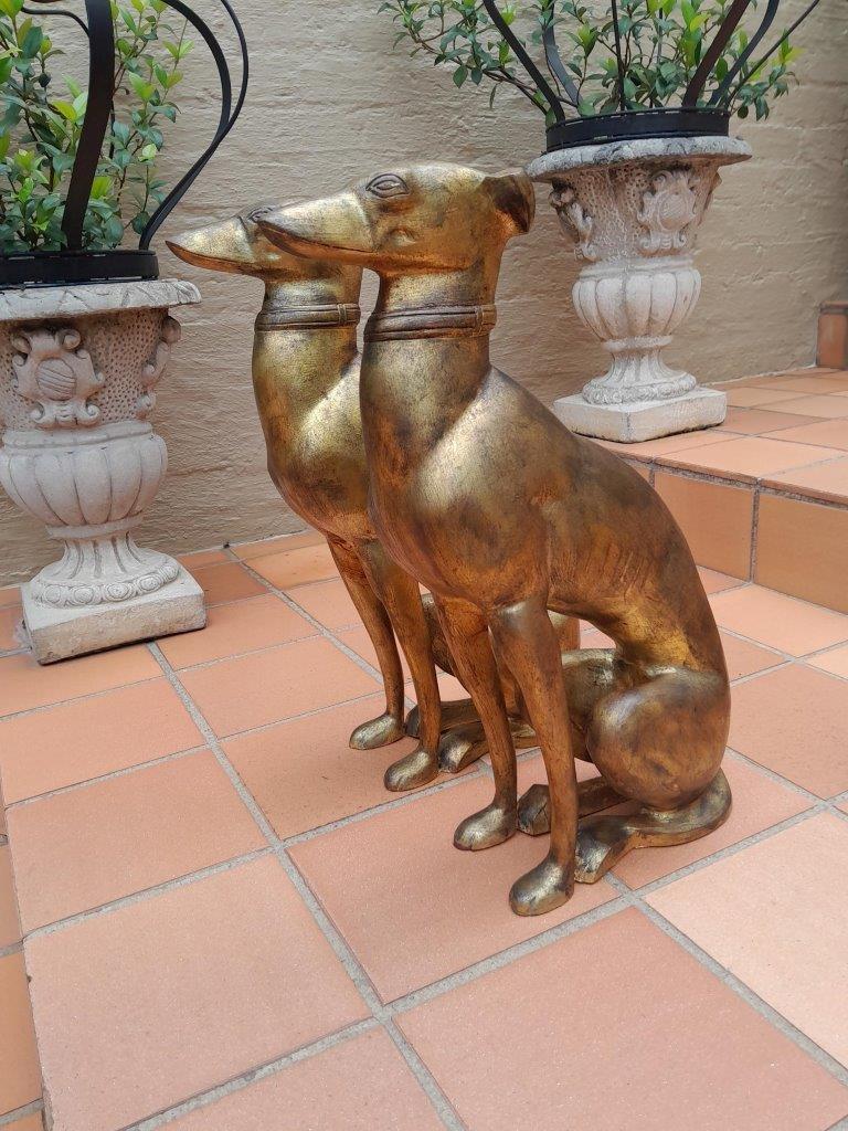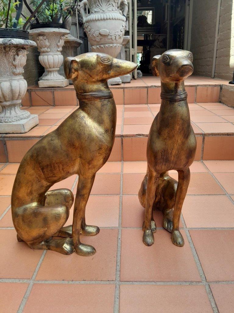 A Rare Pair Of Decorative Dogs / Whippets Of Large Proportions In A Hand Gilded With Gold Leaf And Aged Finish