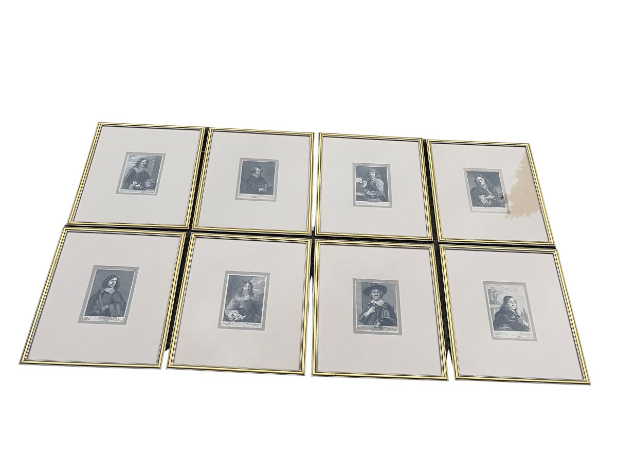 A Set Of 8 Framed Portraits Of Flemish Painters, Engravers And Architects