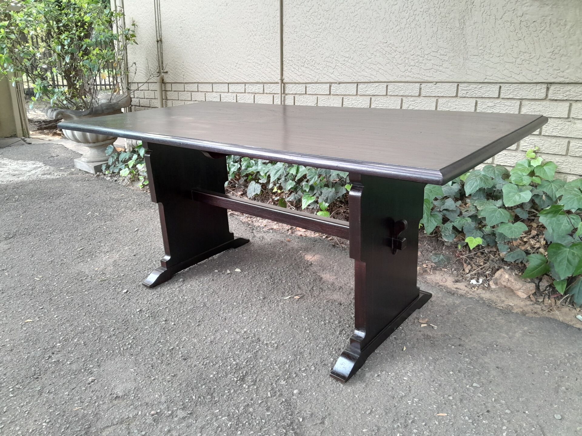 A Teak Wood Table/Desk in a Contemporary Darkened Finish (6 Seater)