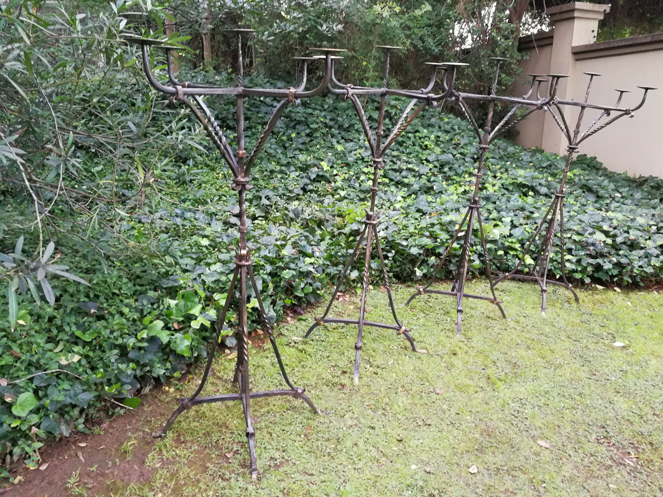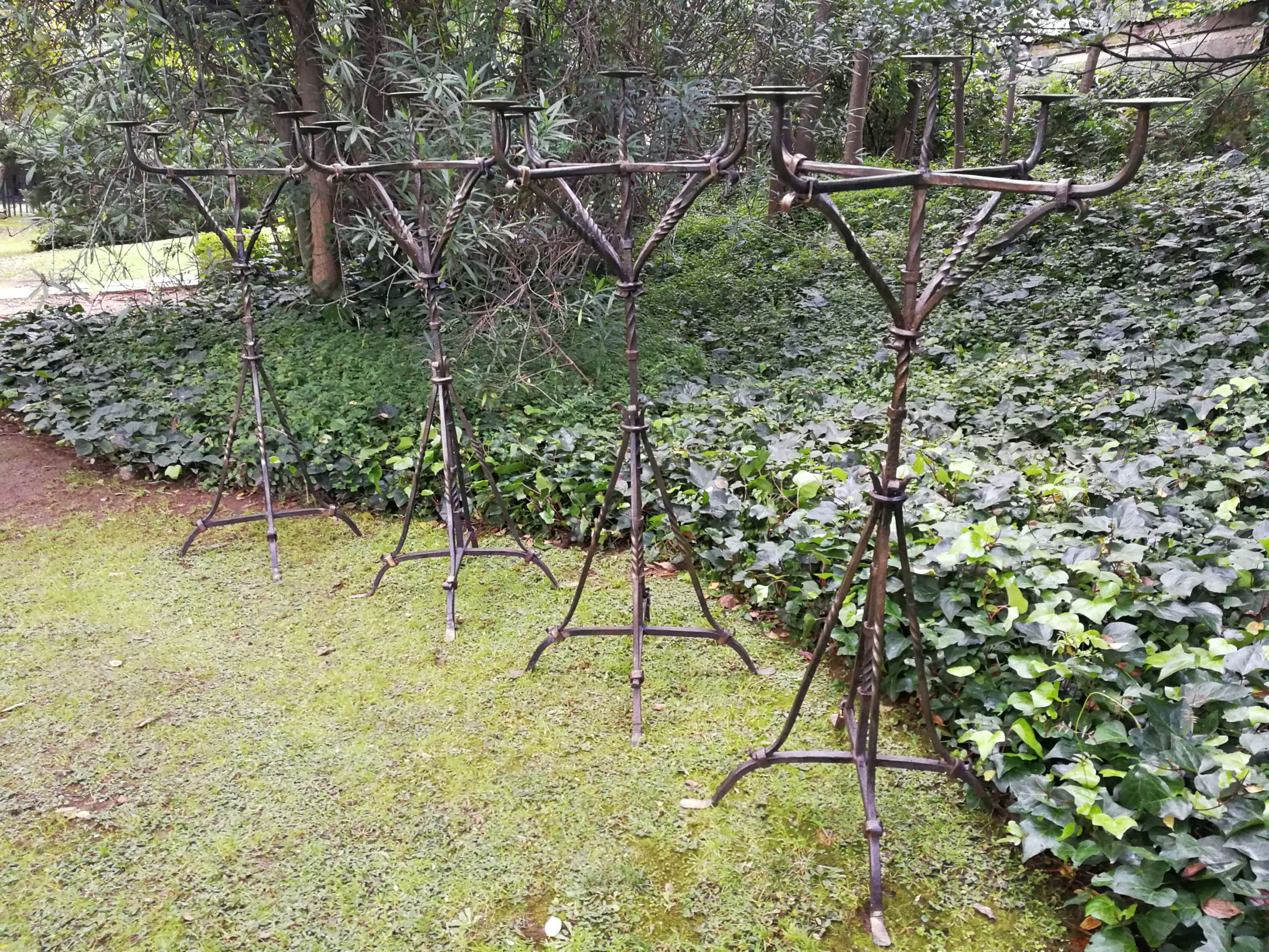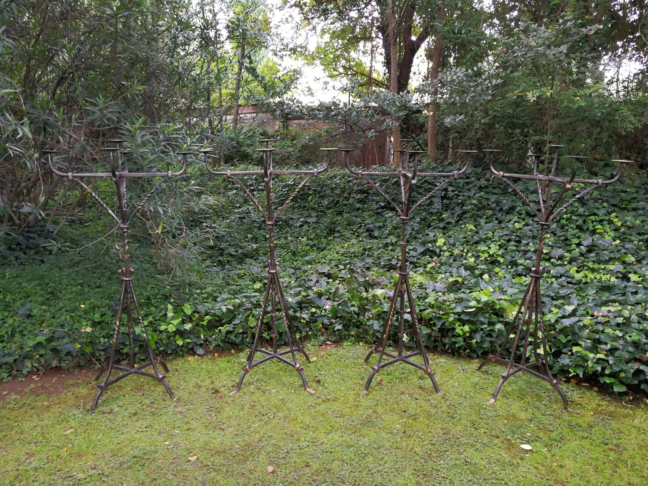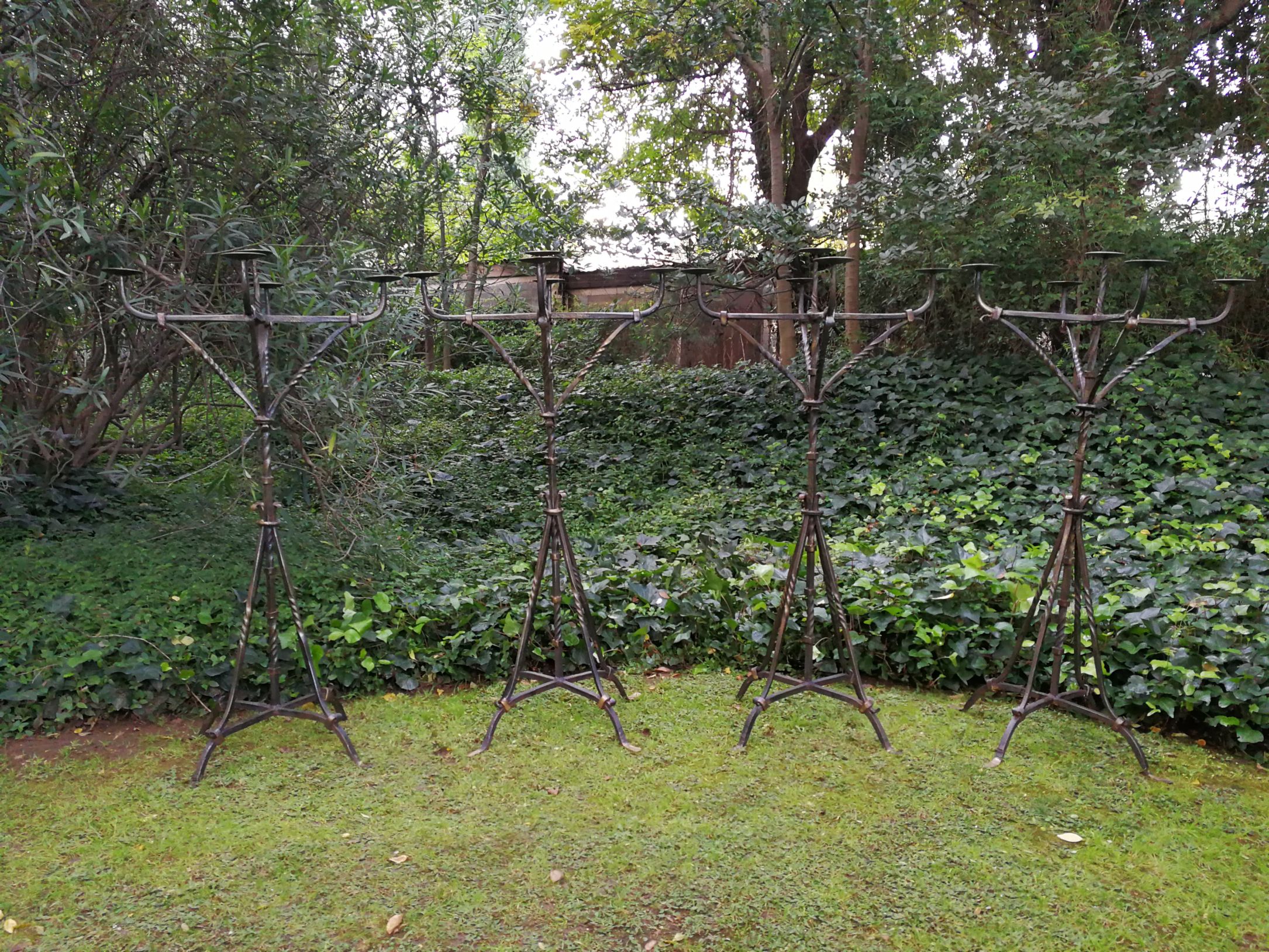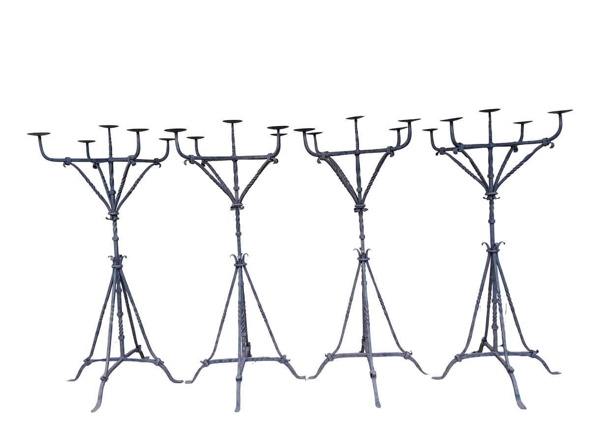 A Vintage Set of 4 Wrought Iron 5 Arm Standing Candelabras With Gold Detail
