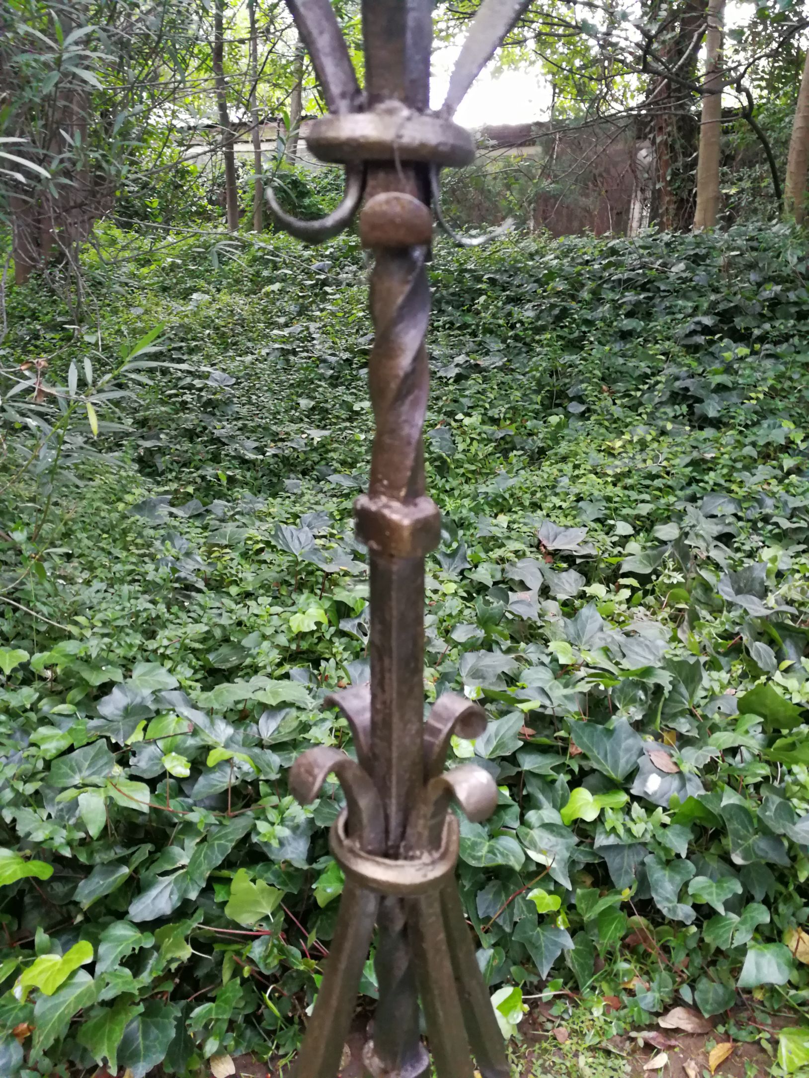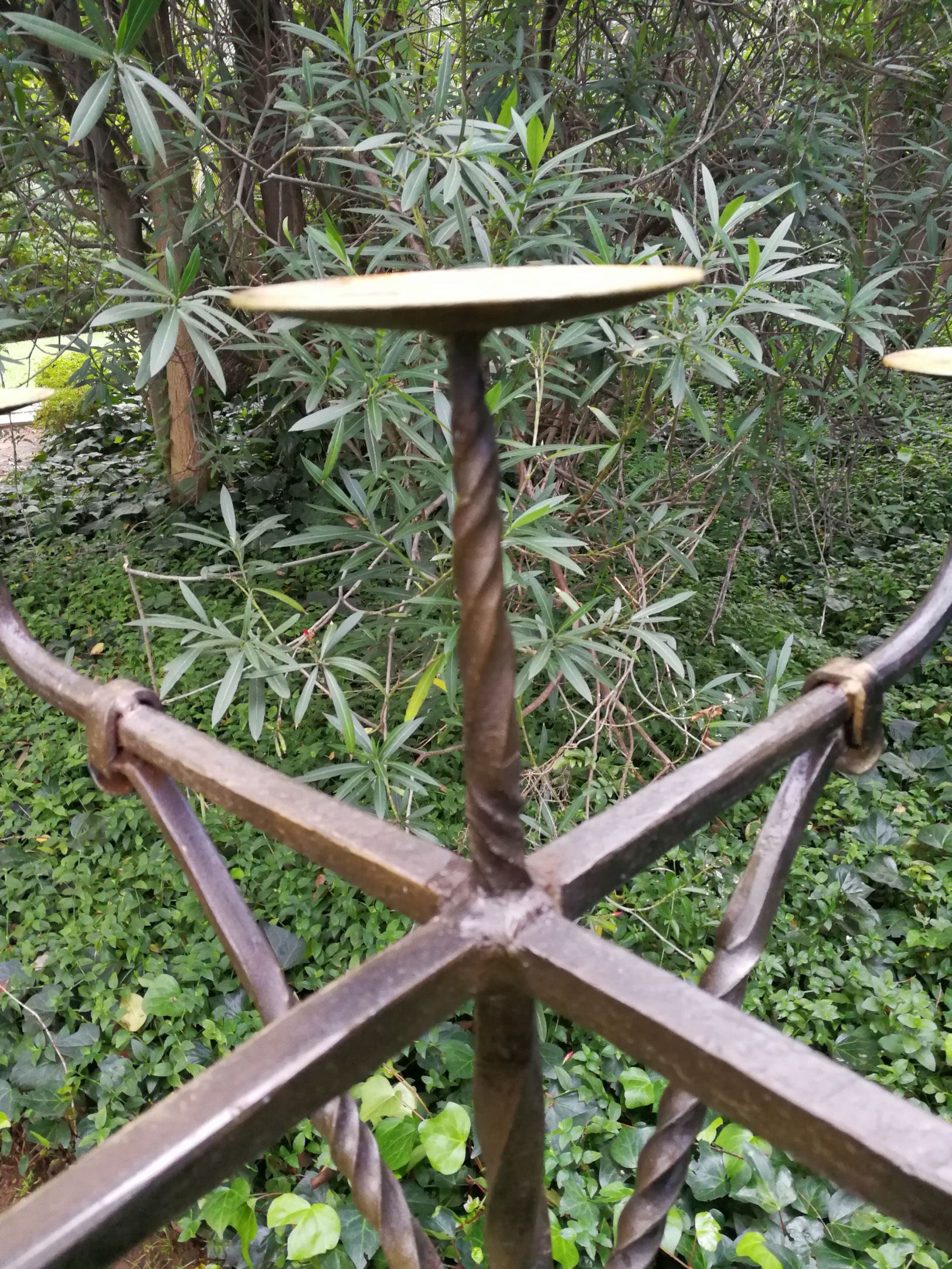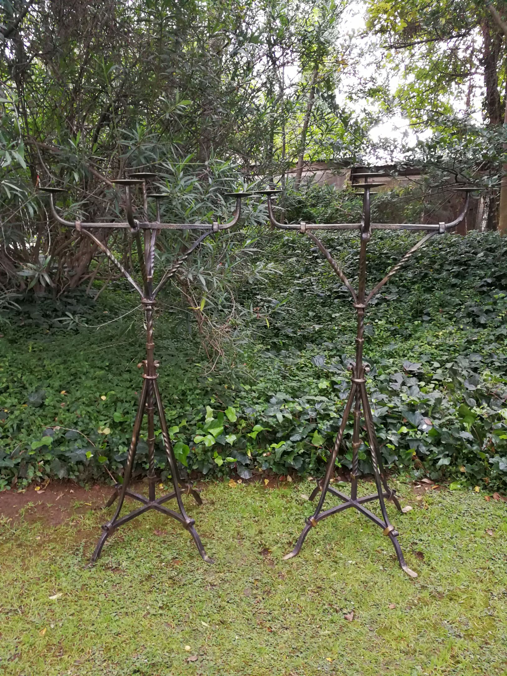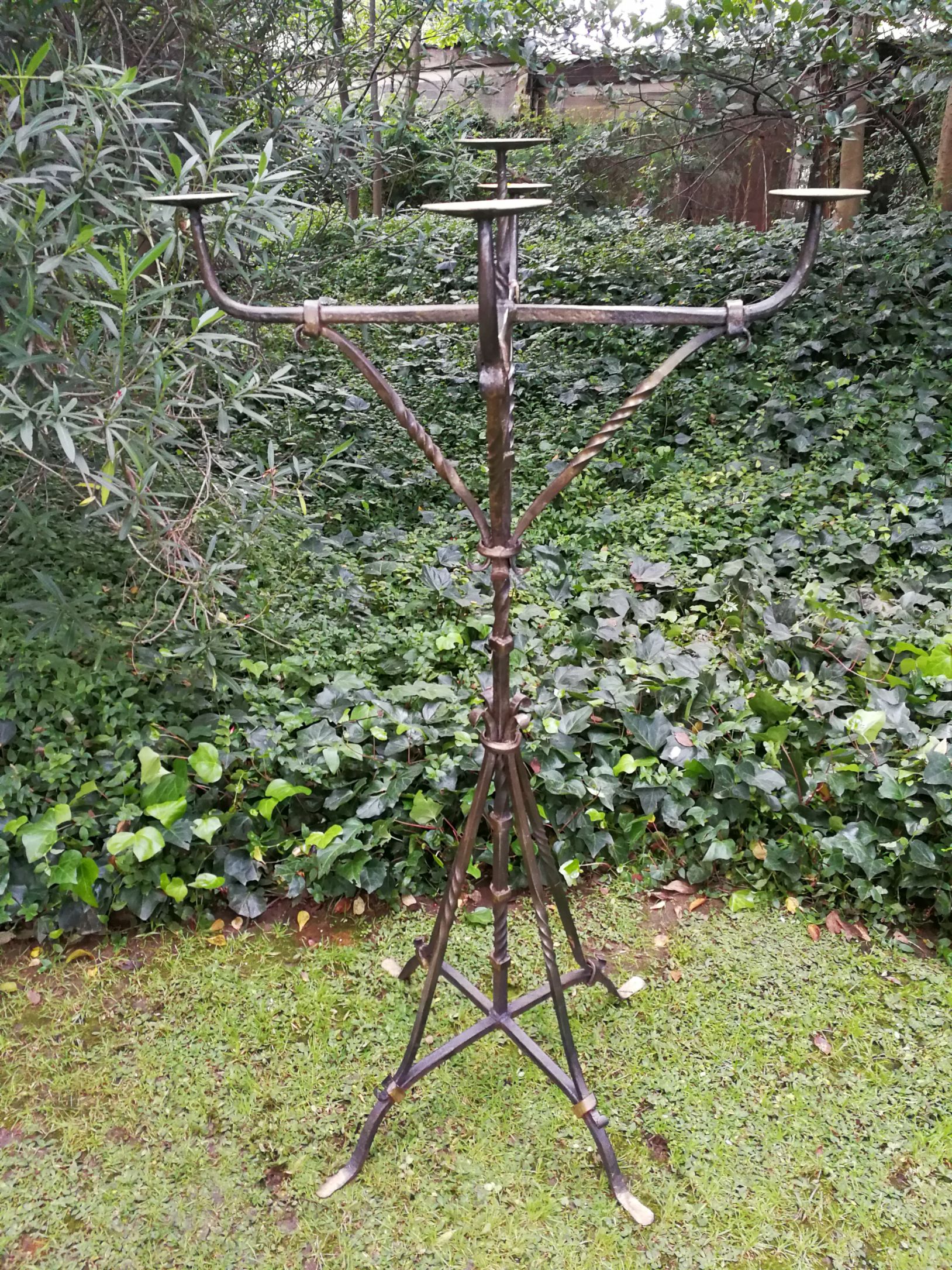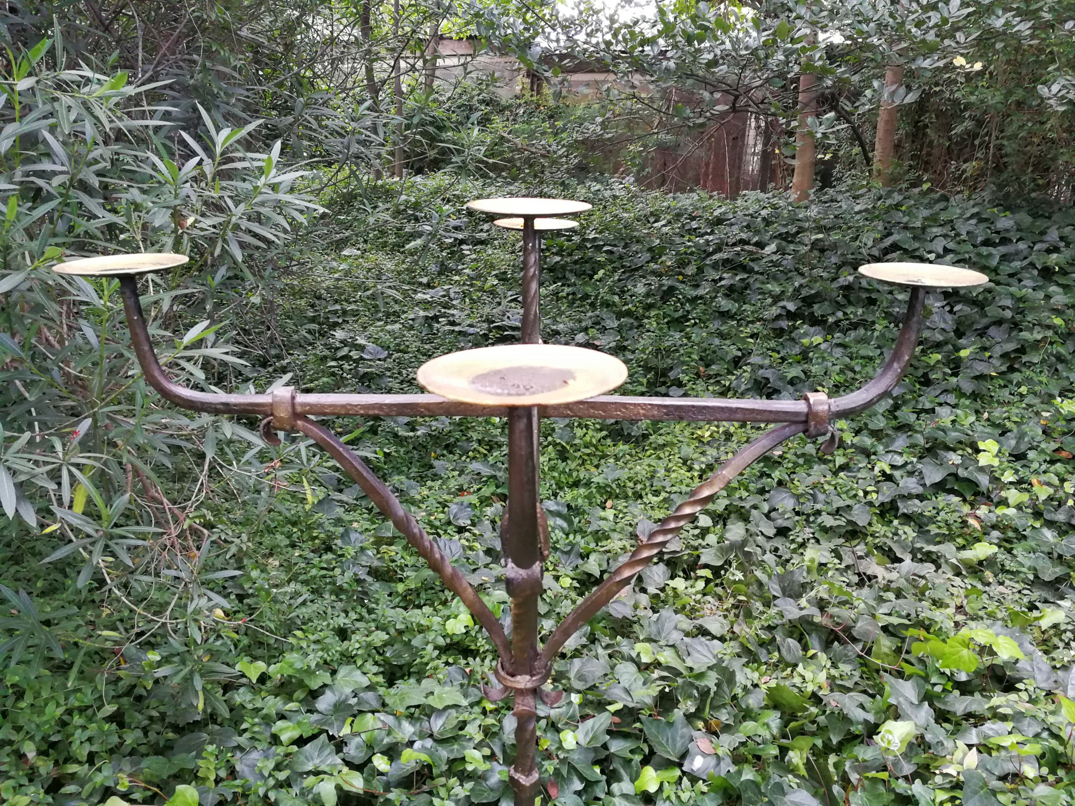 A Vintage Set of 4 Wrought Iron 5 Arm Standing Candelabras With Gold Detail