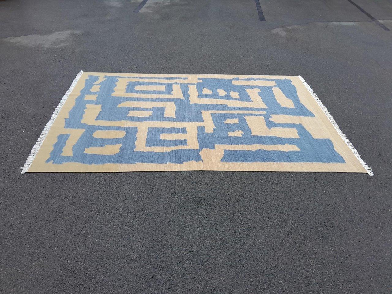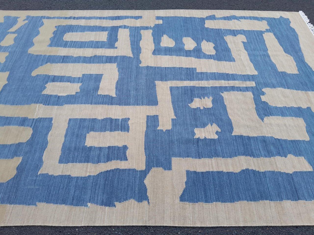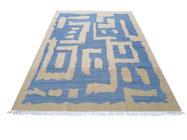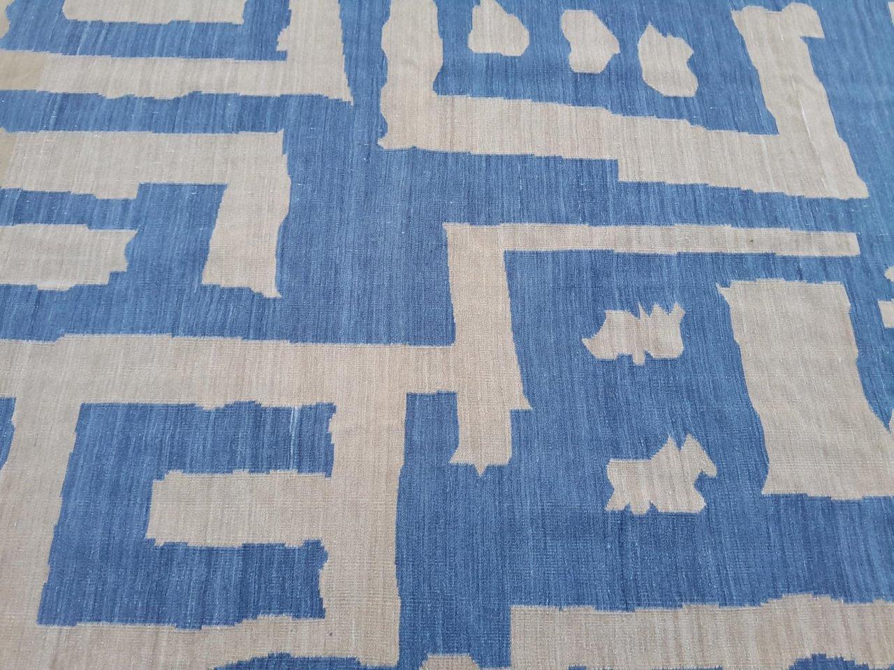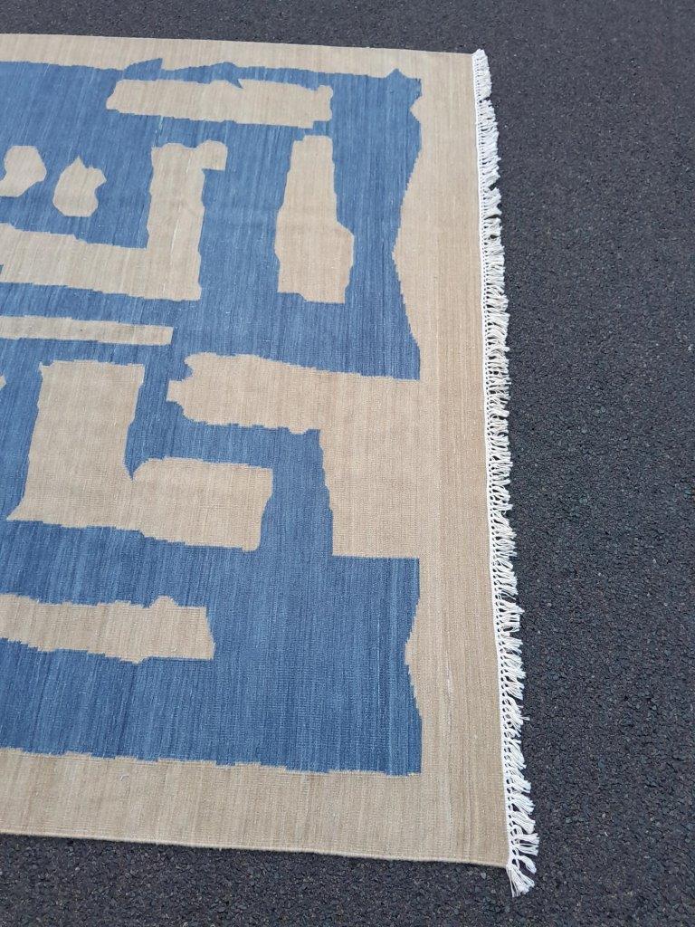 A Woven Cotton Dhurrie / Kelim In A Blue And Beige Abstract Design Nd