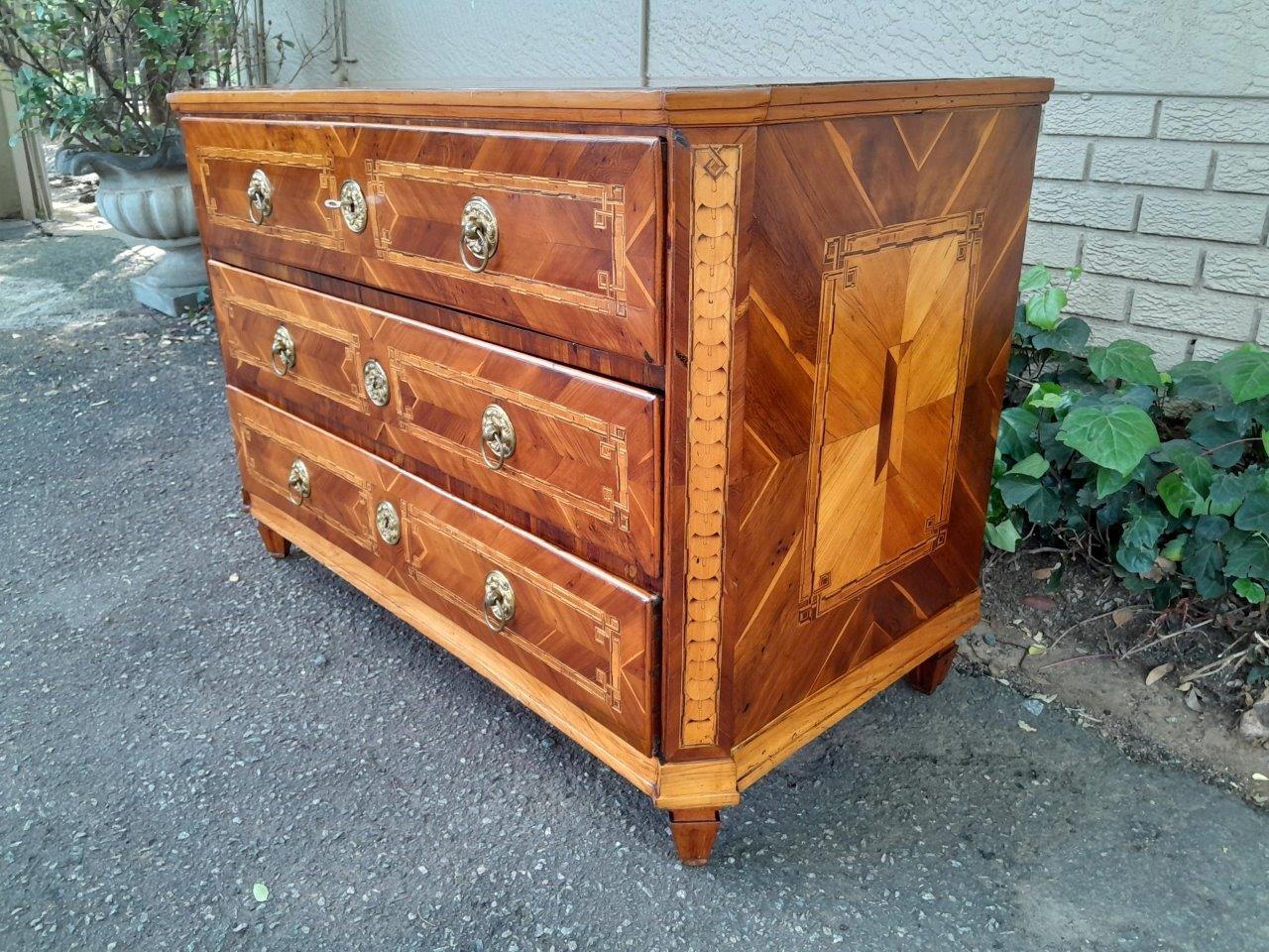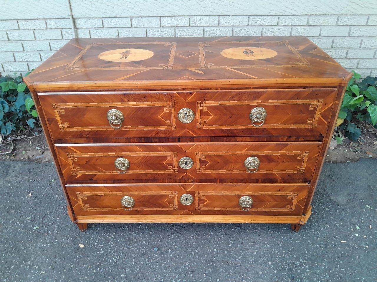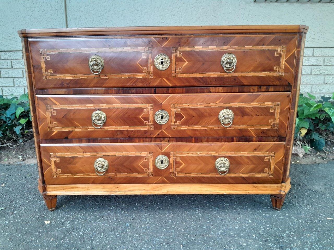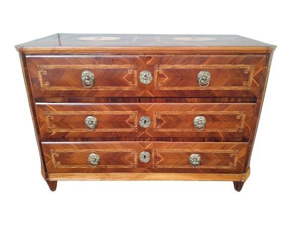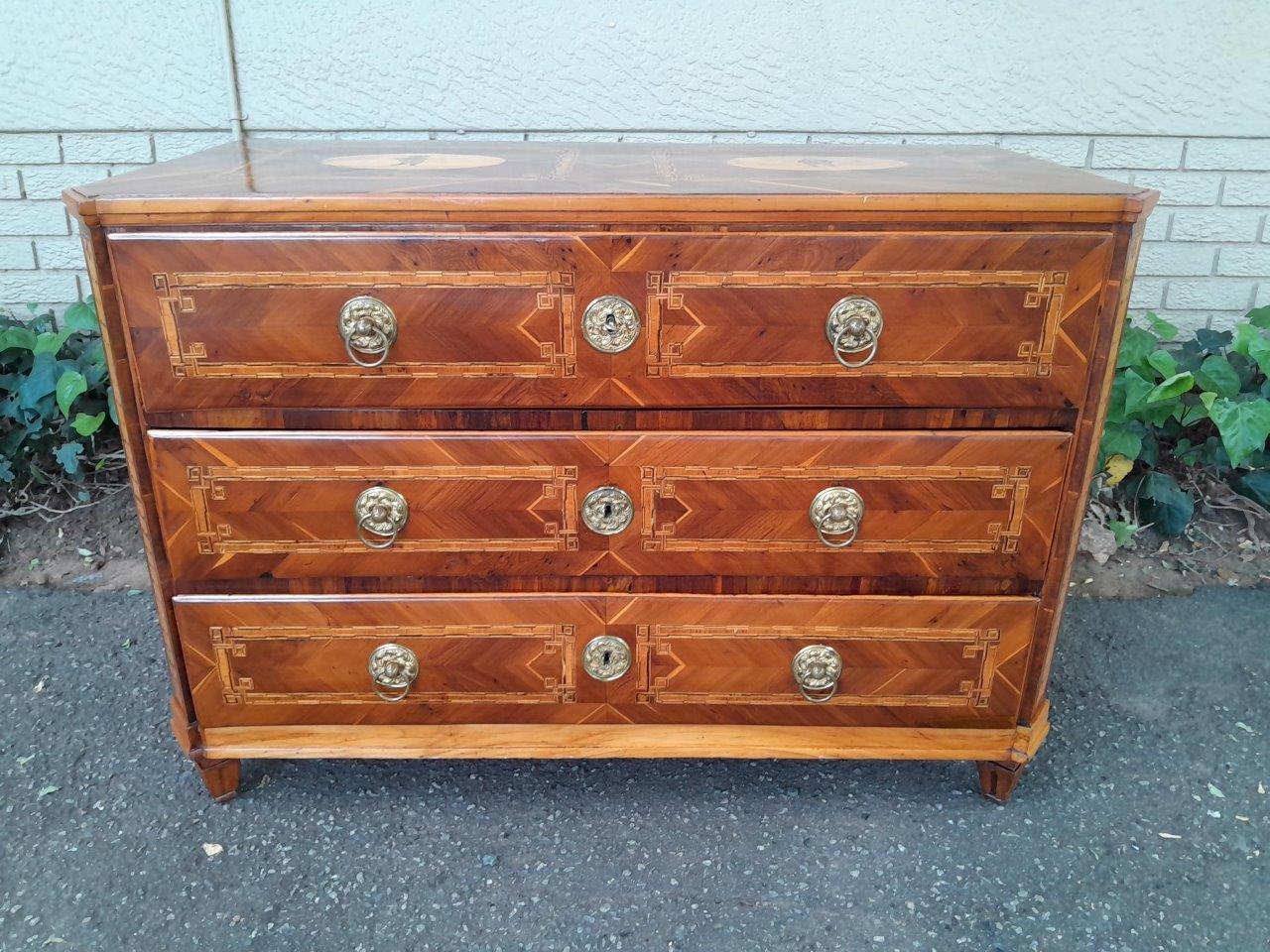 An 18th Century Circa 1790s French Louix XVI Chest Of Walnut And Marquetry Drawers / Commode