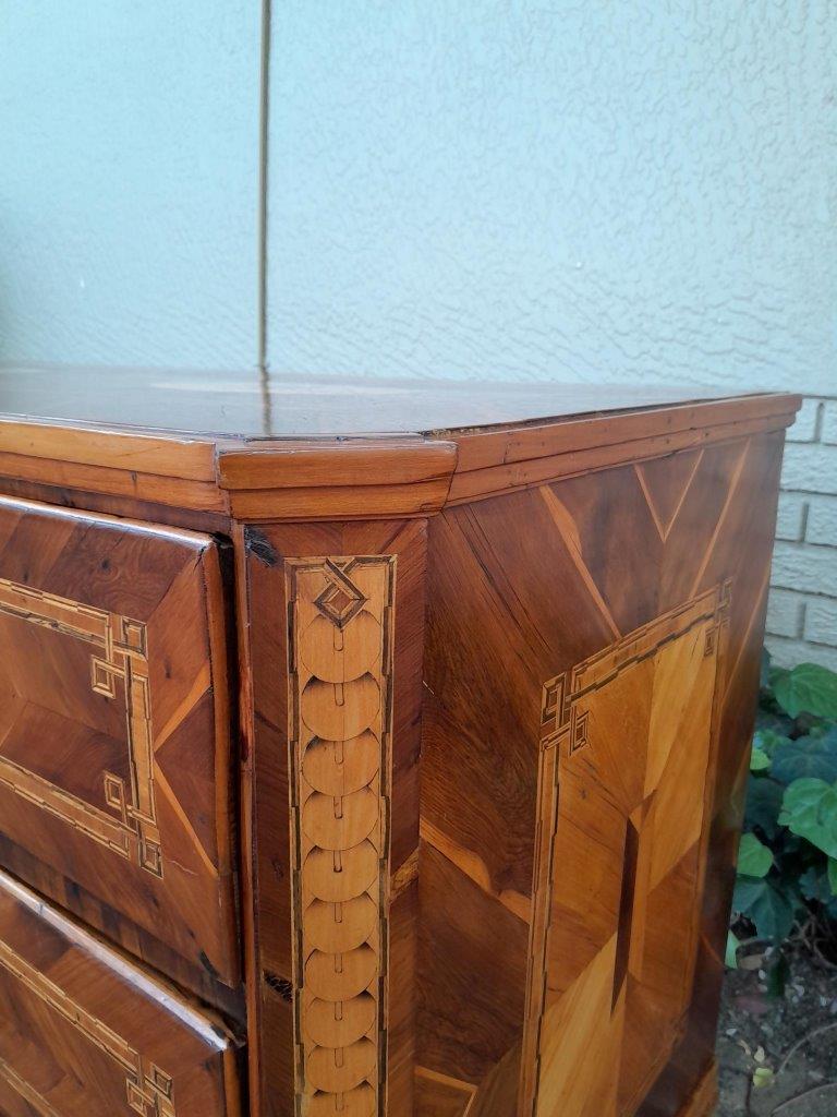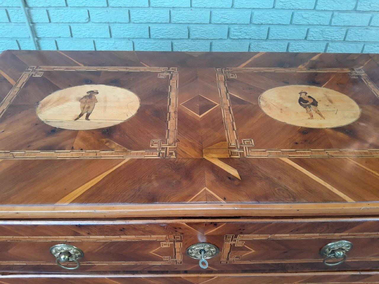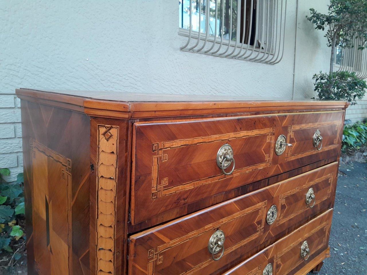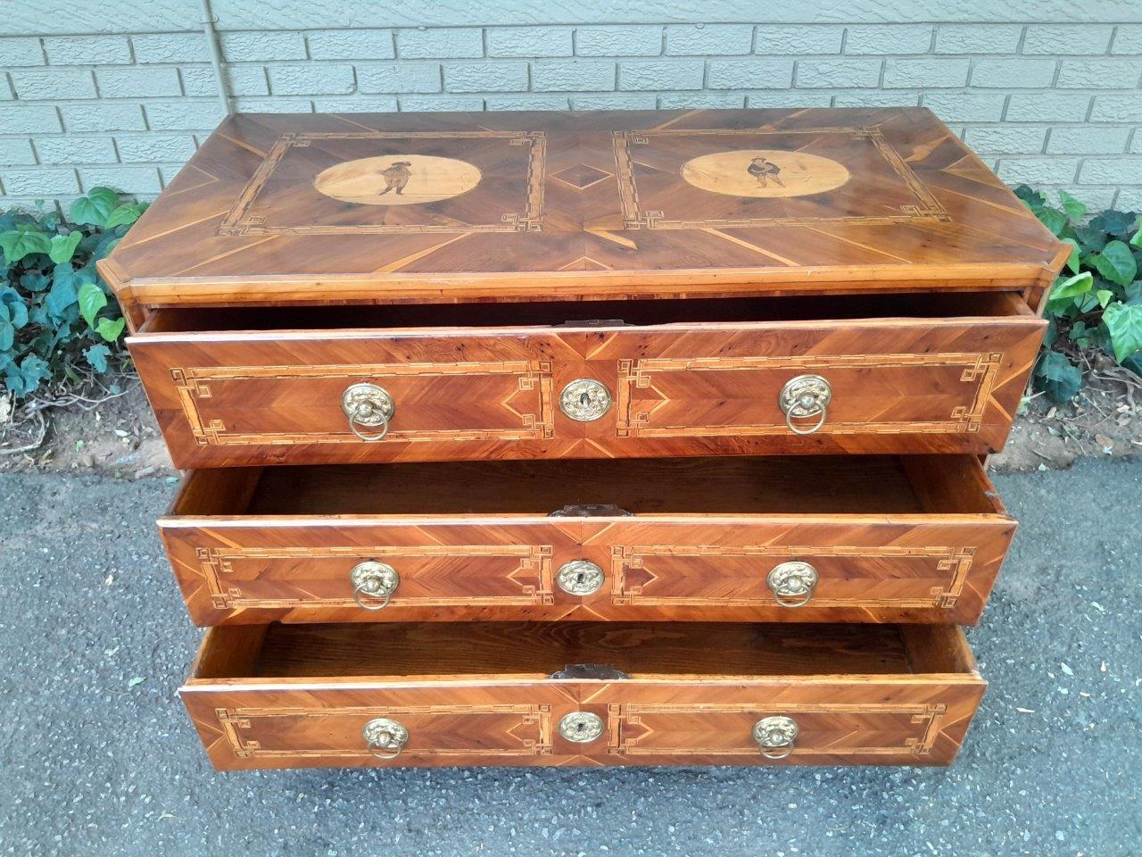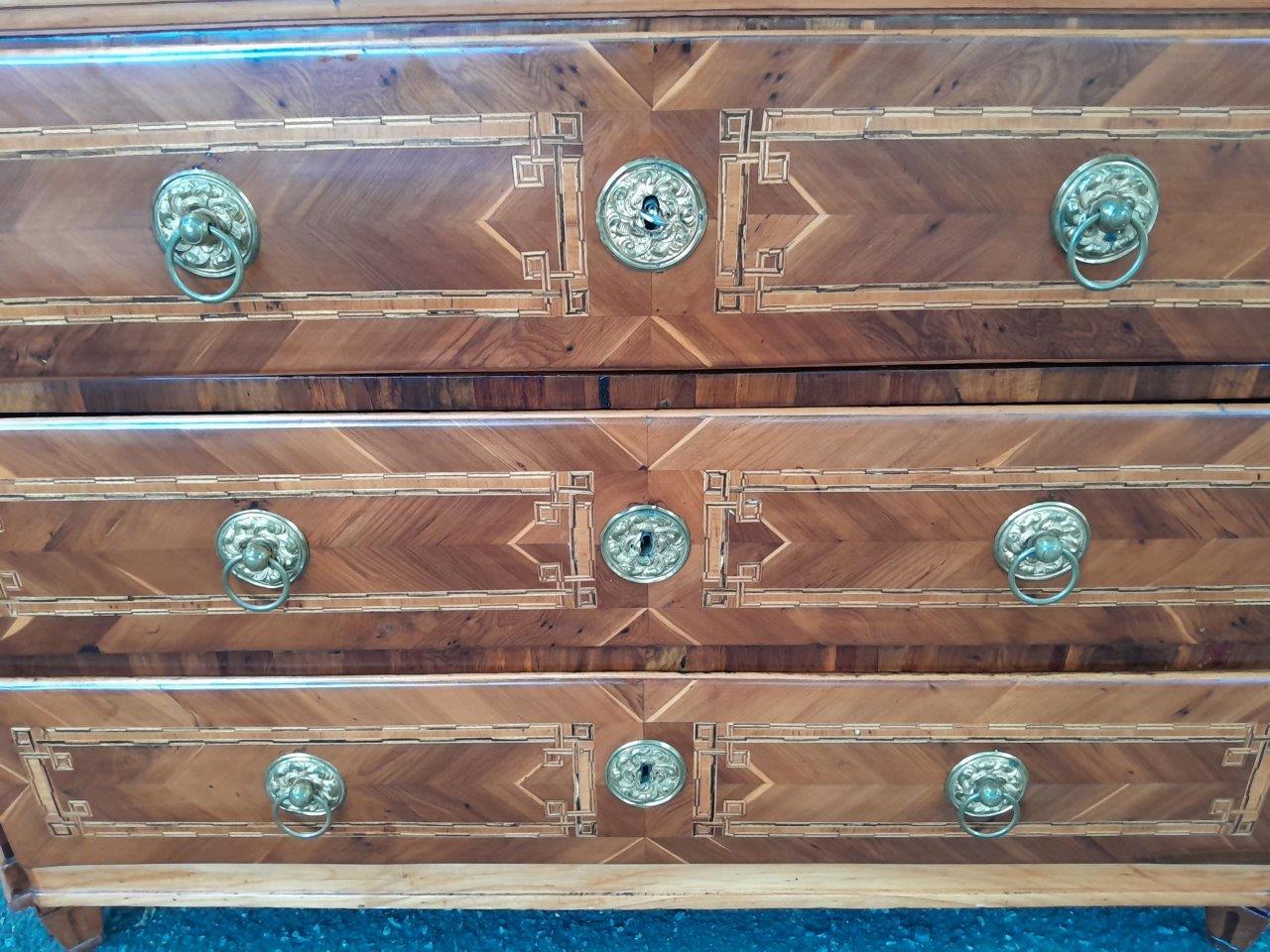 An 18th Century Circa 1790s French Louix XVI Chest Of Walnut And Marquetry Drawers / Commode