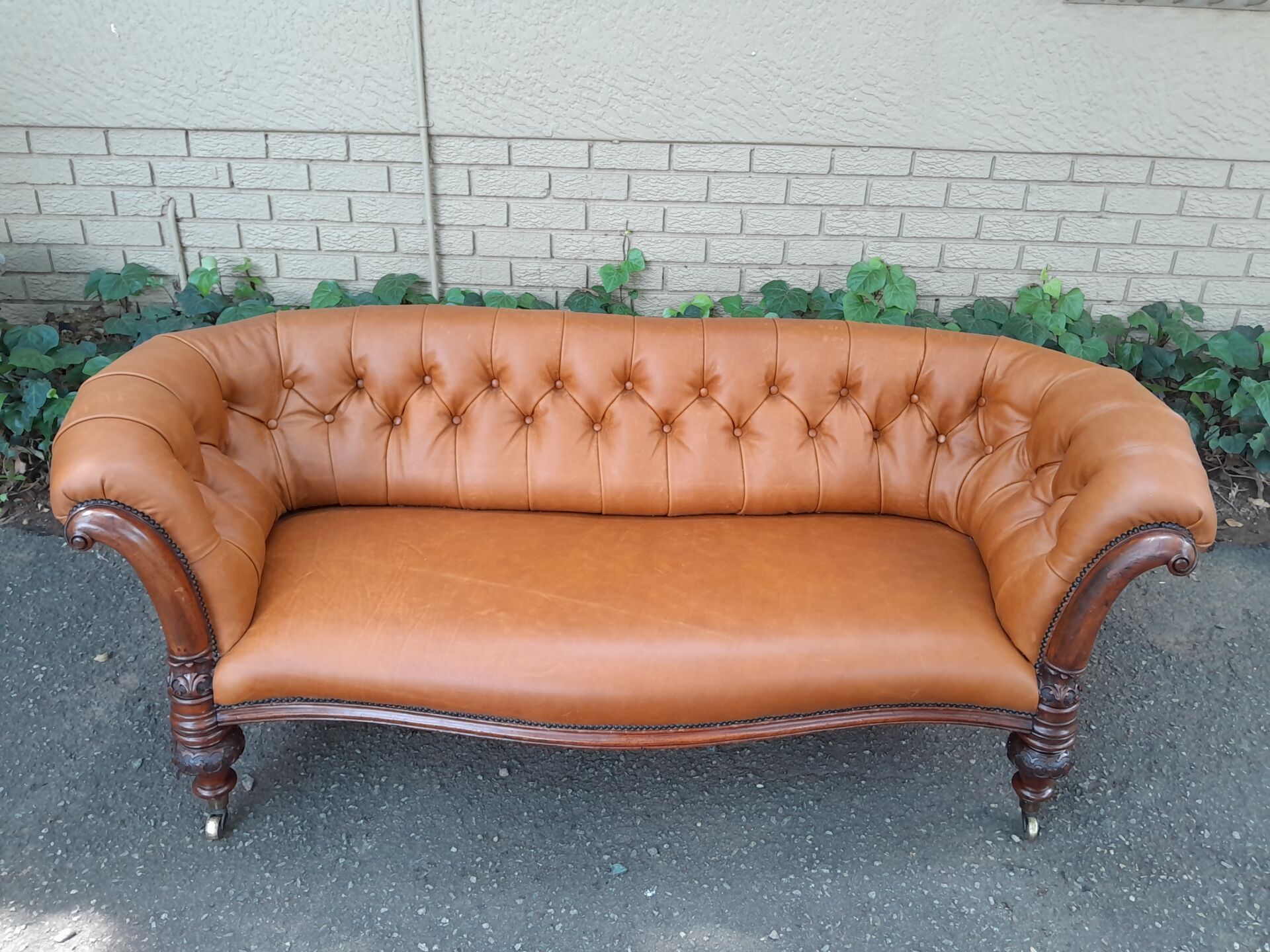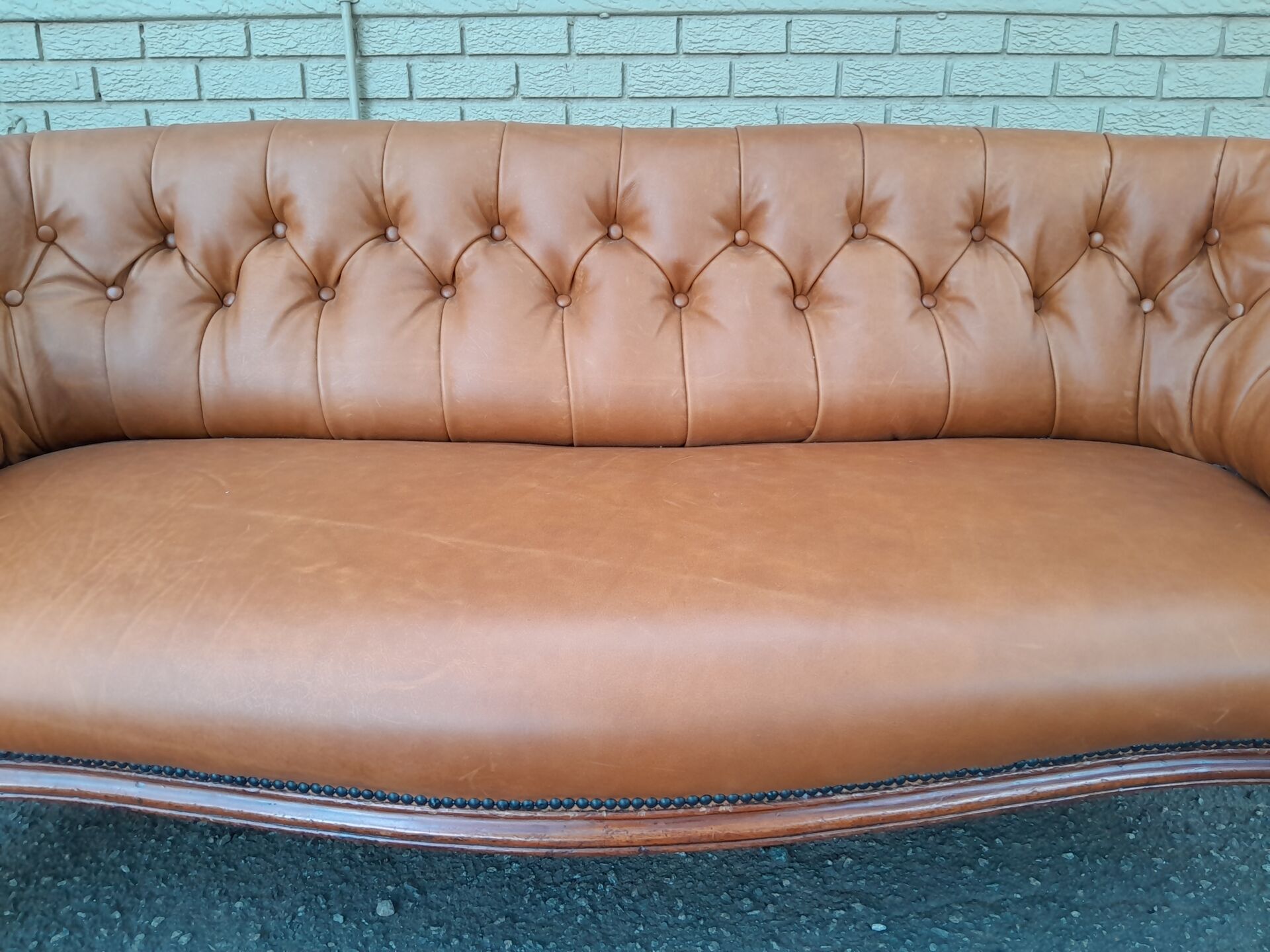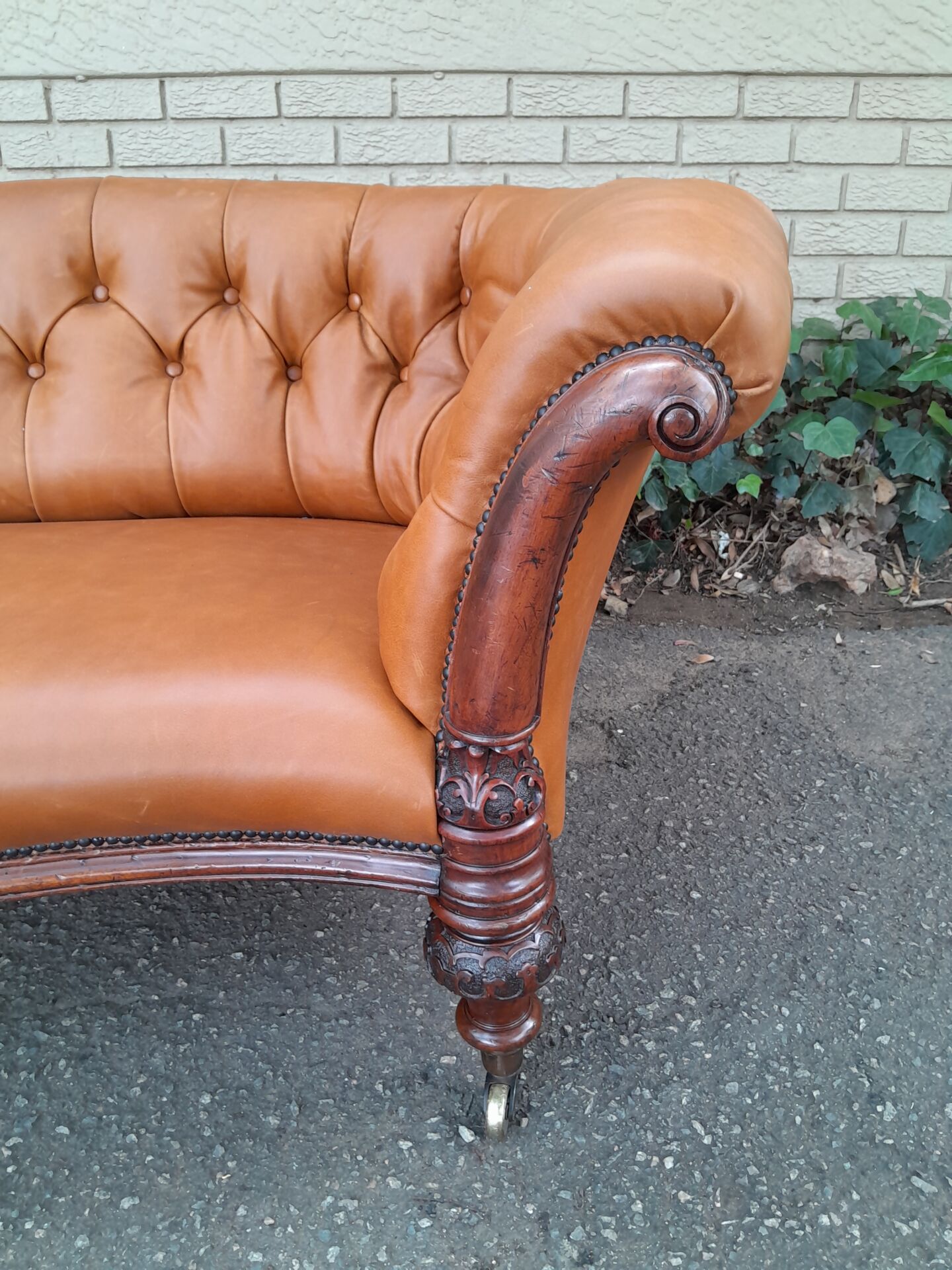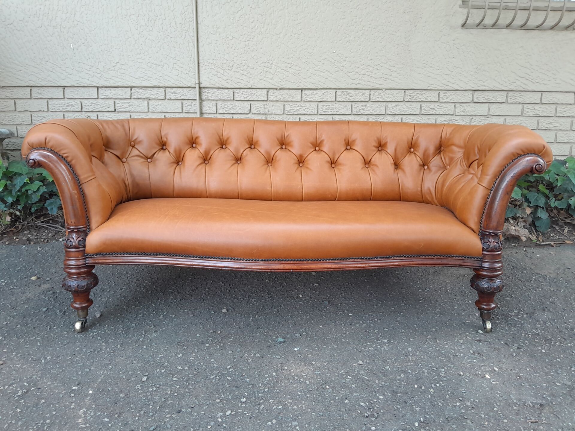 An Antique 19th Century Chesterfield Settee With Original Leather And Castors