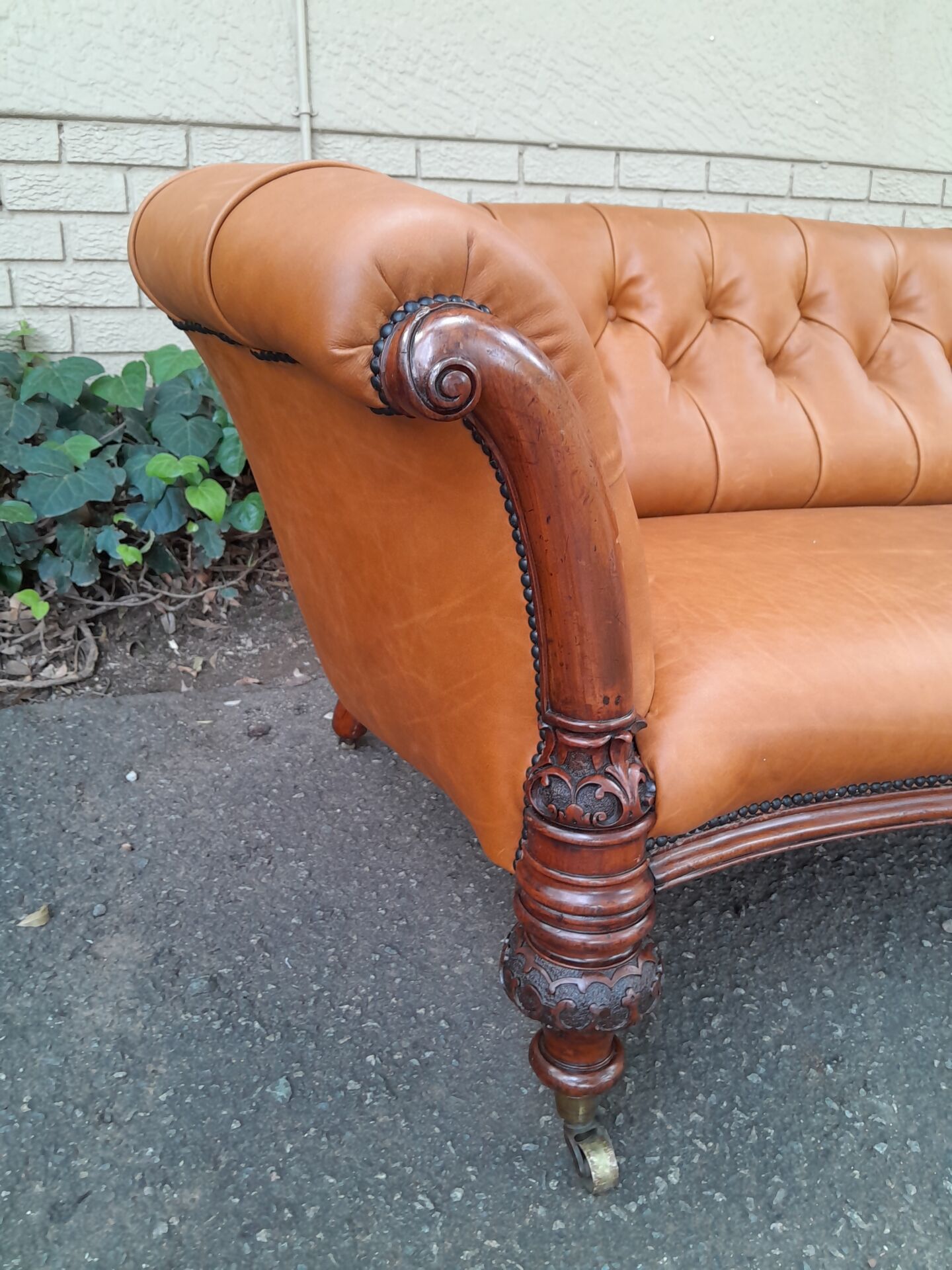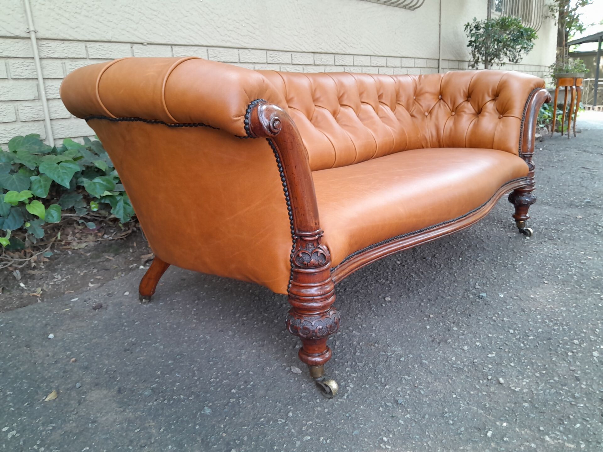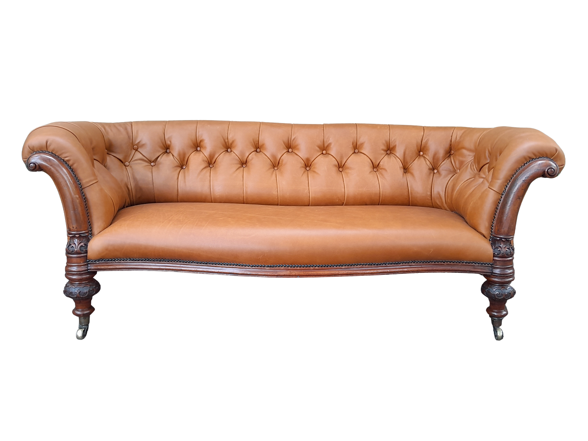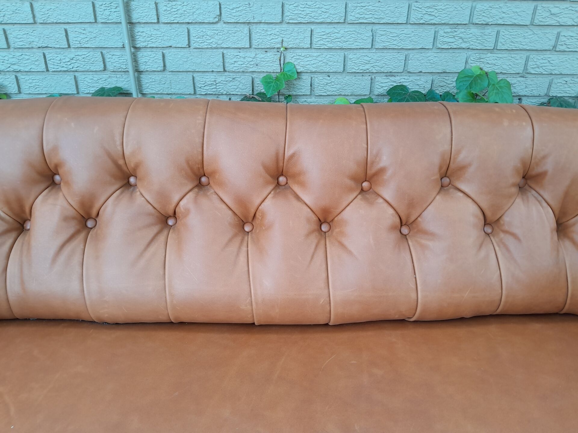 An Antique 19th Century Chesterfield Settee With Original Leather And Castors