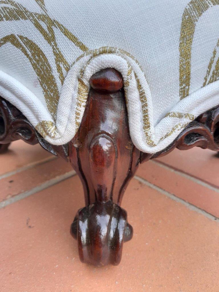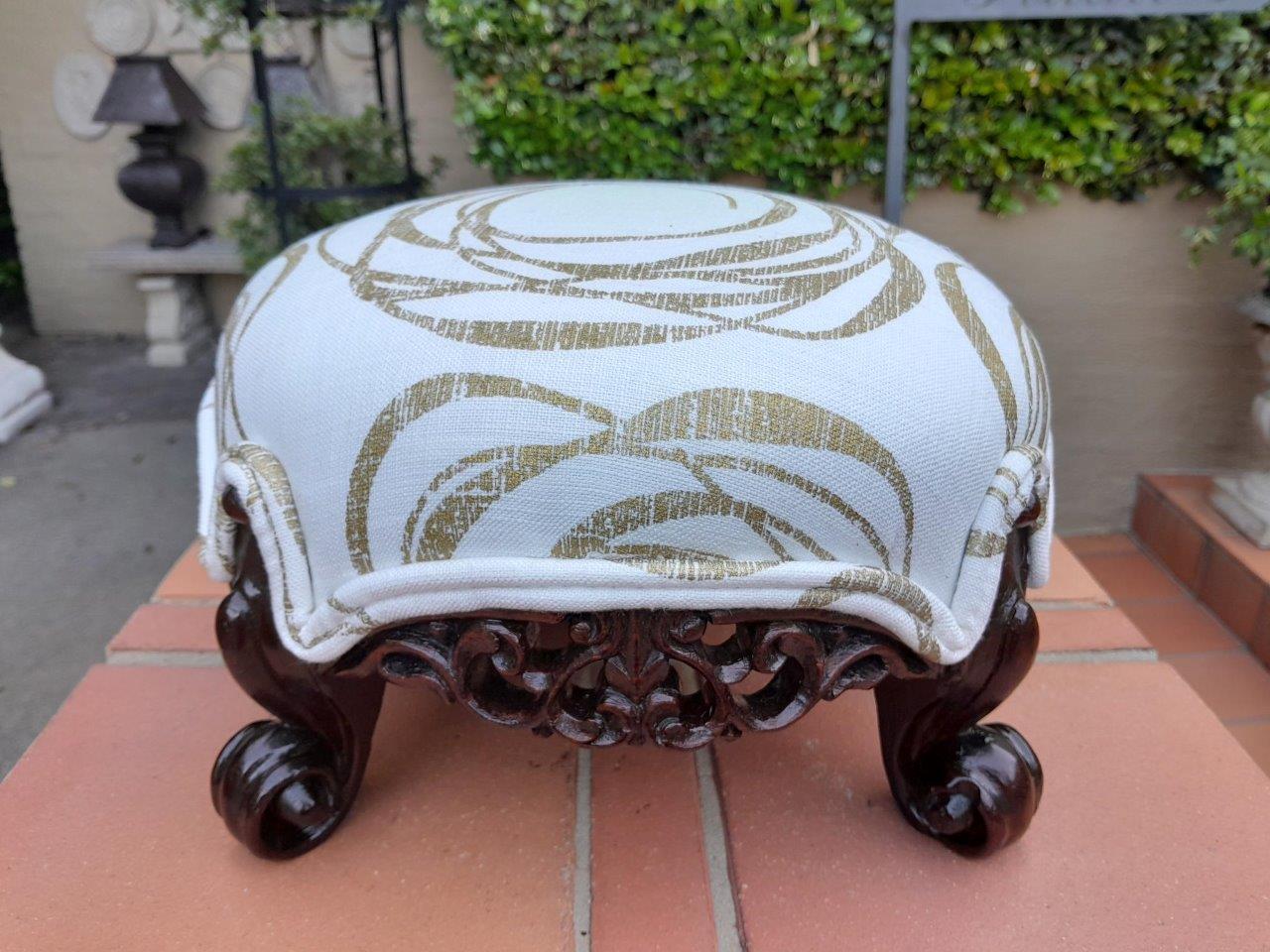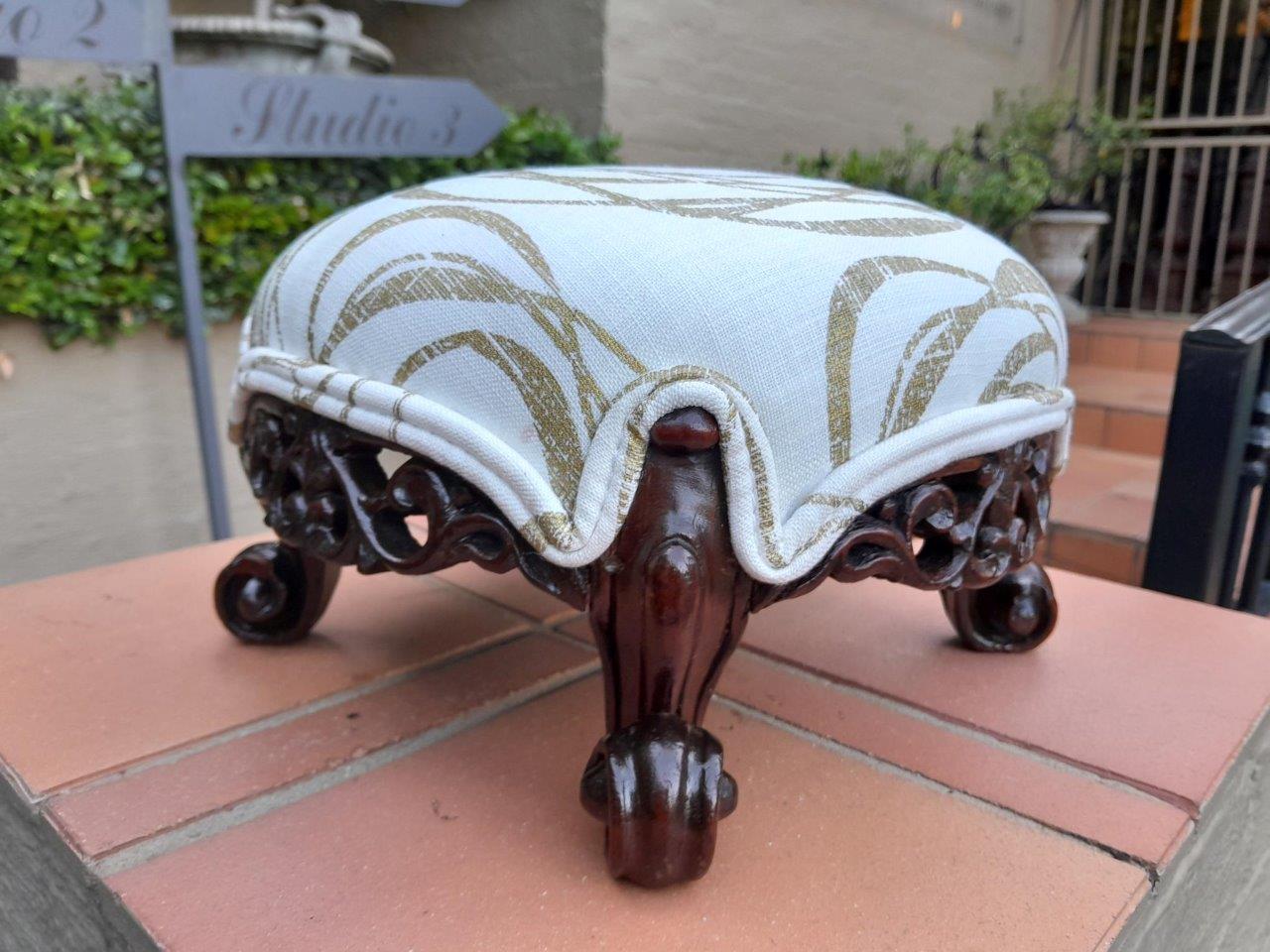 An Antique 19th Century Circa 1820s Carved Walnut Footstool Has British Antique Dealers Association Stamp