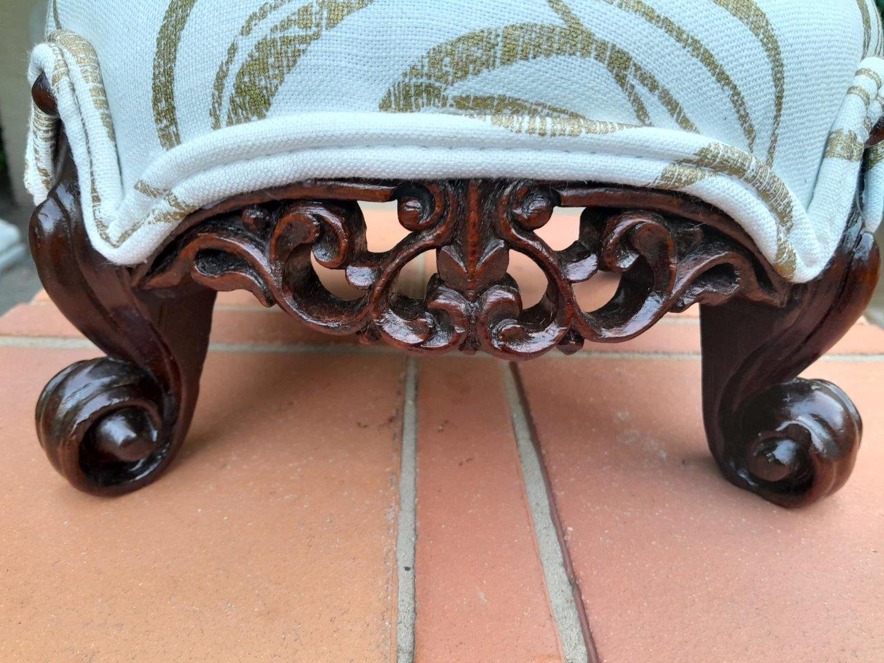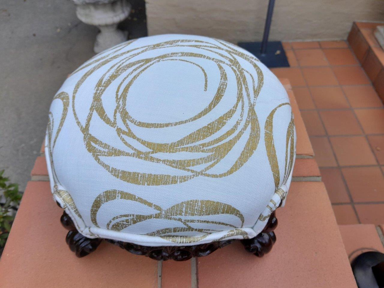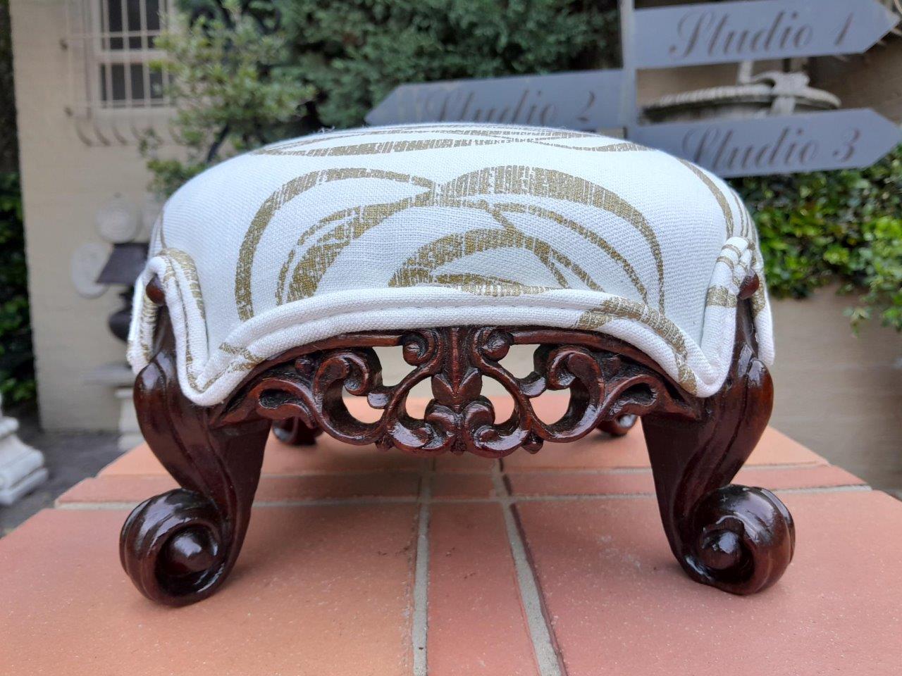 An Antique 19th Century Circa 1820s Carved Walnut Footstool Has British Antique Dealers Association Stamp