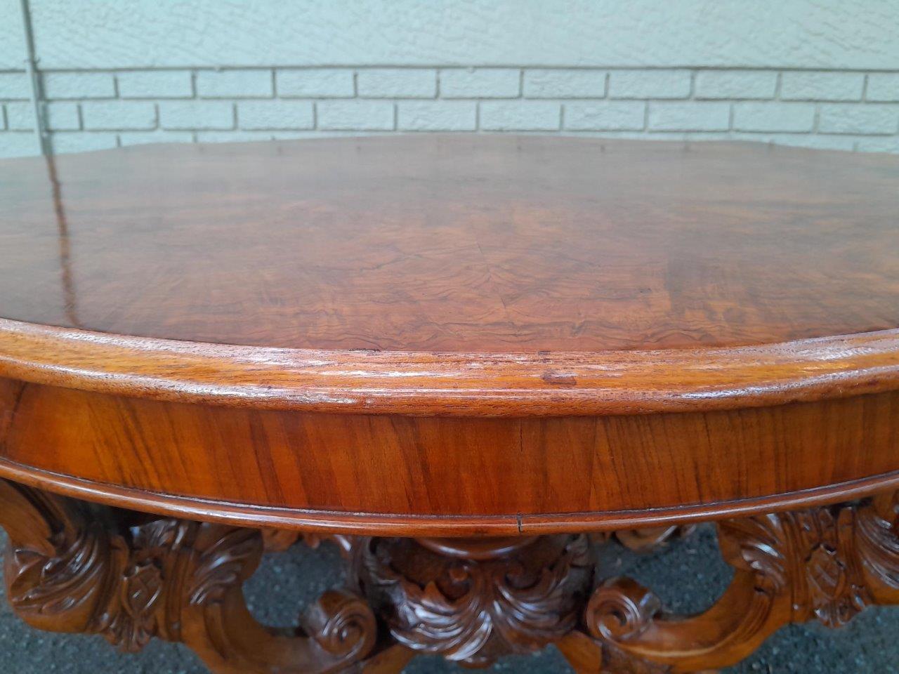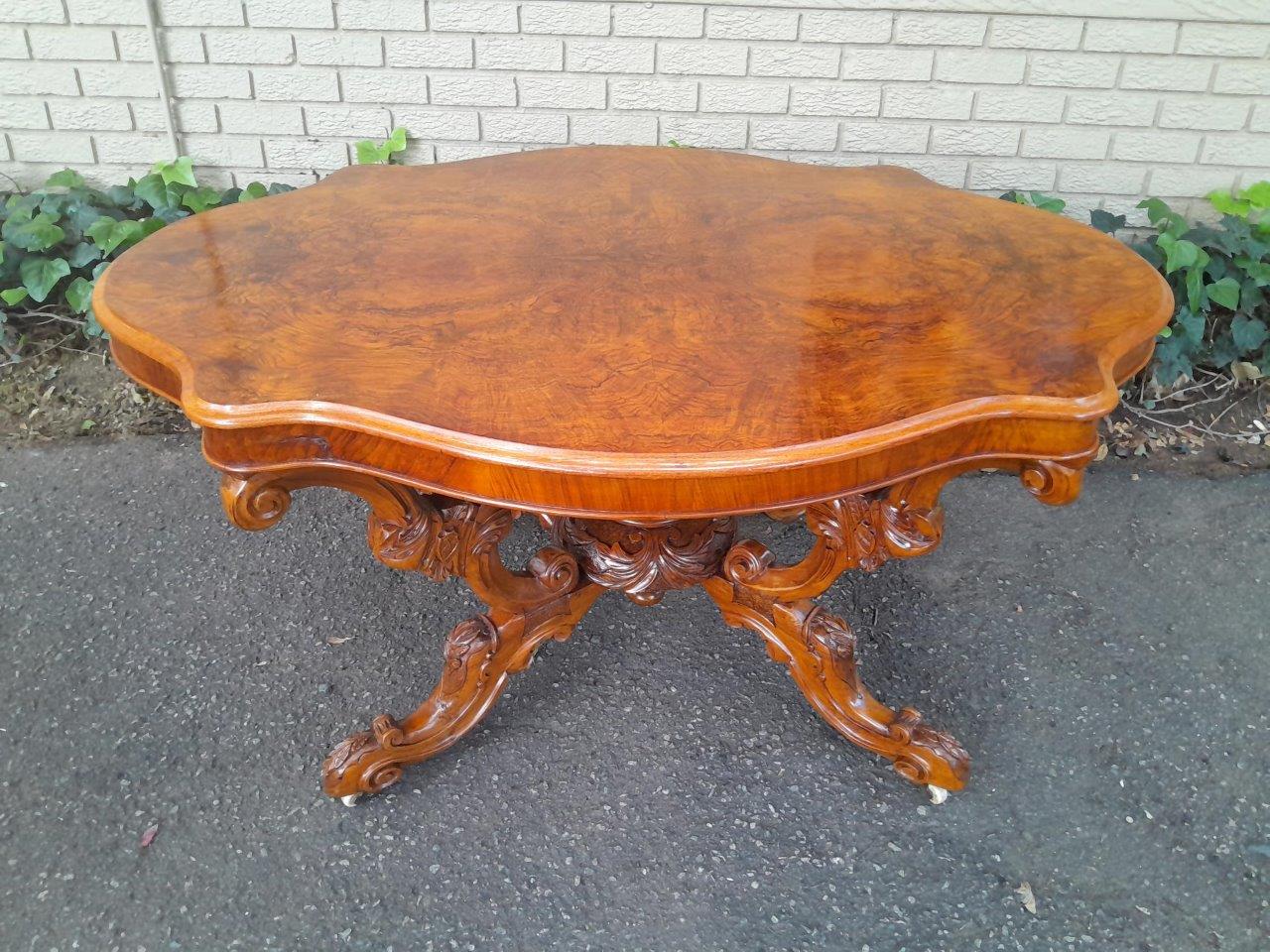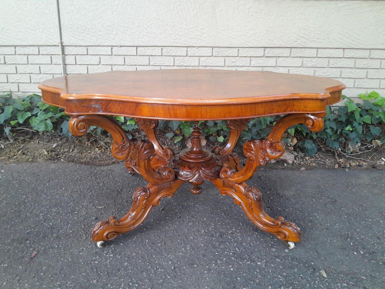 An Antique 19th Century Circa 18802 Victorian Ornately Carved Walnut And Burr Walnut Centre Table On Castors
