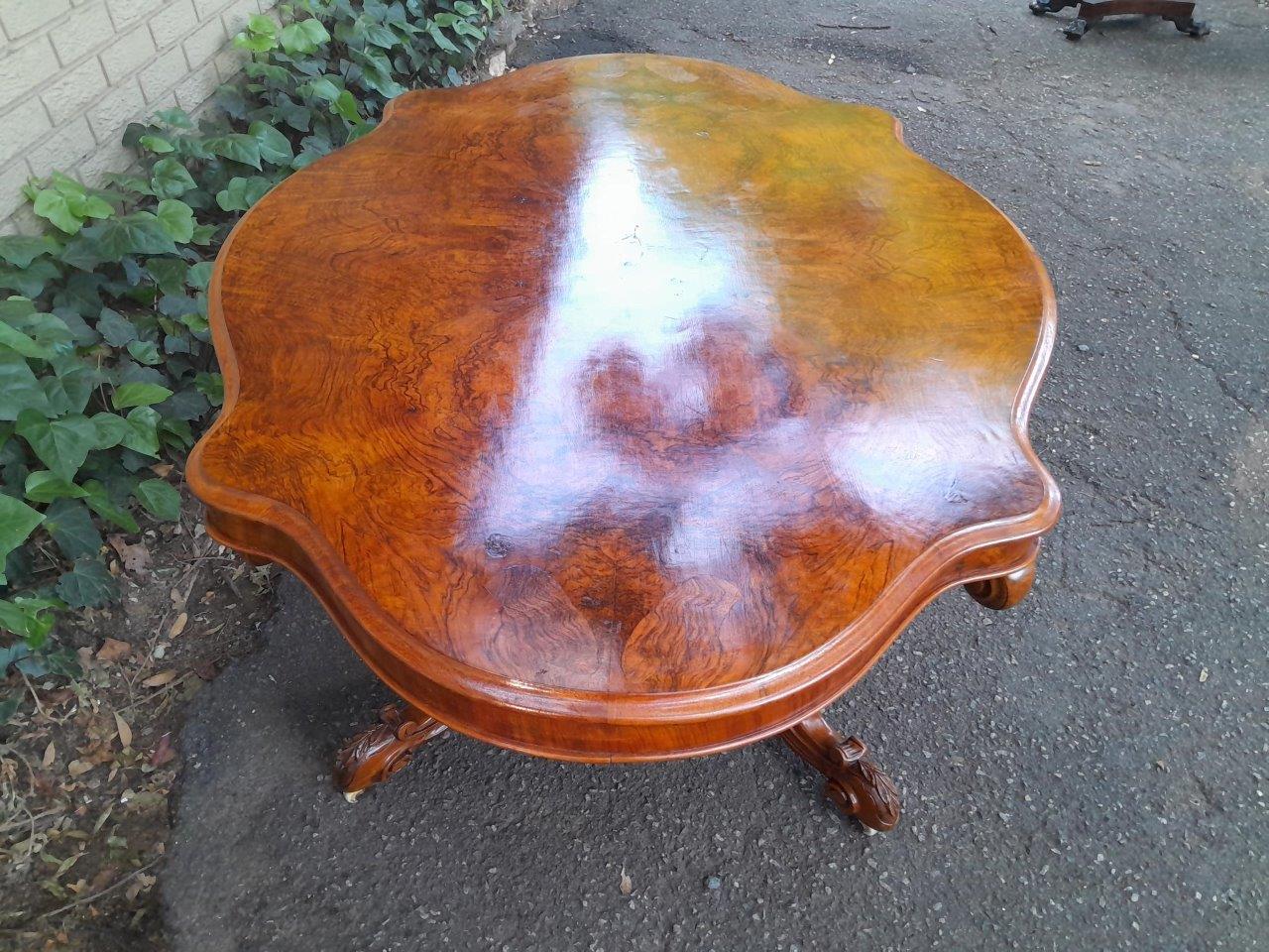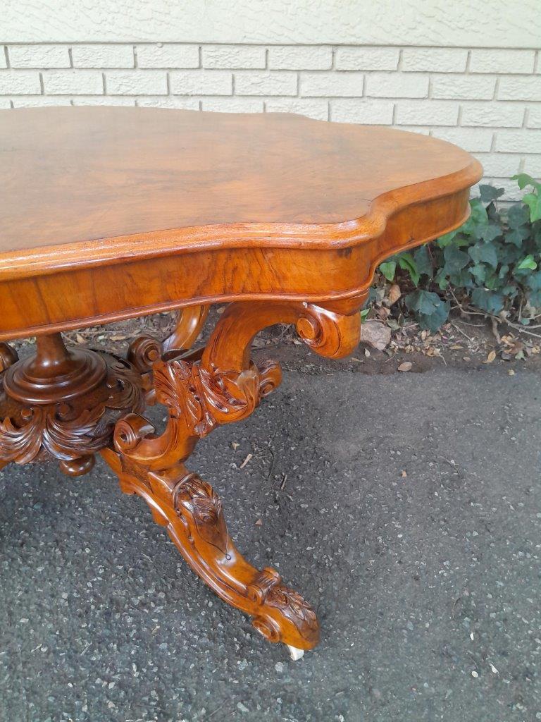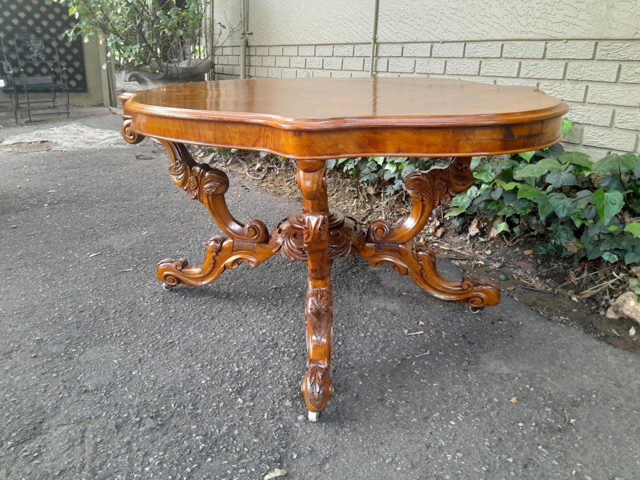 An Antique 19th Century Circa 18802 Victorian Ornately Carved Walnut And Burr Walnut Centre Table On Castors