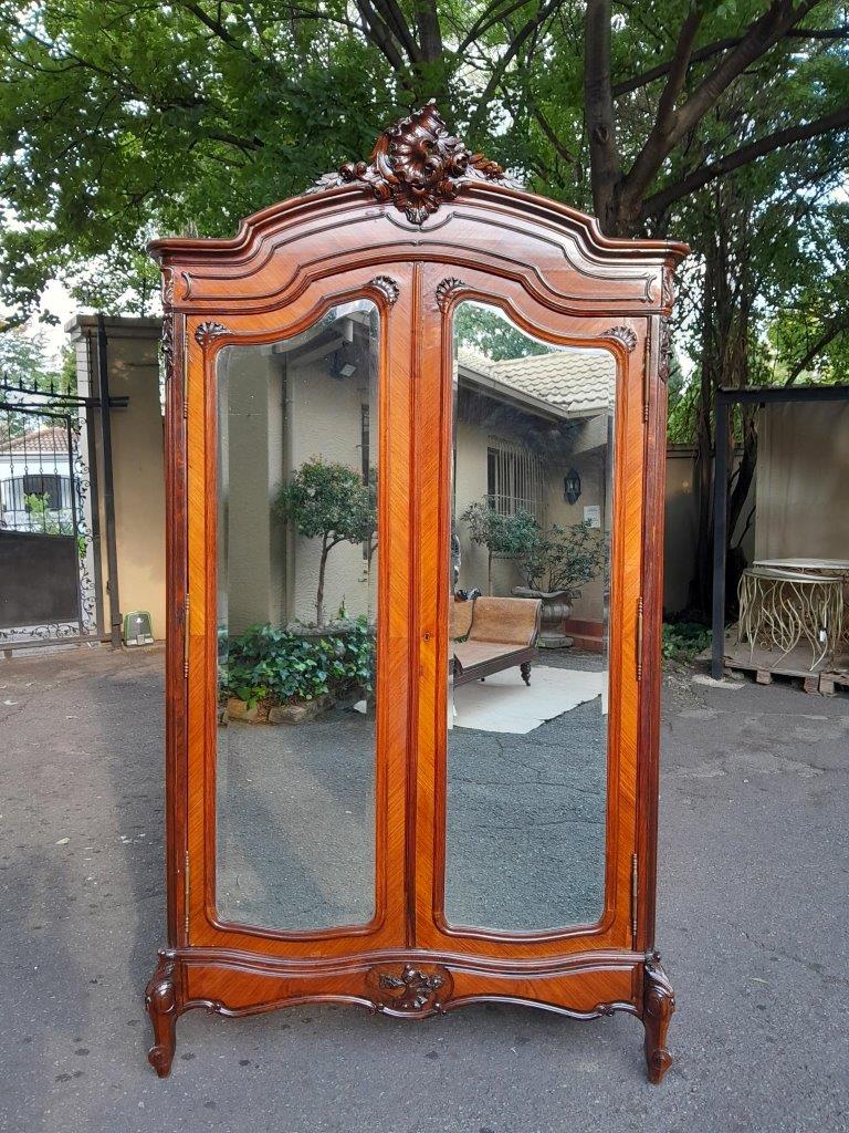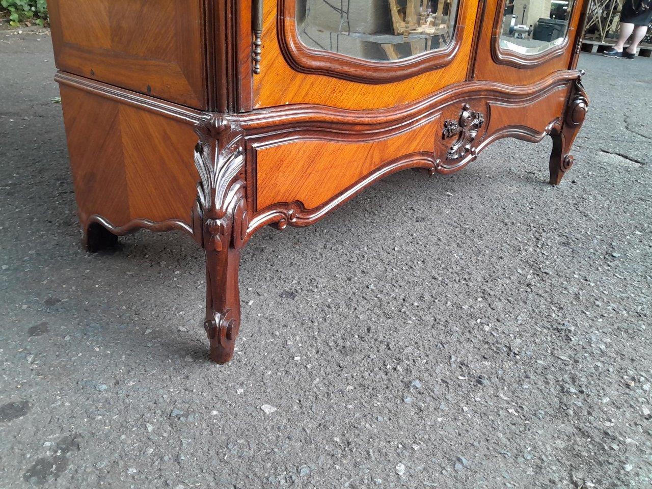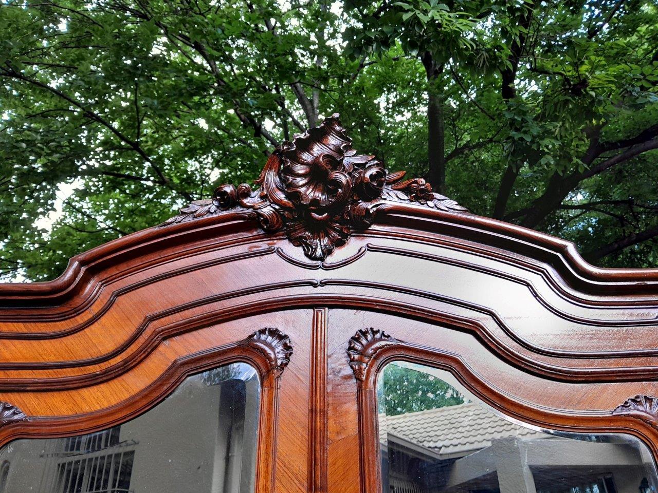 An Antique 19th Century French Carved Rosewood Armoire With Bevelled Mirrors