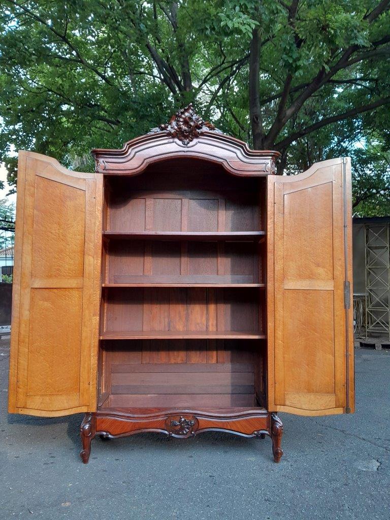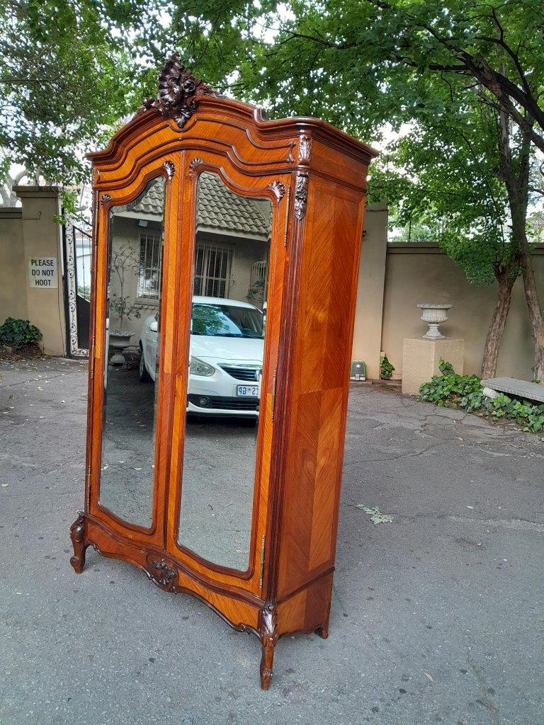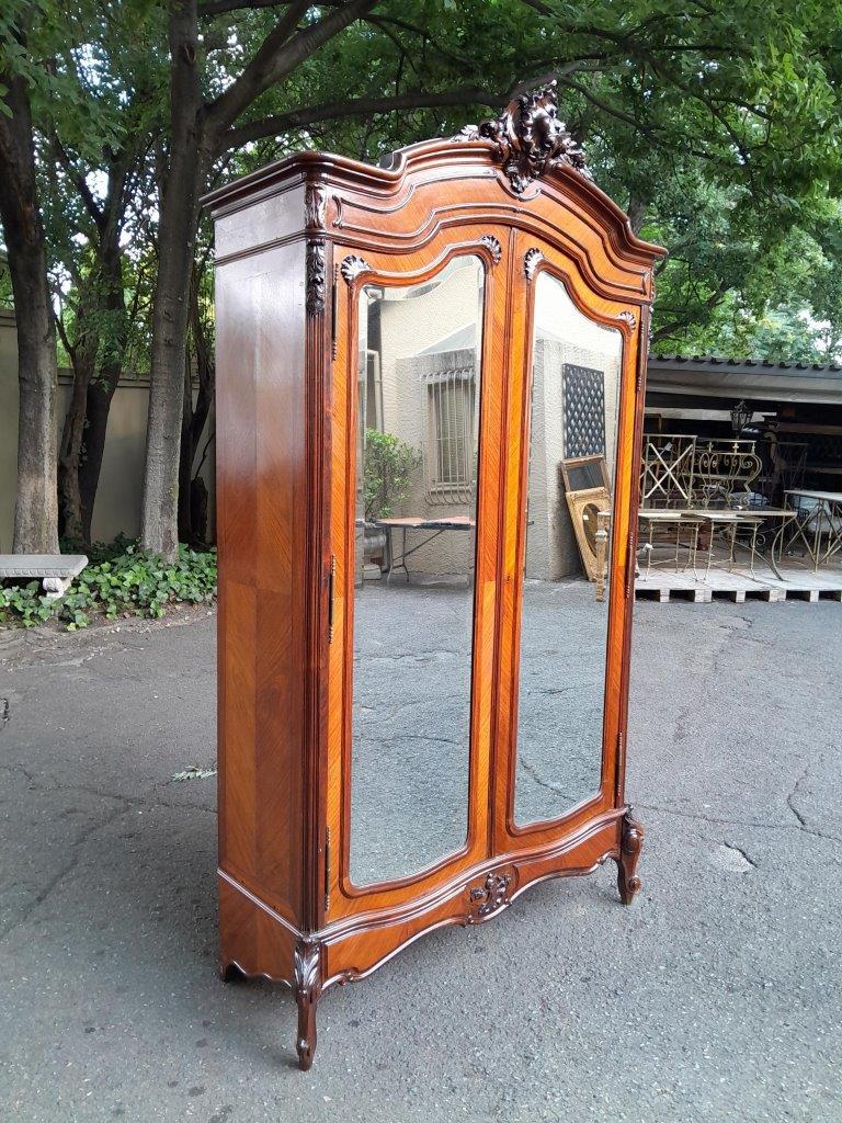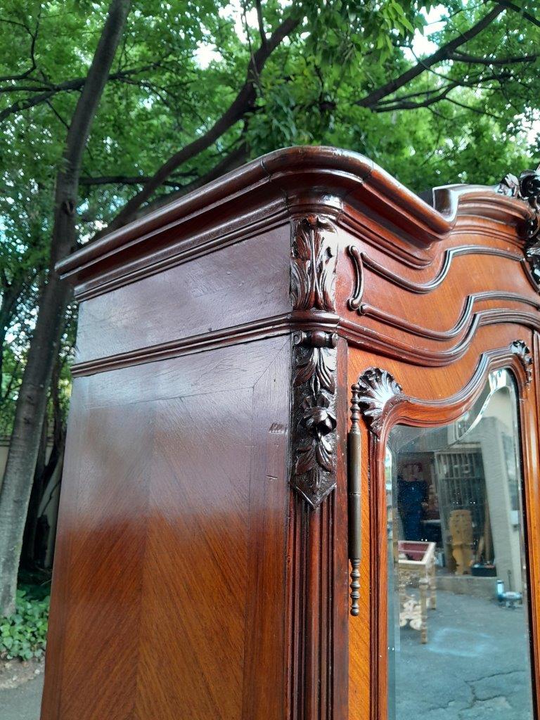 An Antique 19th Century French Carved Rosewood Armoire With Bevelled Mirrors