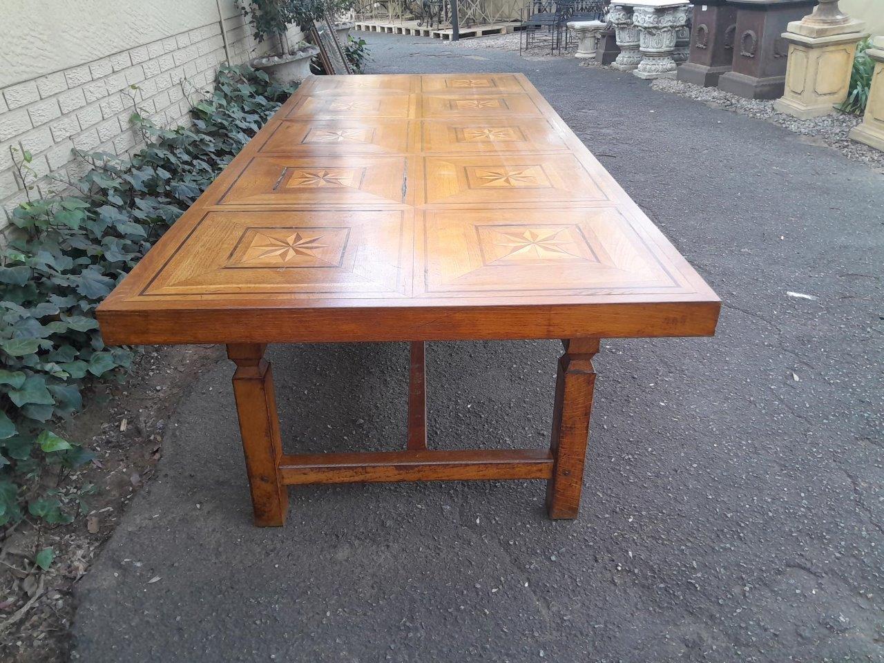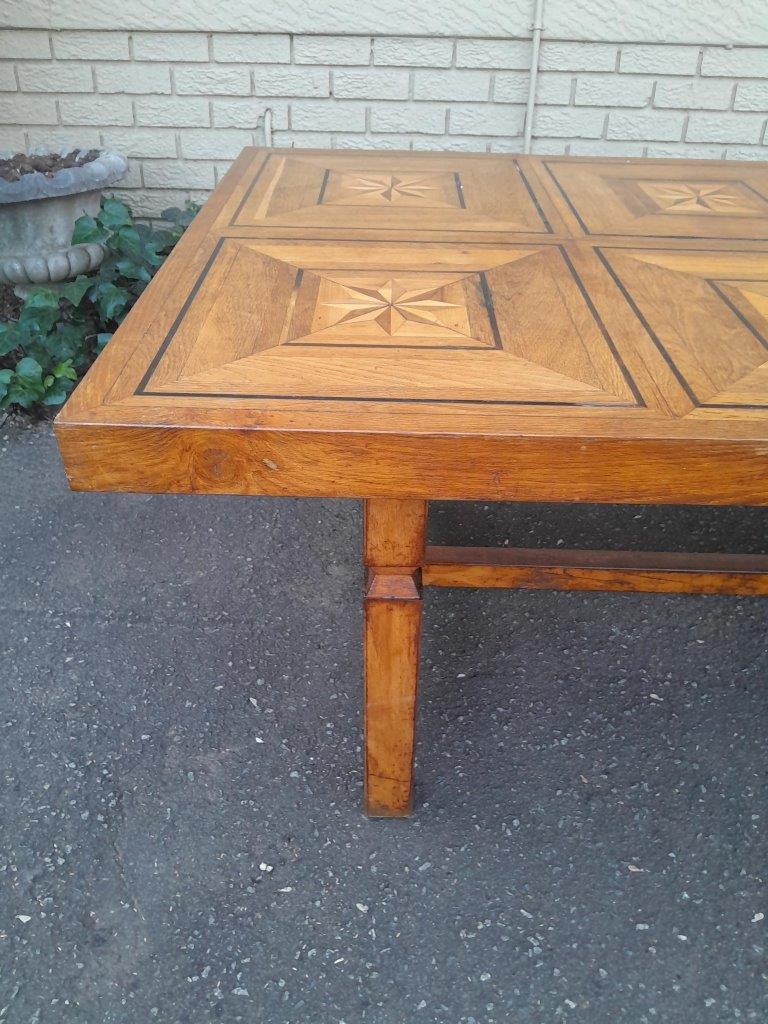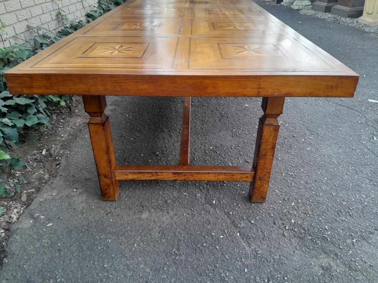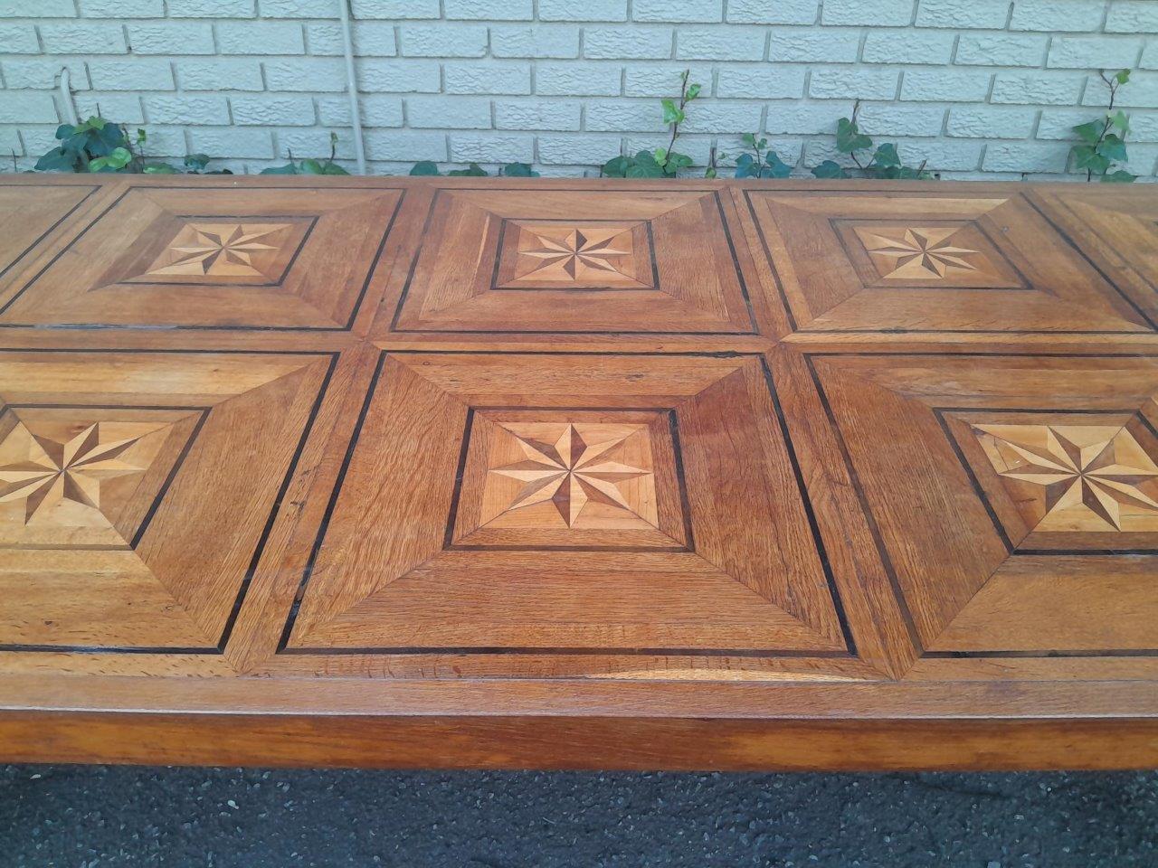 An Antique 19th Century French Oak And Walnut Table With Inlaid Parquetry Top