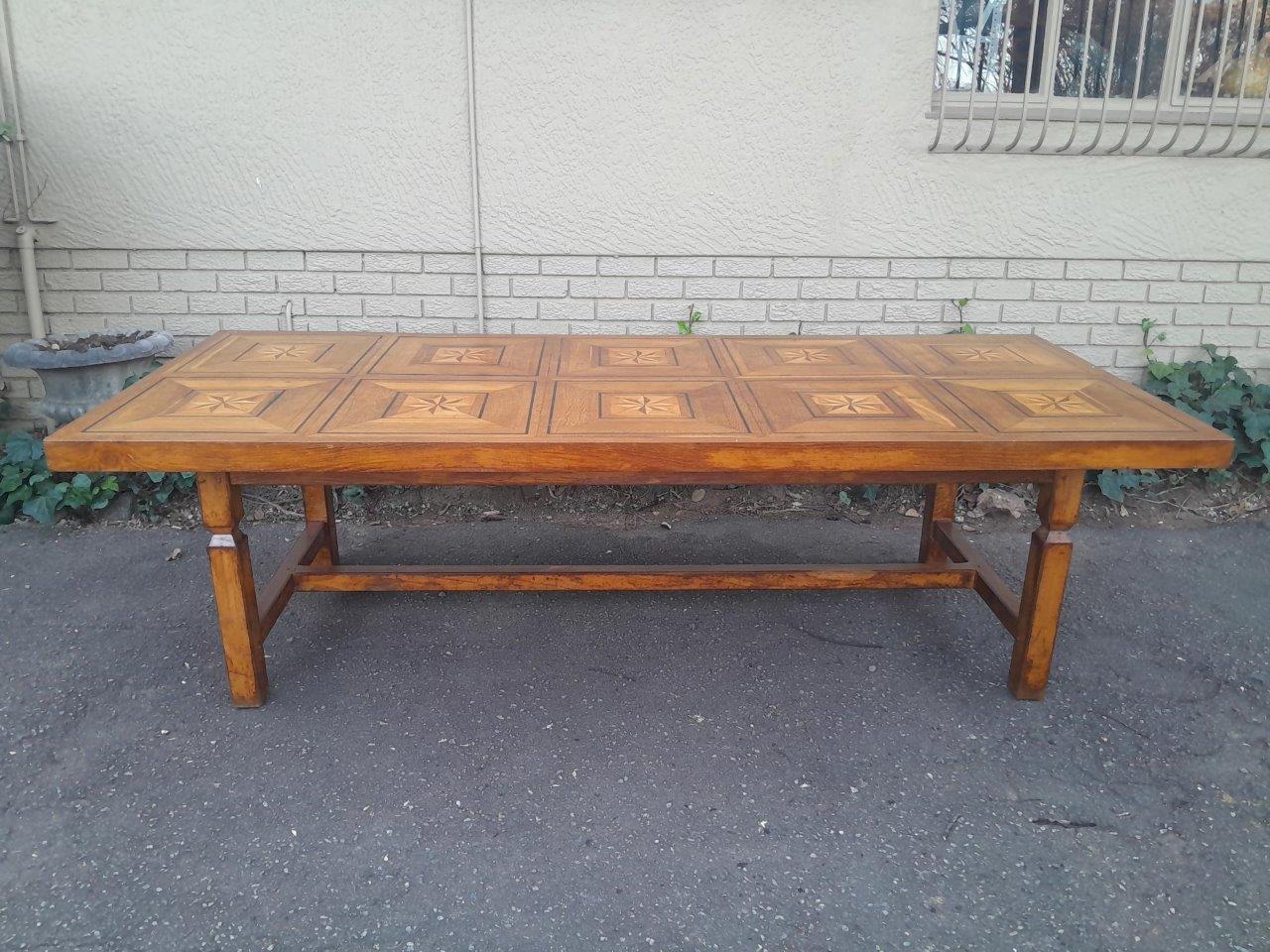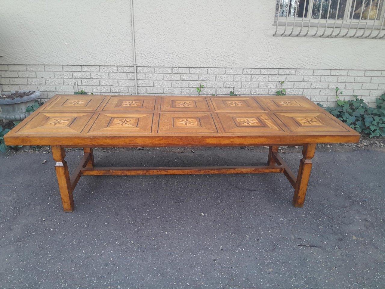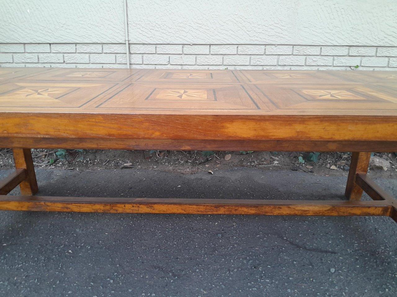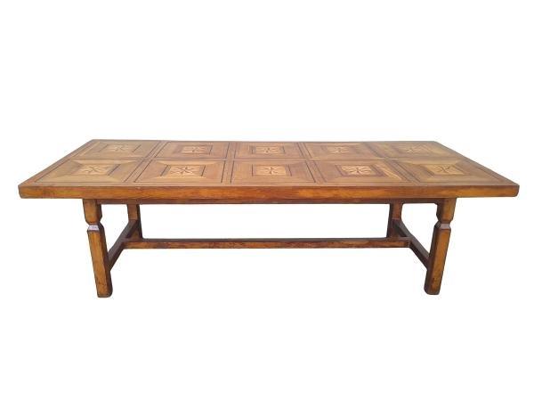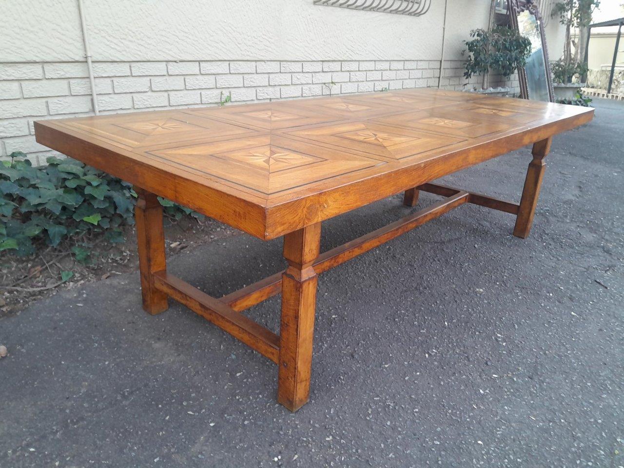 An Antique 19th Century French Oak And Walnut Table With Inlaid Parquetry Top