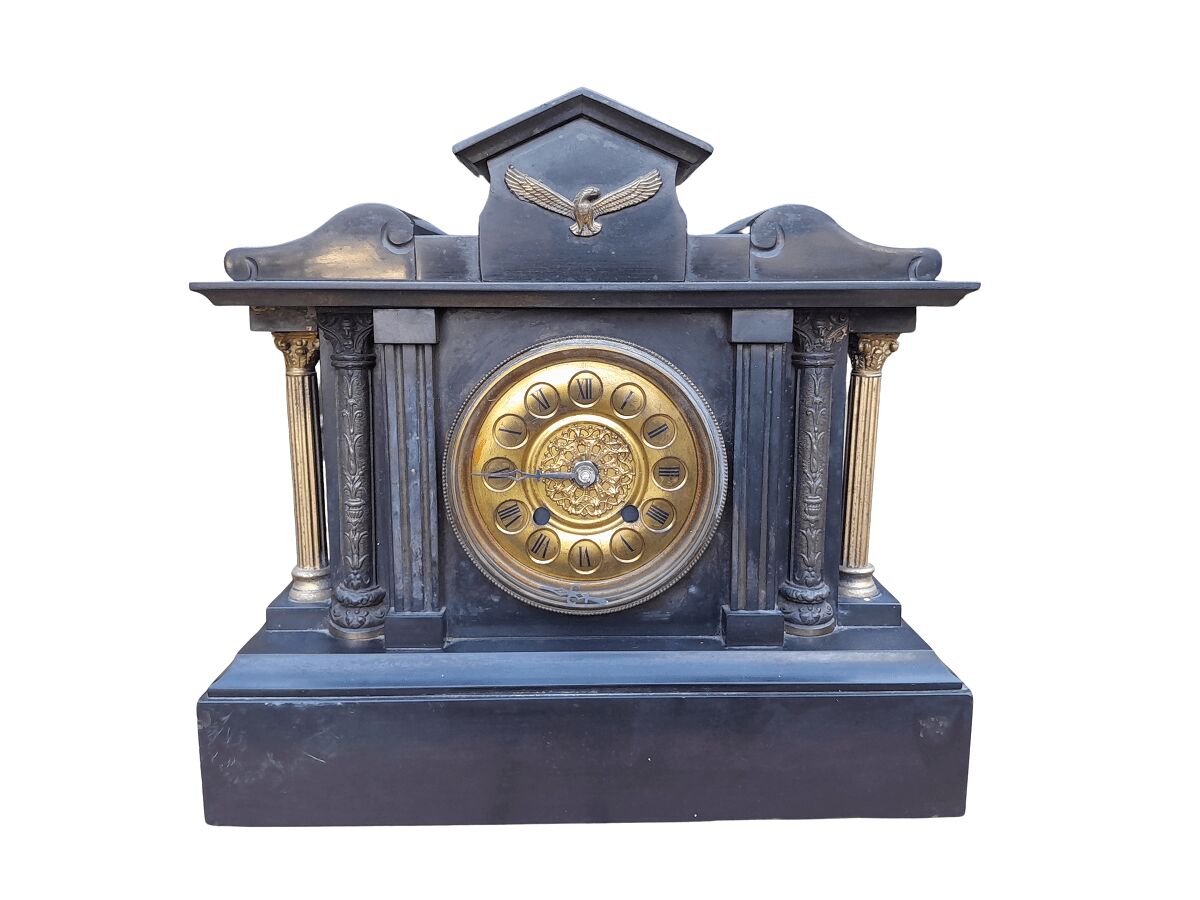 An Antique 19th Century French Style Black Slate Quartz Clock