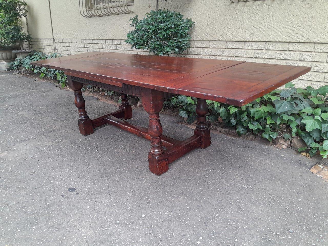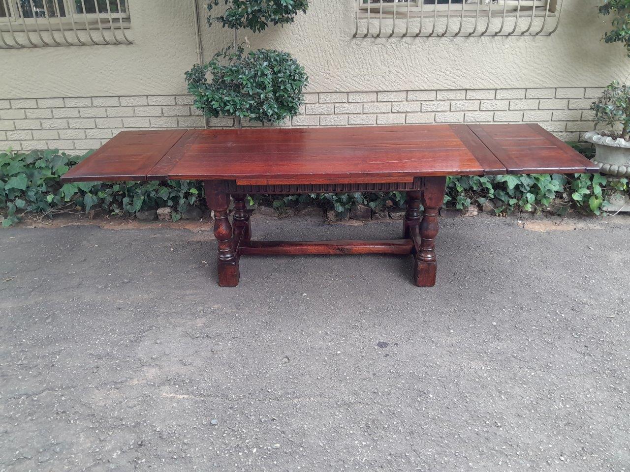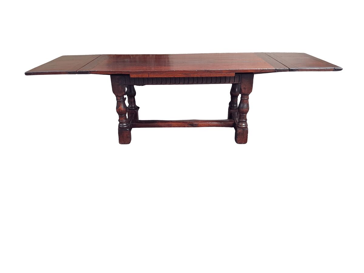 An Antique 19th Century Oak Refectory Table On Stretcher Base With Two Drawer Leaves (8-10 Seater)