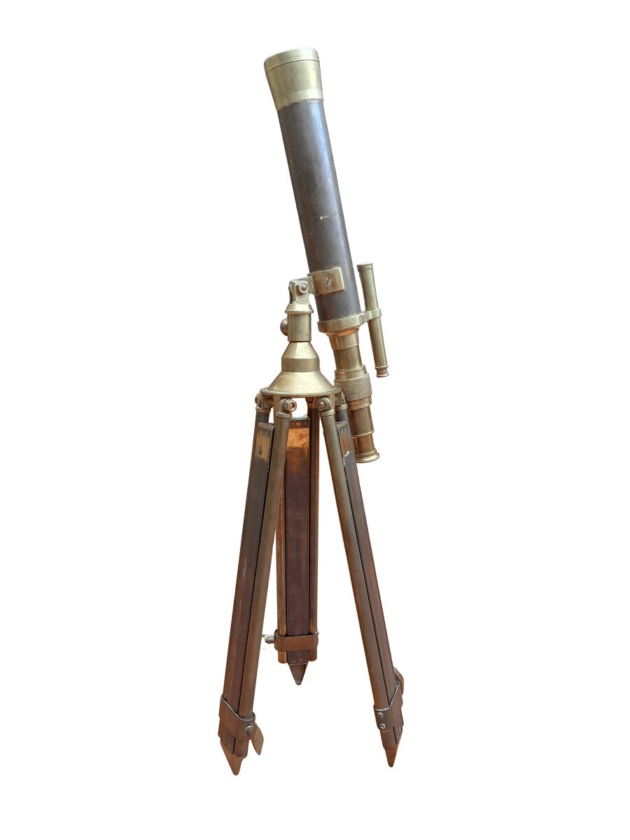 An Antique Brass Telescope On Tripod Stand (Adjustable And Lenses Working)