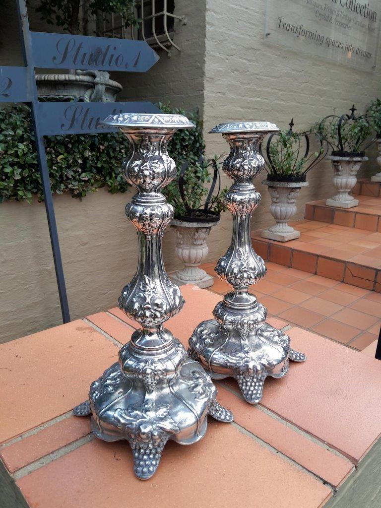 An Antique Circa 1900’s Pair of Silver Plate Candlesticks / Candle Holders ND
