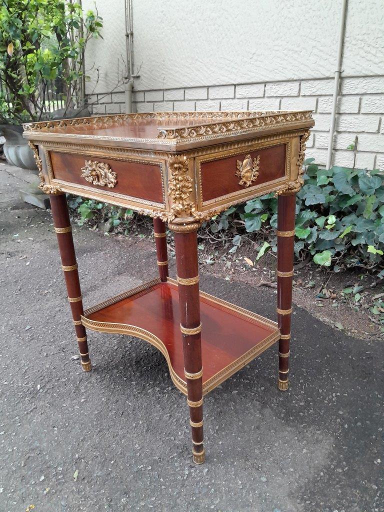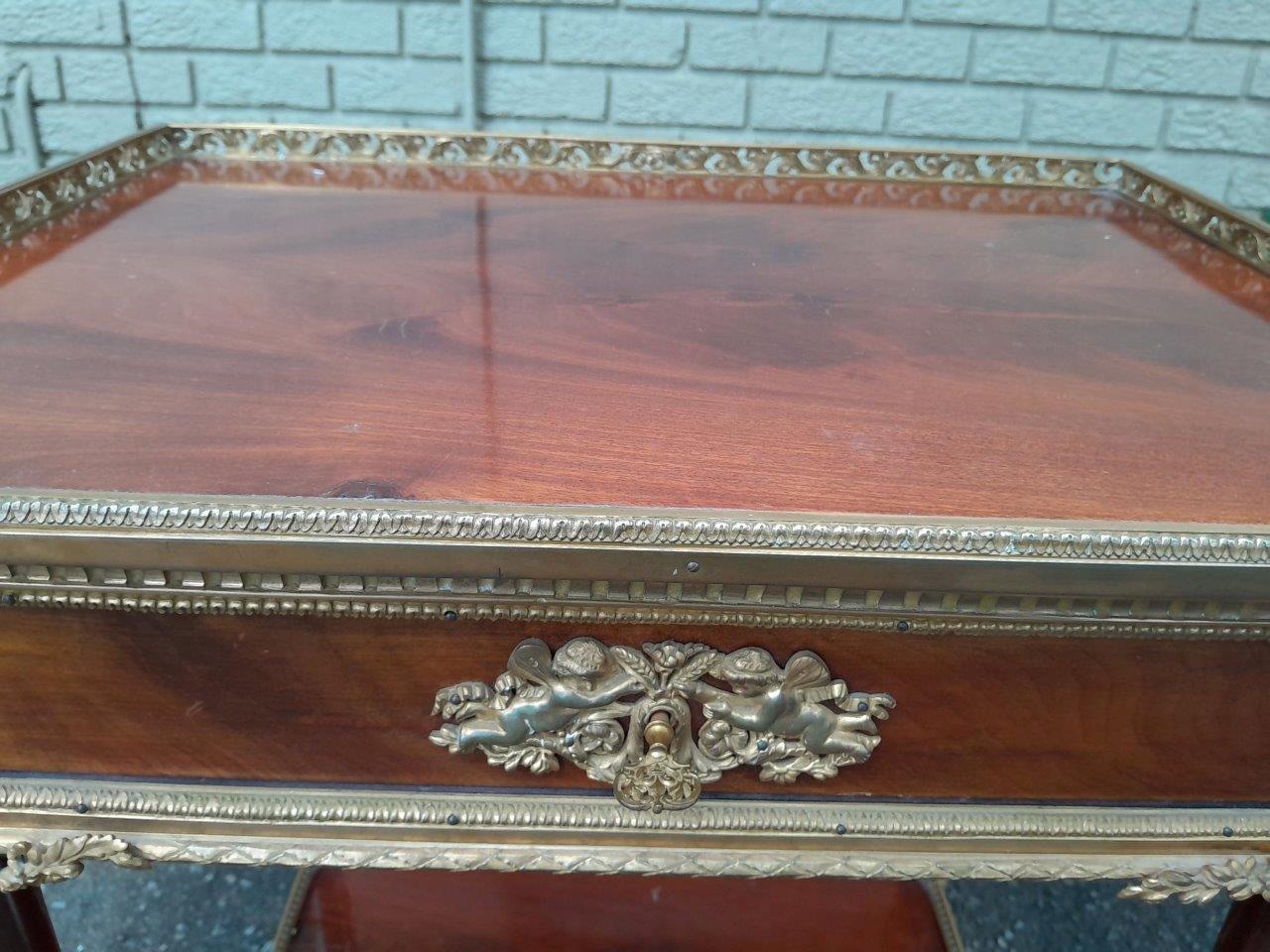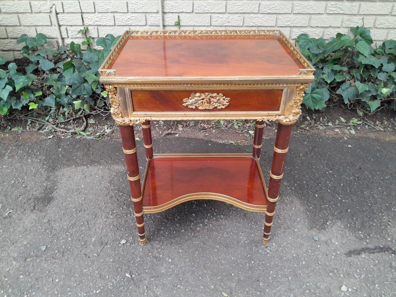 An Antique Circa 1900 French Louis XVI Style Mahogany Table With Gallery With Ormolu And Drawer Plus Lock And Key