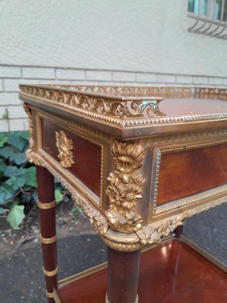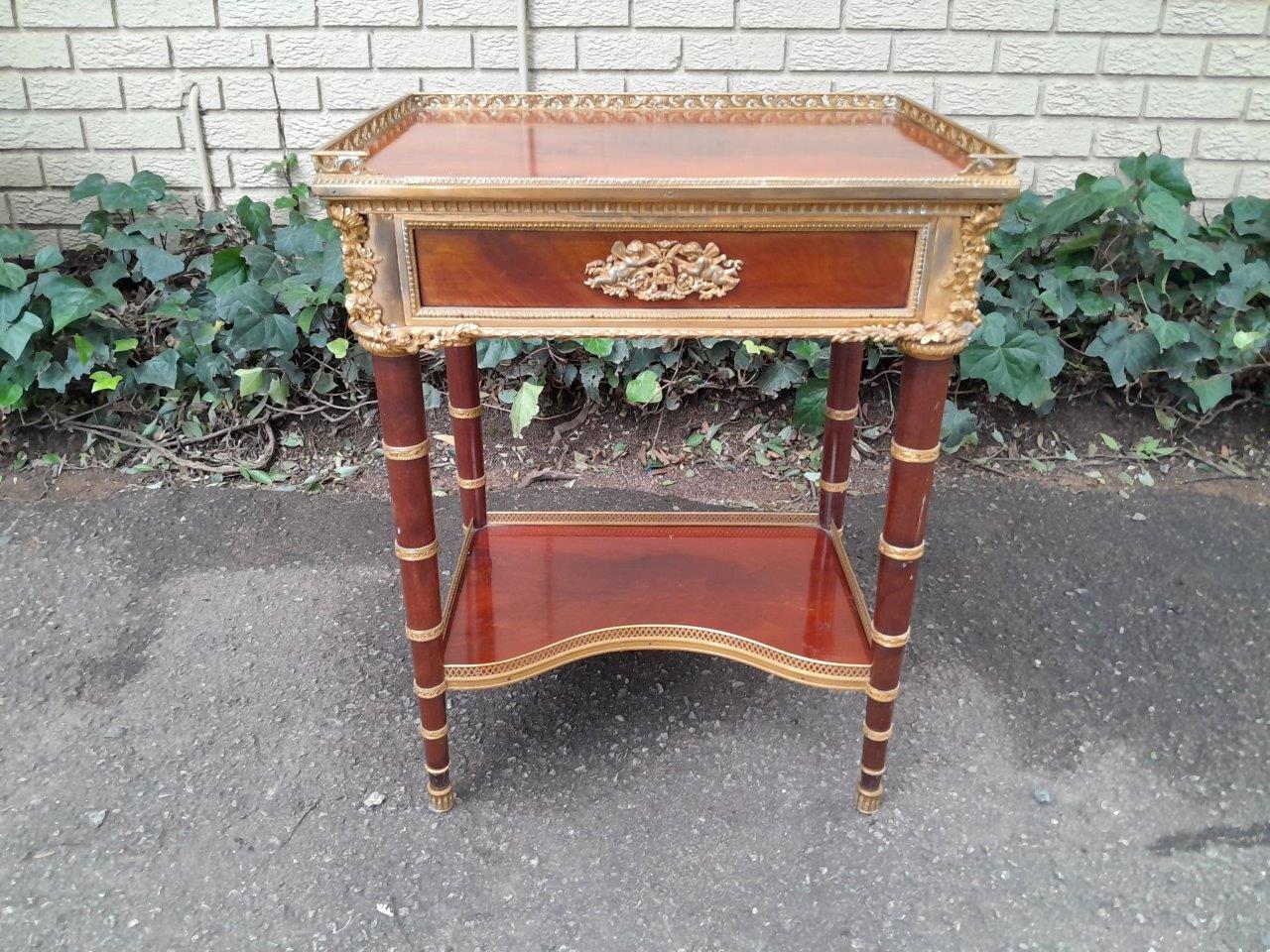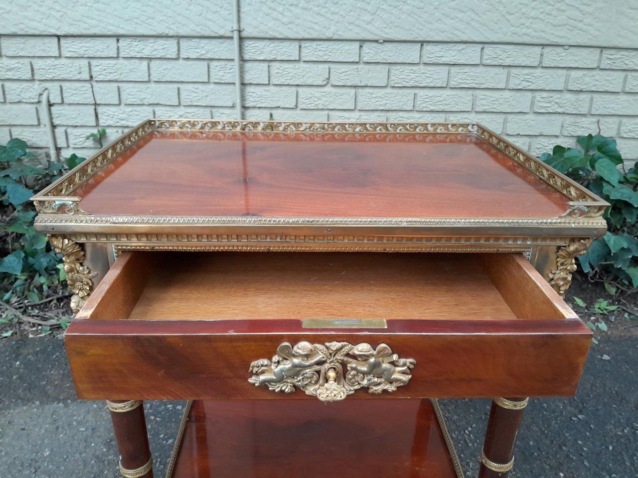 An Antique Circa 1900 French Louis XVI Style Mahogany Table With Gallery With Ormolu And Drawer Plus Lock And Key